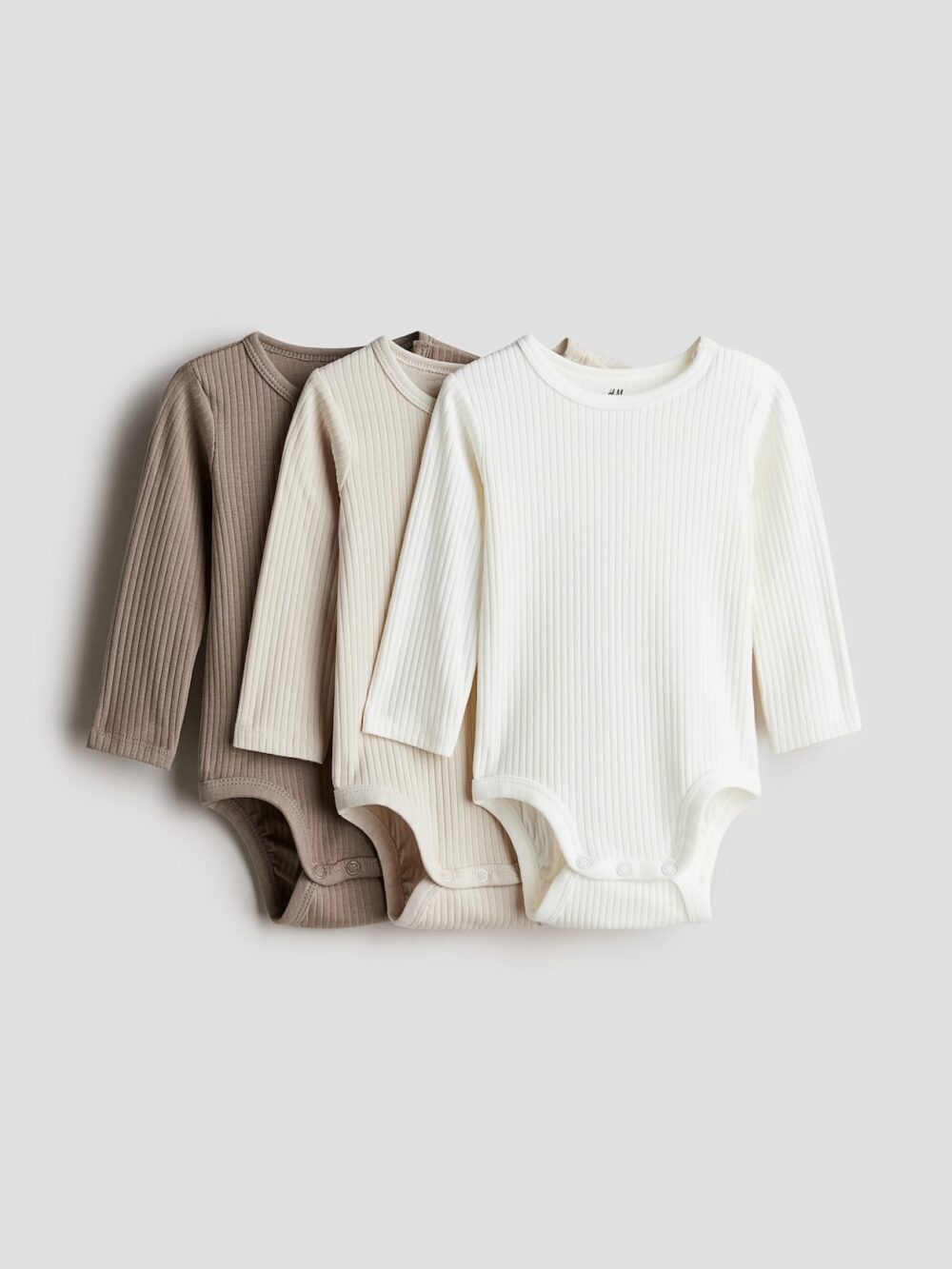 Set 3 bộ bodysuit H&M gân tone neutral (size: 12/18m) tặng kèm quần short Kaki Uniqlo