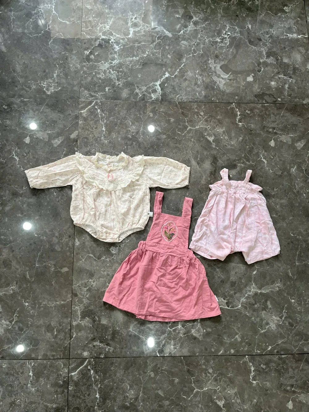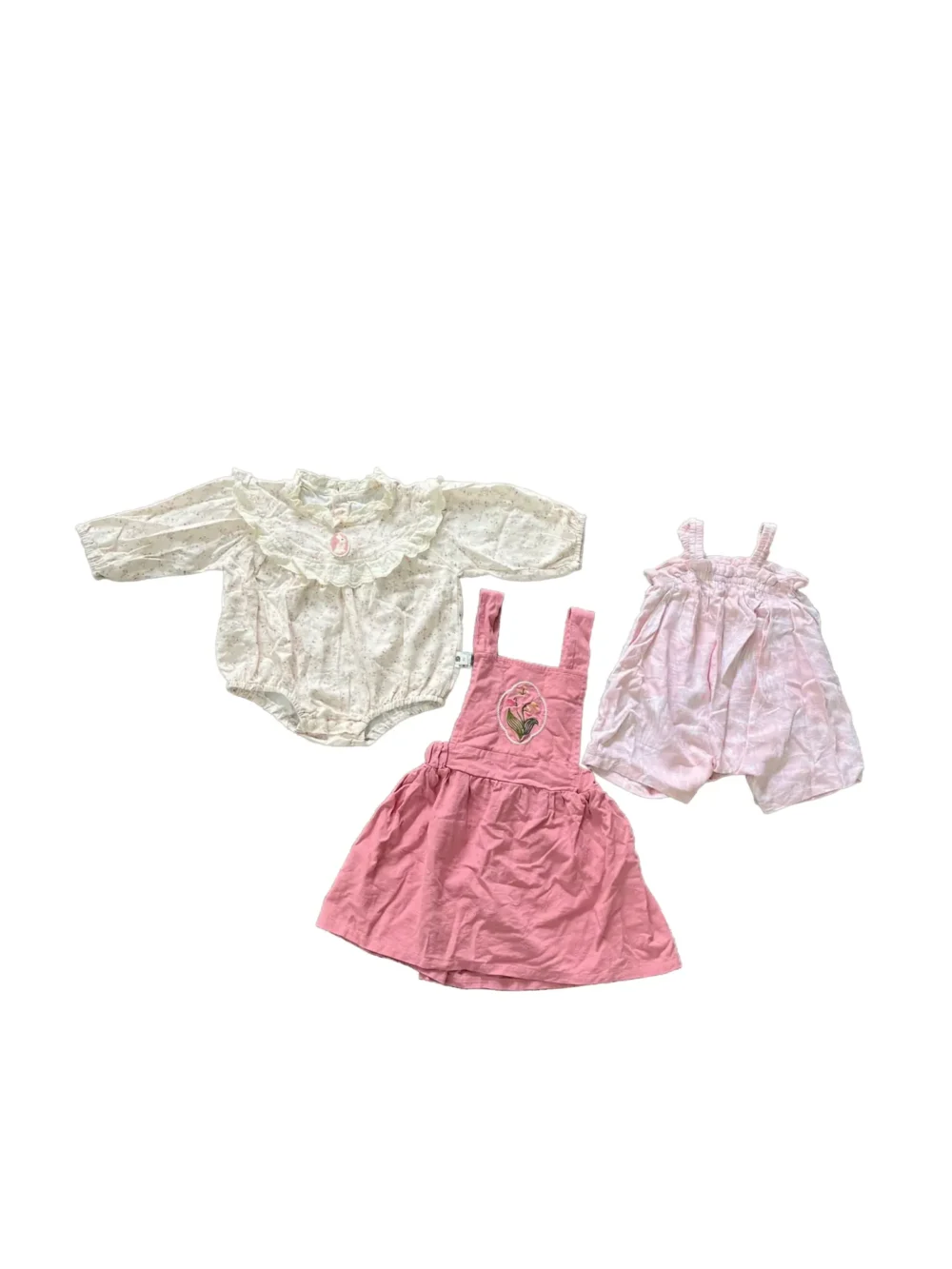 Set 3 món đồ bé gái vintage màu hồng mix brand (size 66)