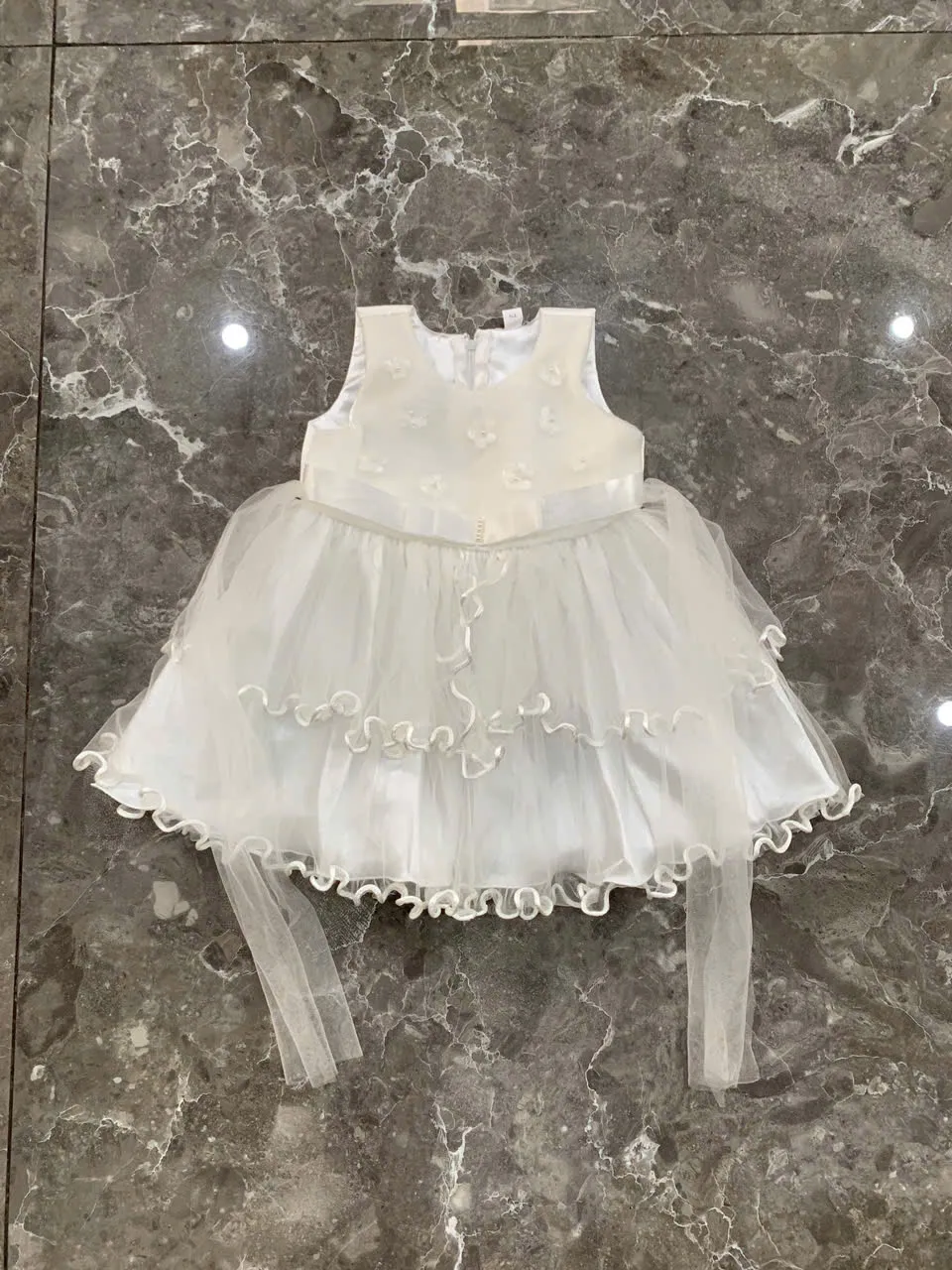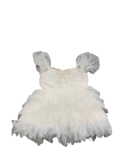 Đầm công chúa xoè đính hoa màu trắng bé gái (1 đến 2 tuổi)