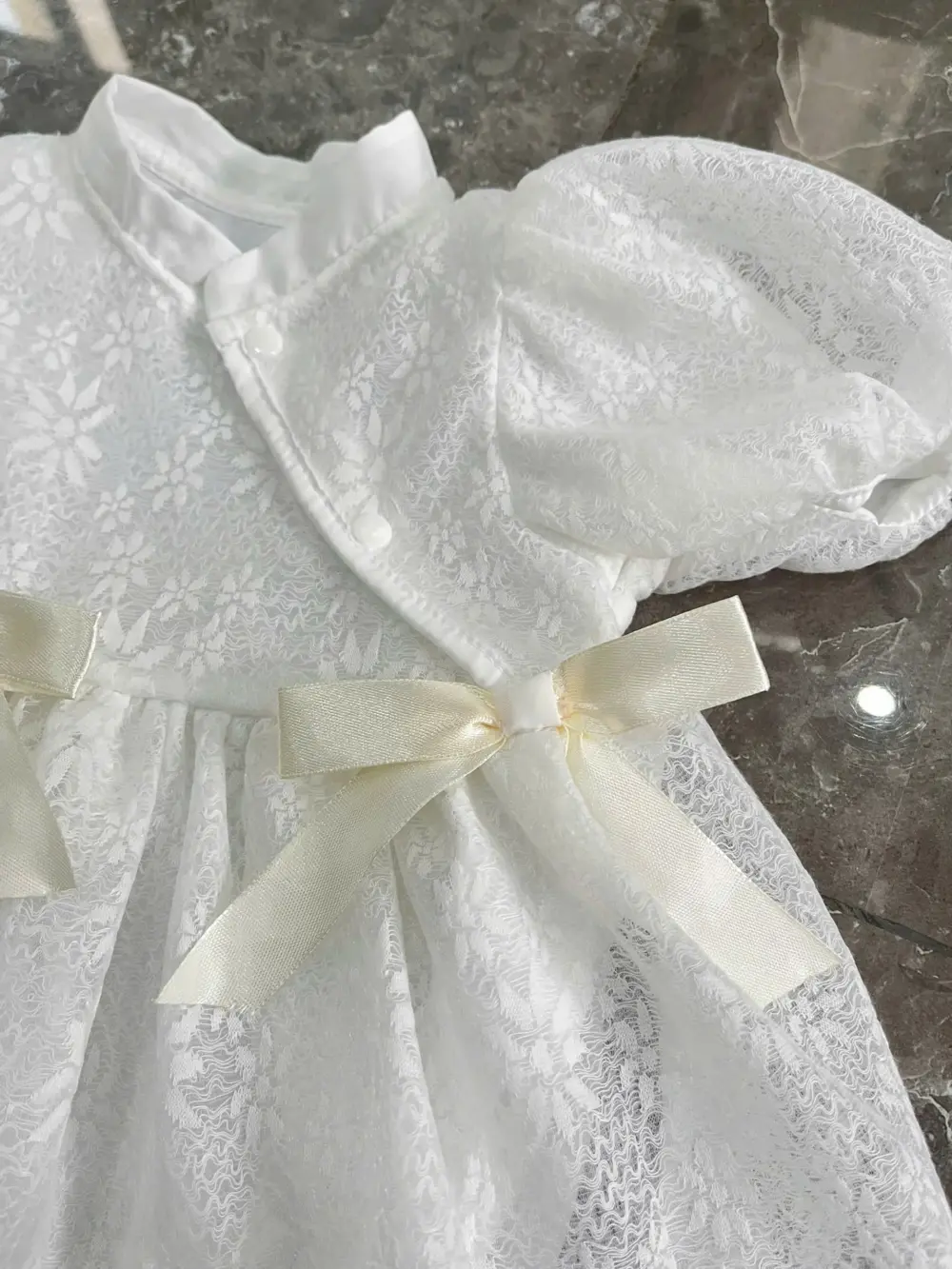 Đầm ren xoè phối lưới bodysuit đính nơ màu trắng (3 đến 6 tháng) No brand