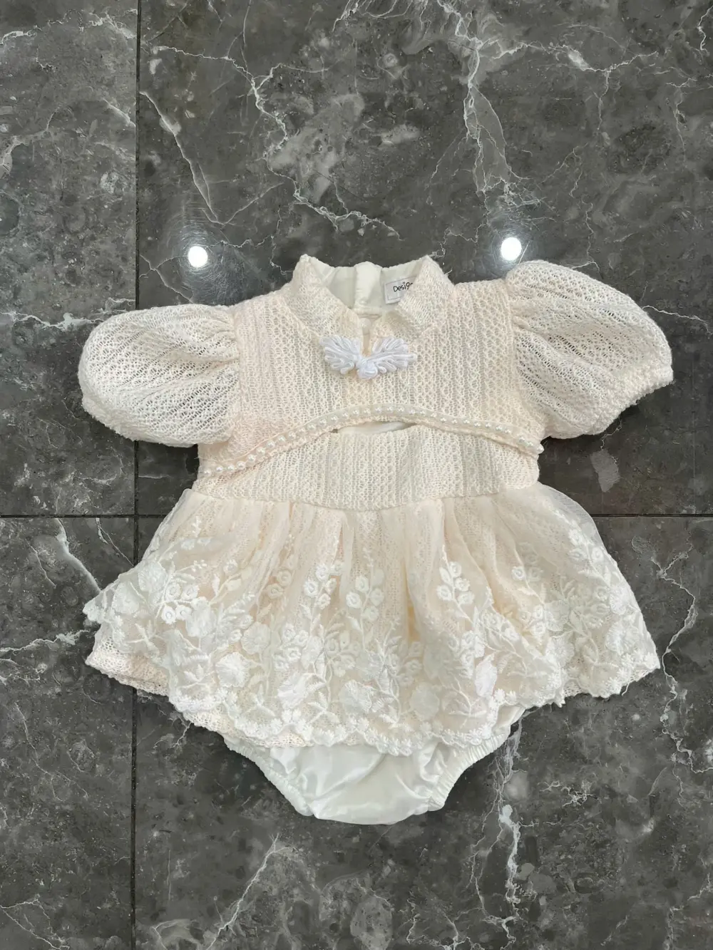 Đầm công chúa bodysuit ren phối lưới màu kem (0 đến 3 tháng) no brand