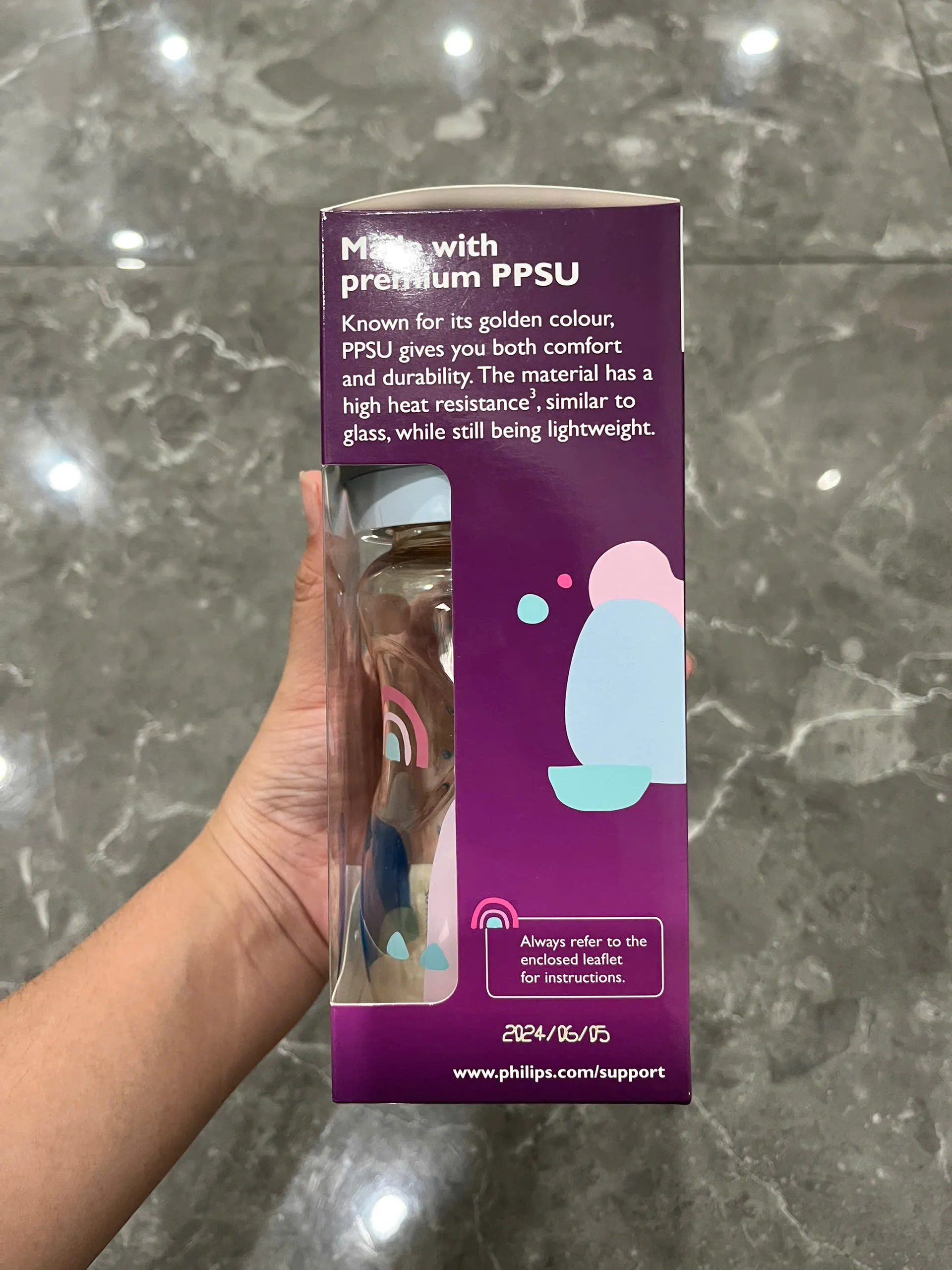 Bình Sữa Nhựa Họa Tiết Phillip Avent PPSU Có Quai Cầm 330ml ( no box) Phillip Avent