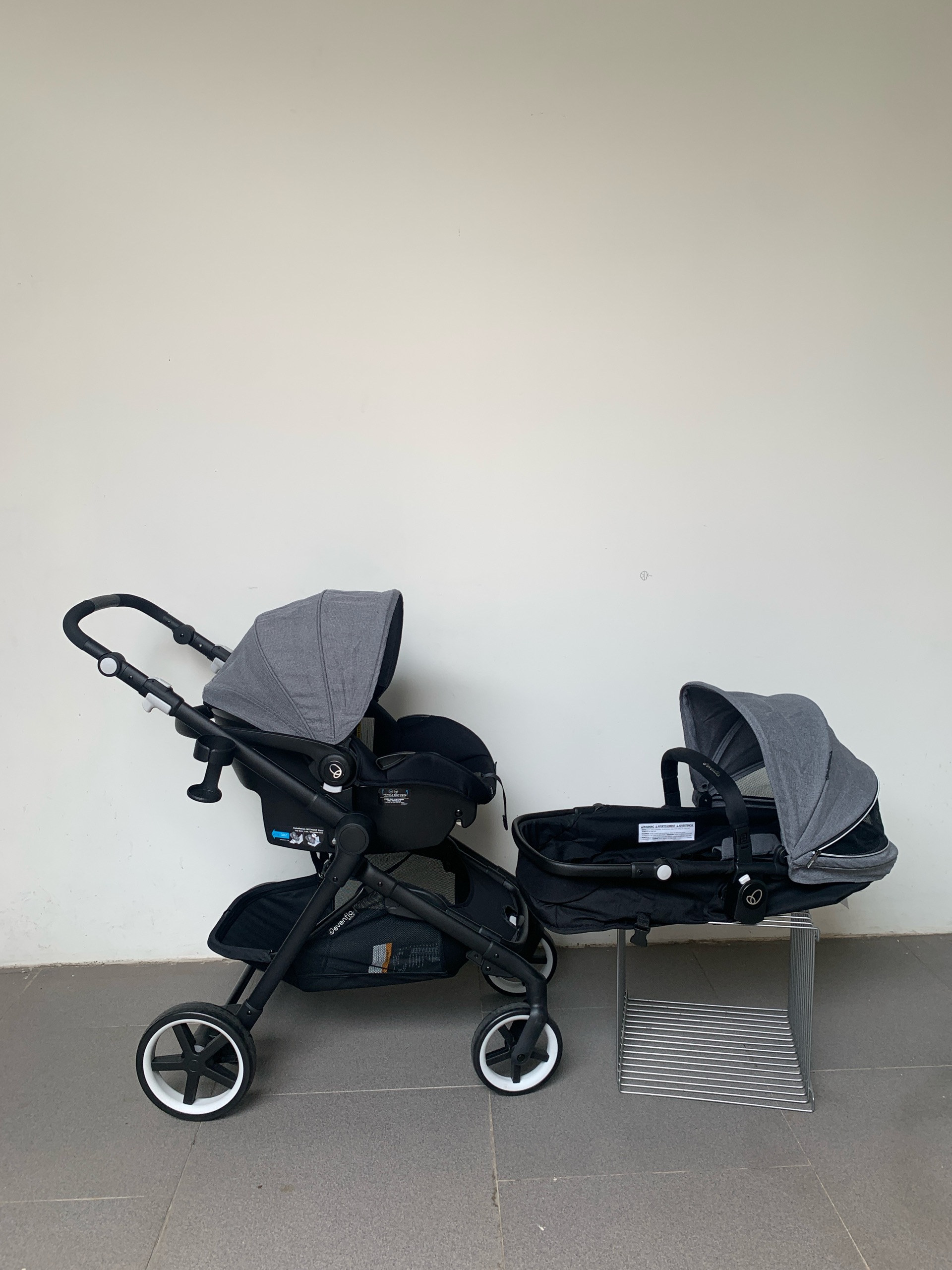 Lưu ý: khung xe này có thể tích hợp thêm phụ kiện làm được cho xe đẩy đôi (sinh đôi), phần carseat có cảm biến SensorSafe cảnh báo trong các trường hợp khẩn cấp. Phần nôi năm cho bé tới 6m+, bộ này chỉ thiếu phần searpack (bé ngồi) cần mua thêm là đủ bộ.