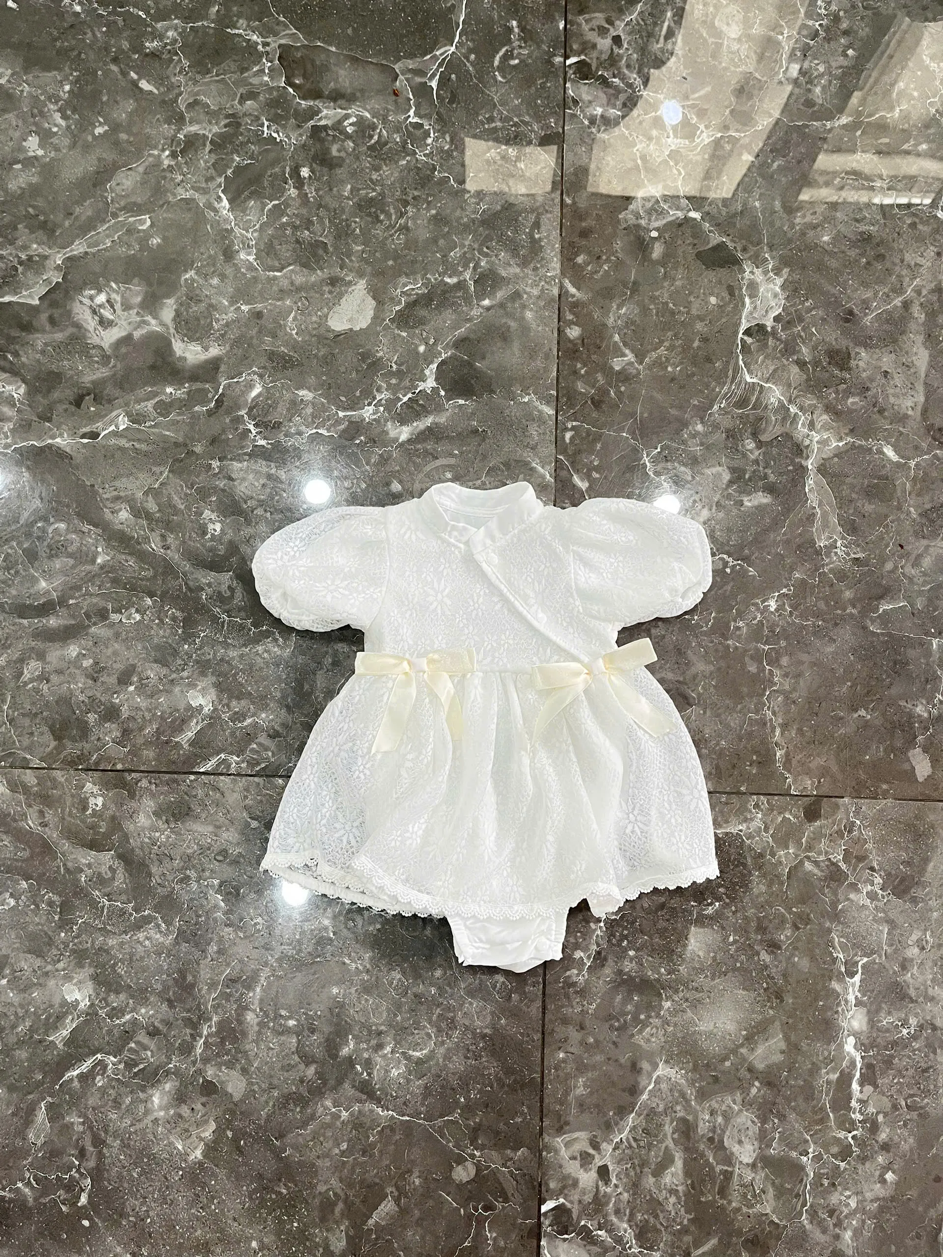 Đầm ren xoè phối lưới bodysuit đính nơ màu trắng (3 đến 6 tháng) No brand