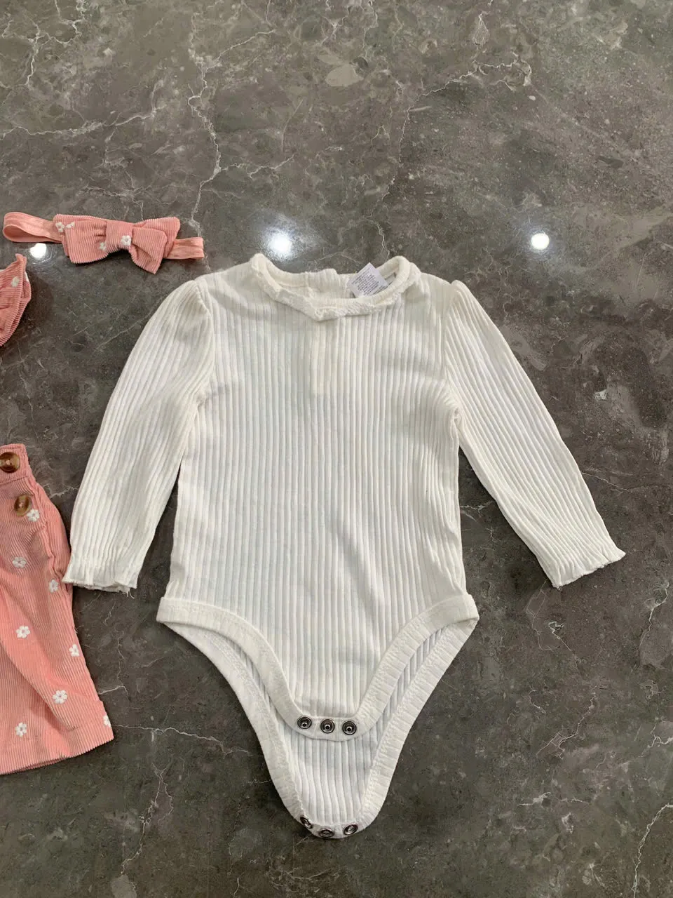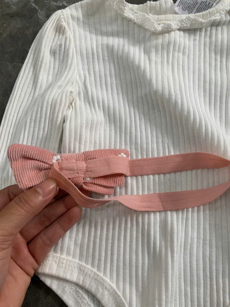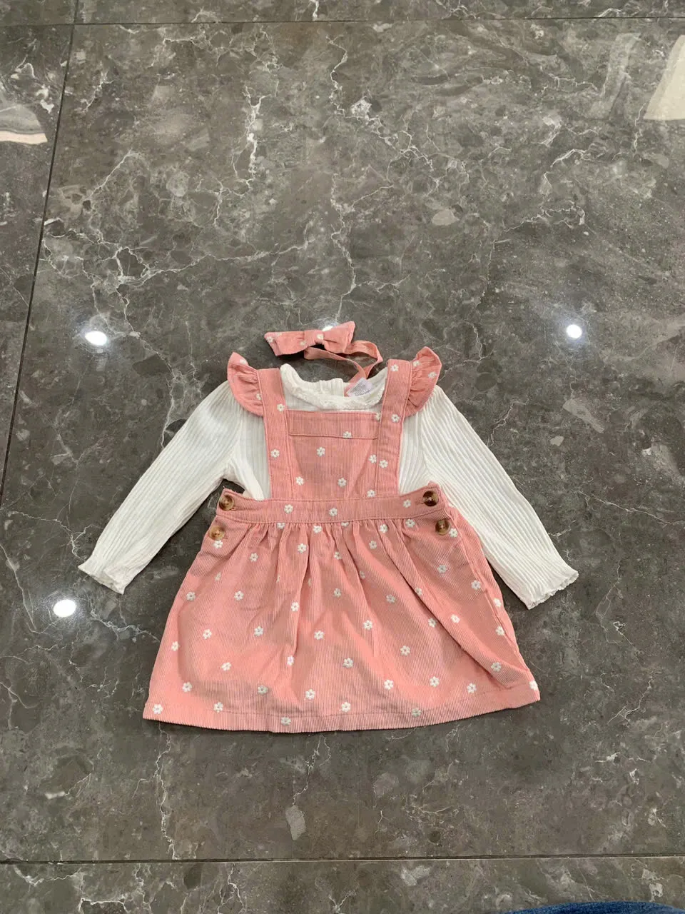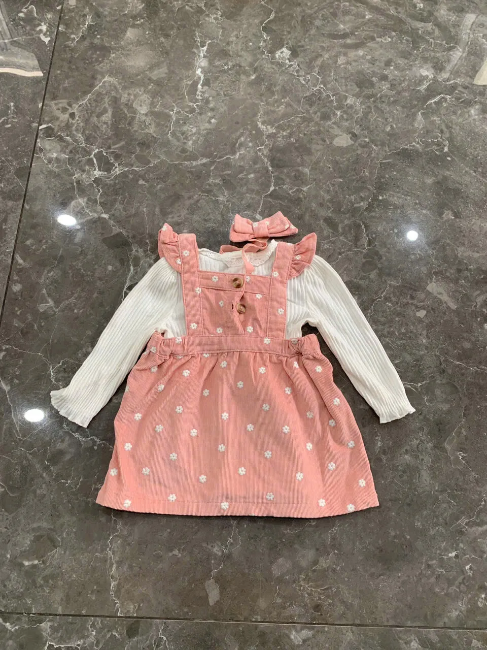 Đầm yếm dài tay bé gái 2 món kèm nơ Nicole Miller (size 6-9m)