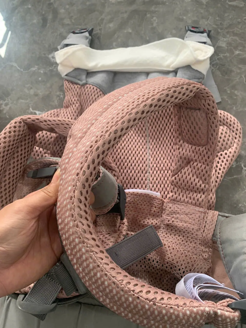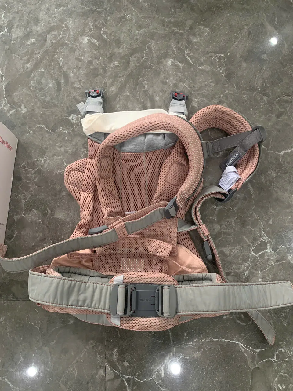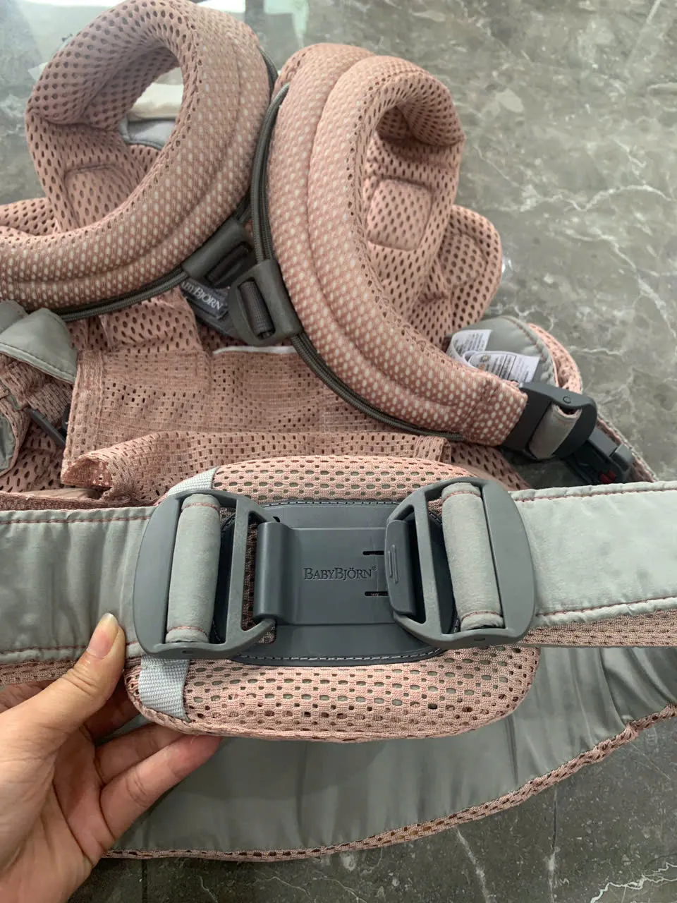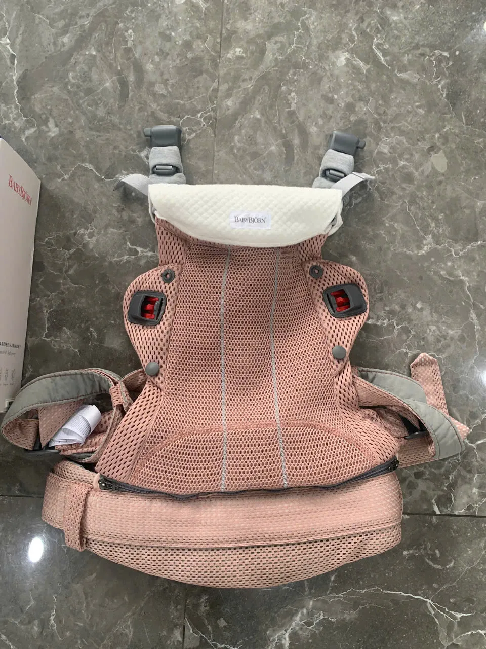 Địu BabyBjorn Harmony màu hồng (còn box và tặng kèm yếm địu của hãng)