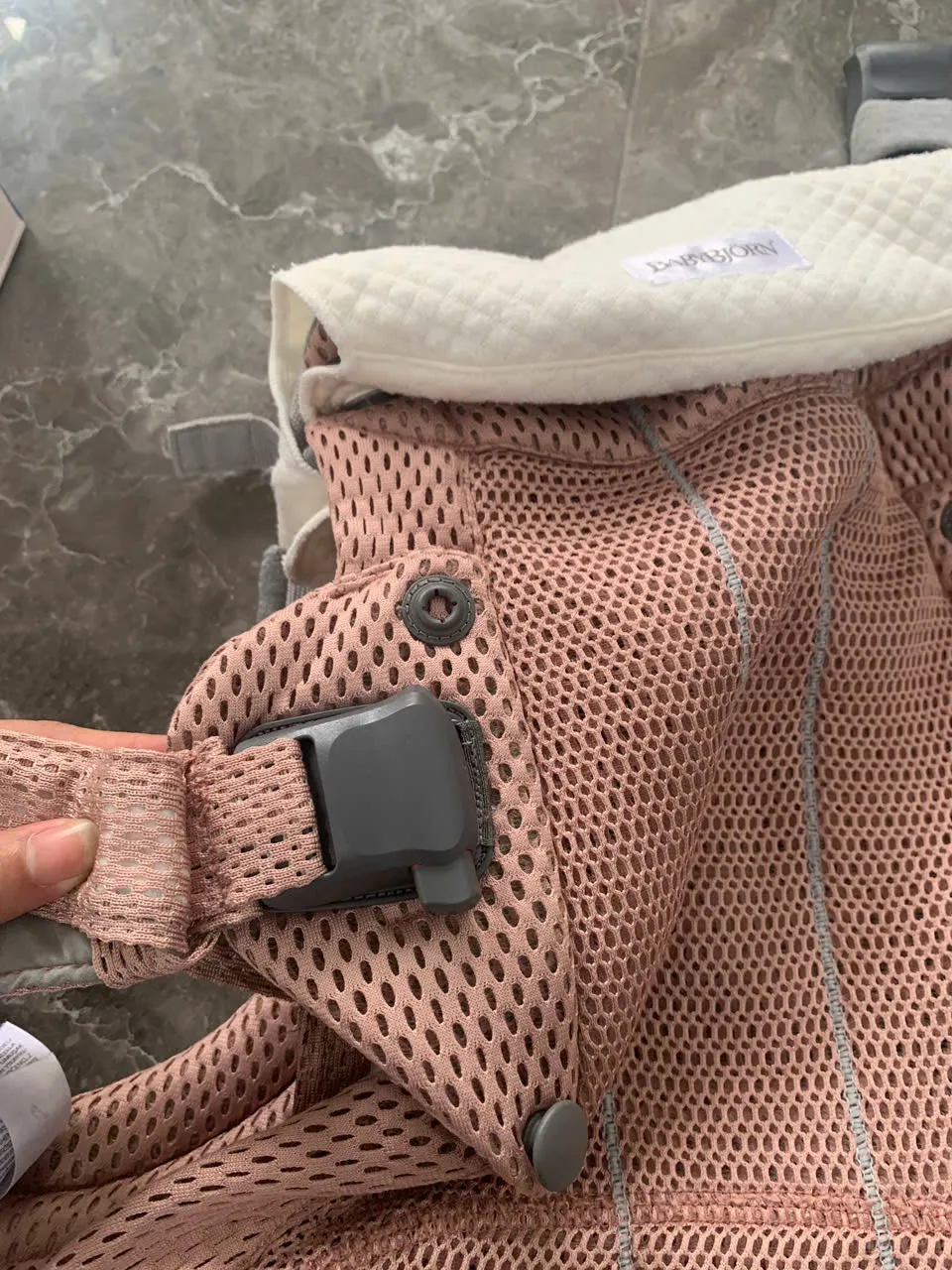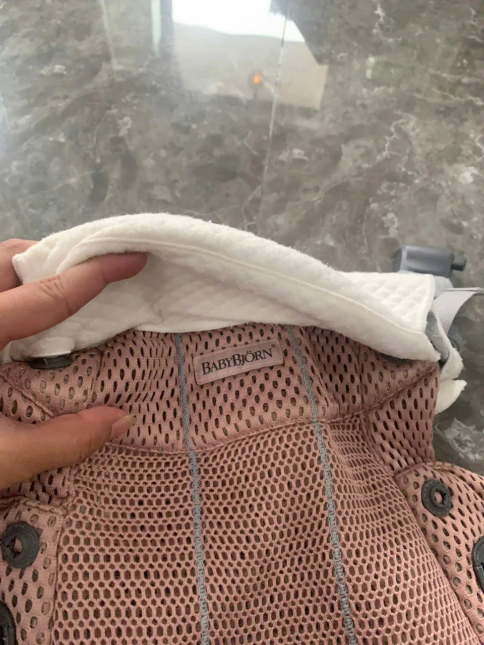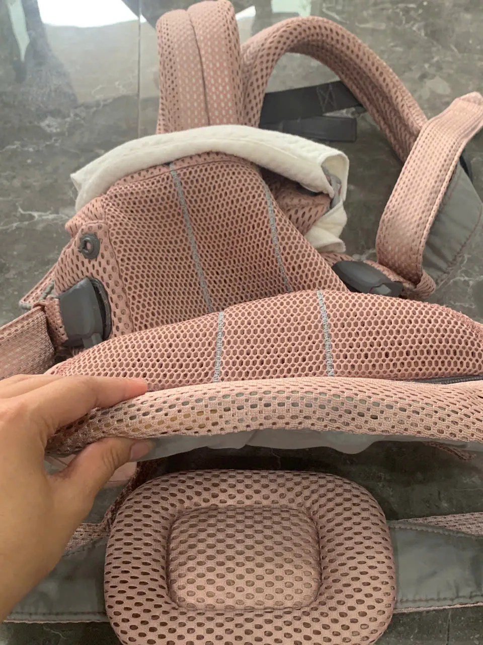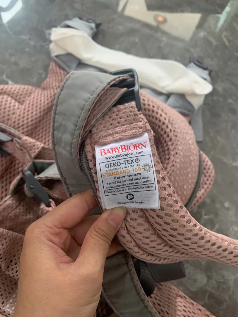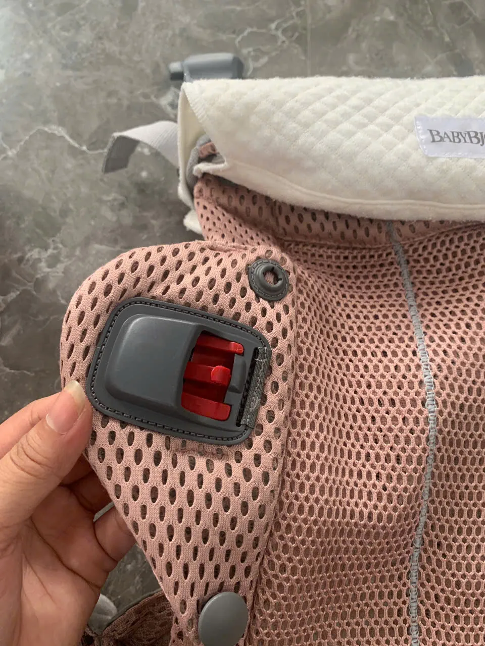 Địu BabyBjorn Harmony màu hồng (còn box và tặng kèm yếm địu của hãng)