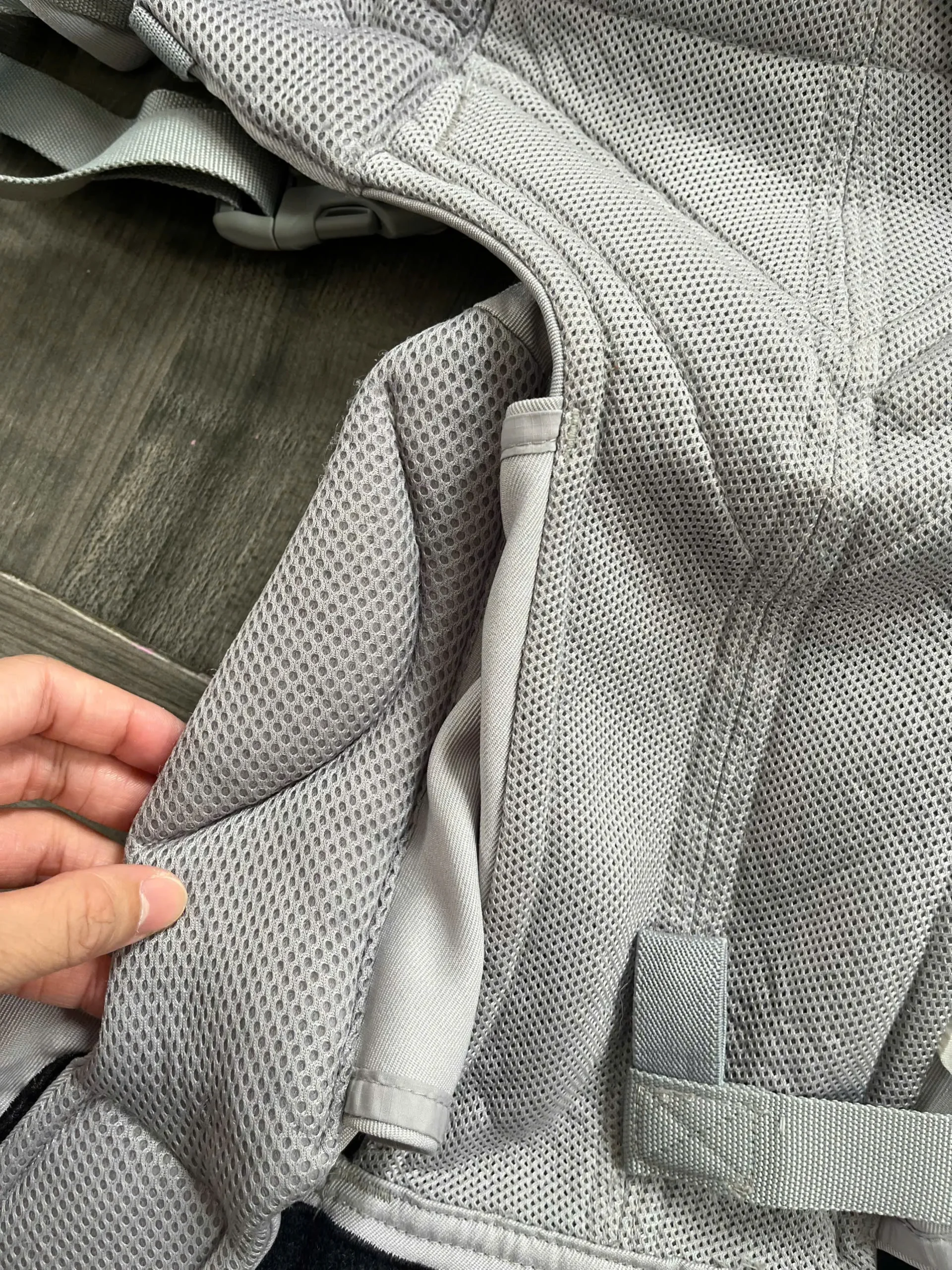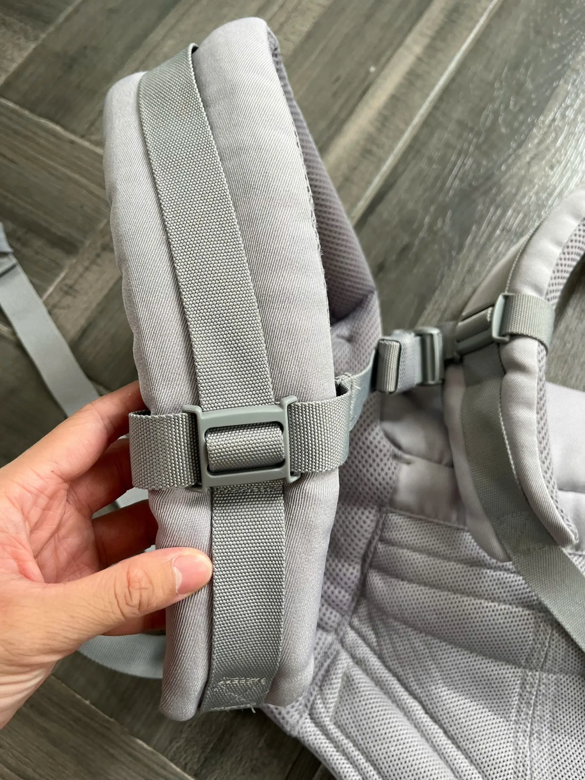 ✅ Chất liệu vải lưới thoáng khí, mềm mại, an toàn cho làn da nhạy cảm của bé; đệm vai và đai lưng êm ái, giúp giảm áp lực khi địu lâu