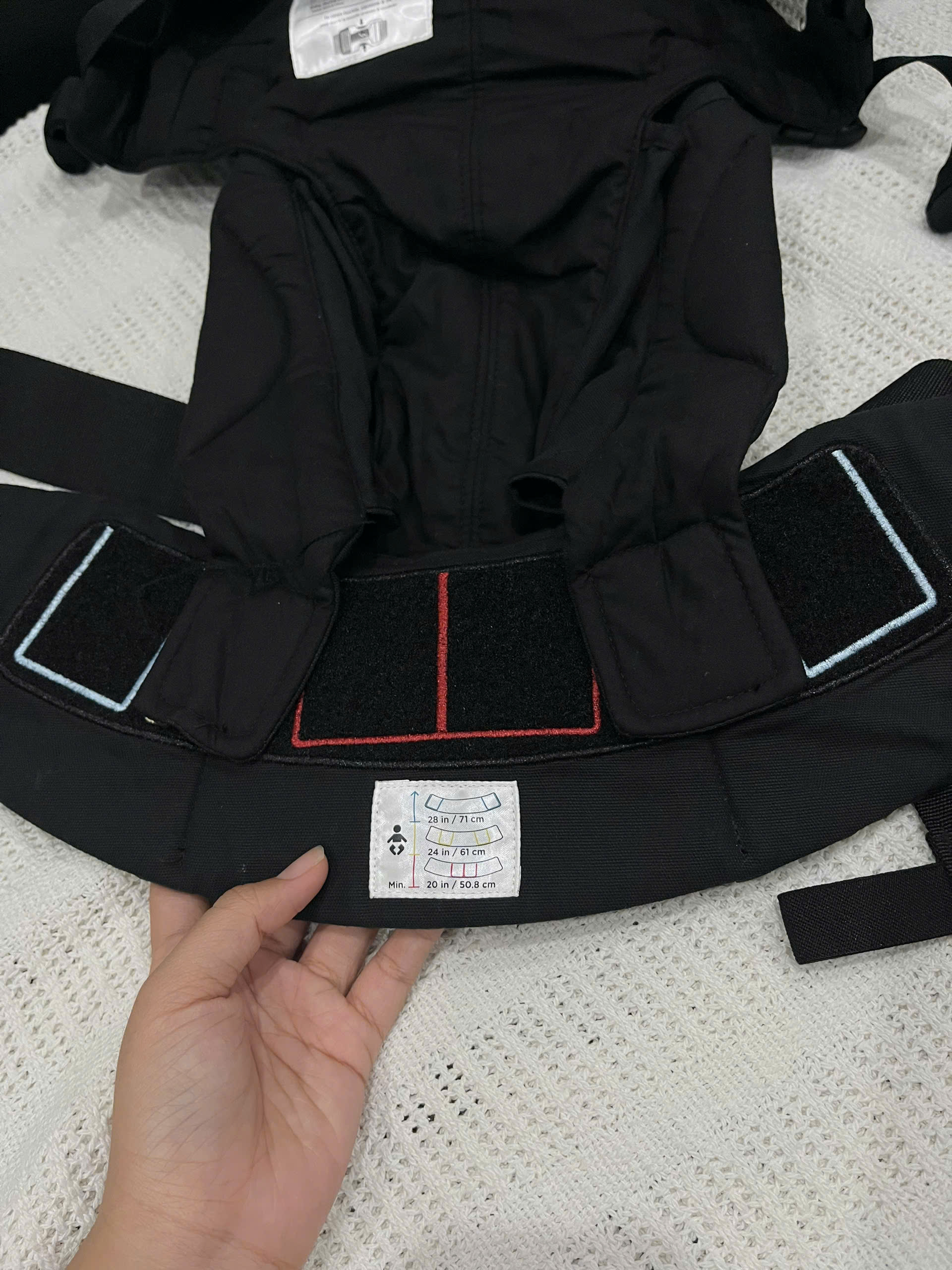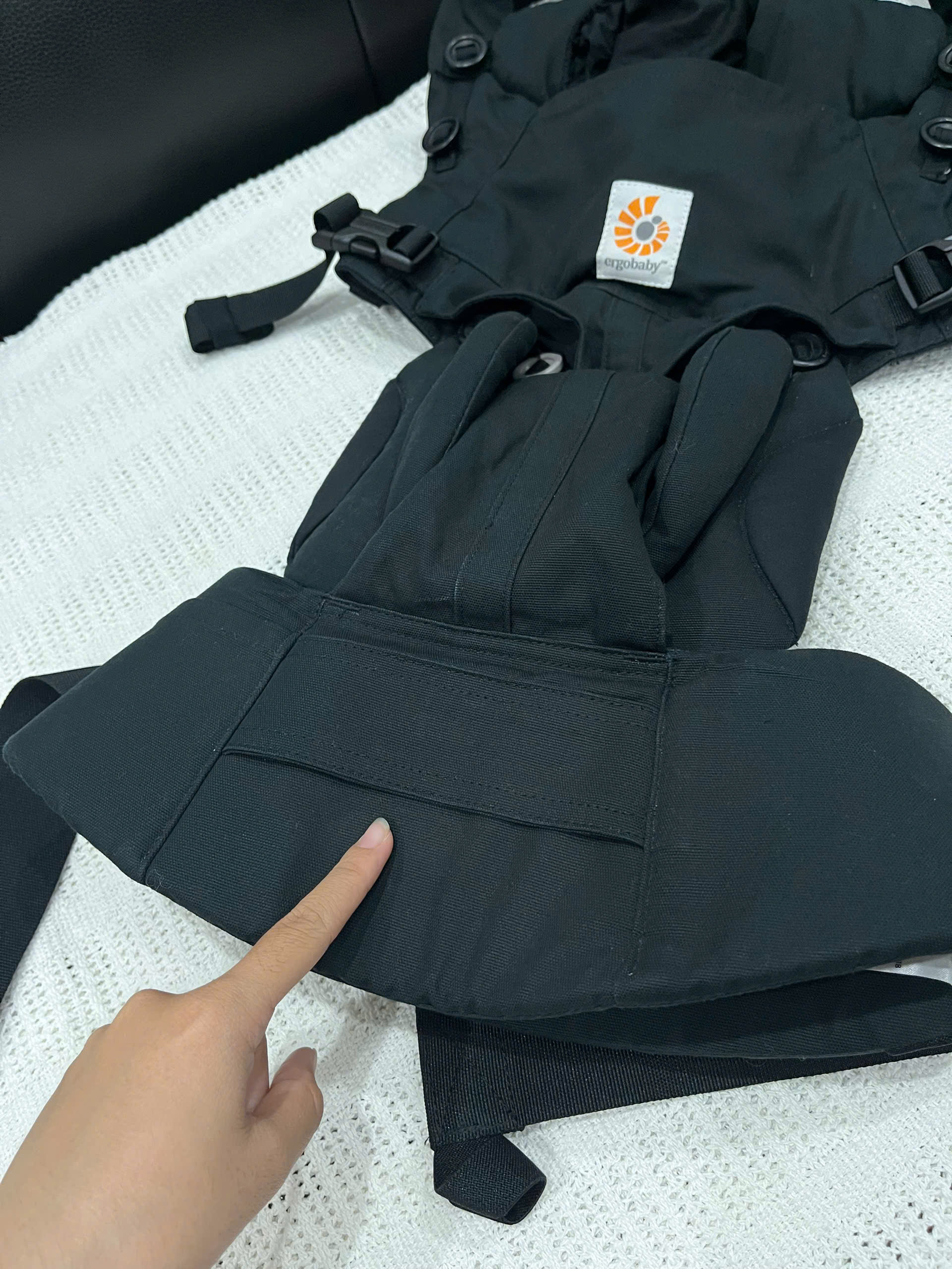 *Mô tả lỗi cụ thể: tổng thể độ mới 97%, như mới dùng 1 vài lần, vải ko xù lông, sạch, ko bạc màu, ko giãn, đai lưng chắc chắn, còn cứng form, ko giãn, các khớp nối thao lắp dễ dàng, bị thiếu phụ kiện túi ở dưới đai địu như ảnh chỉ tay so với bản gốc. Vui lòng xem kỹ mô tả và ảnh chụp thực tế bởi team, liên hệ nếu có câu hỏi thắc mắc liên quan về sản phẩm.