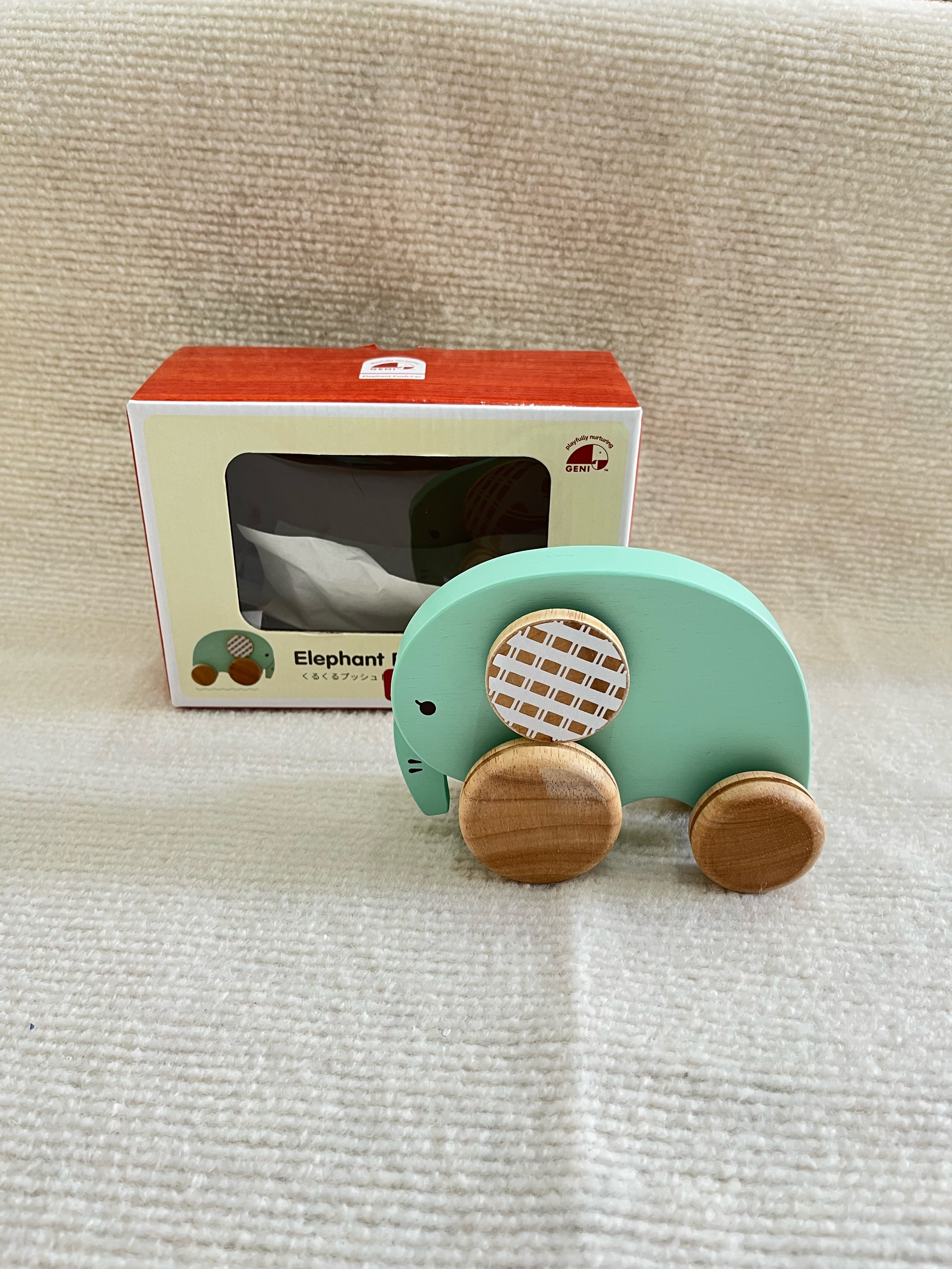 Đồ chơi xe voi gỗ Geni Nhật Bản (fullbox)