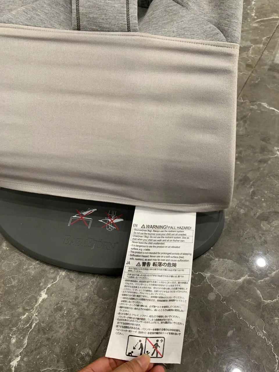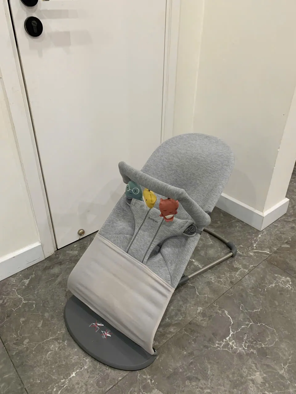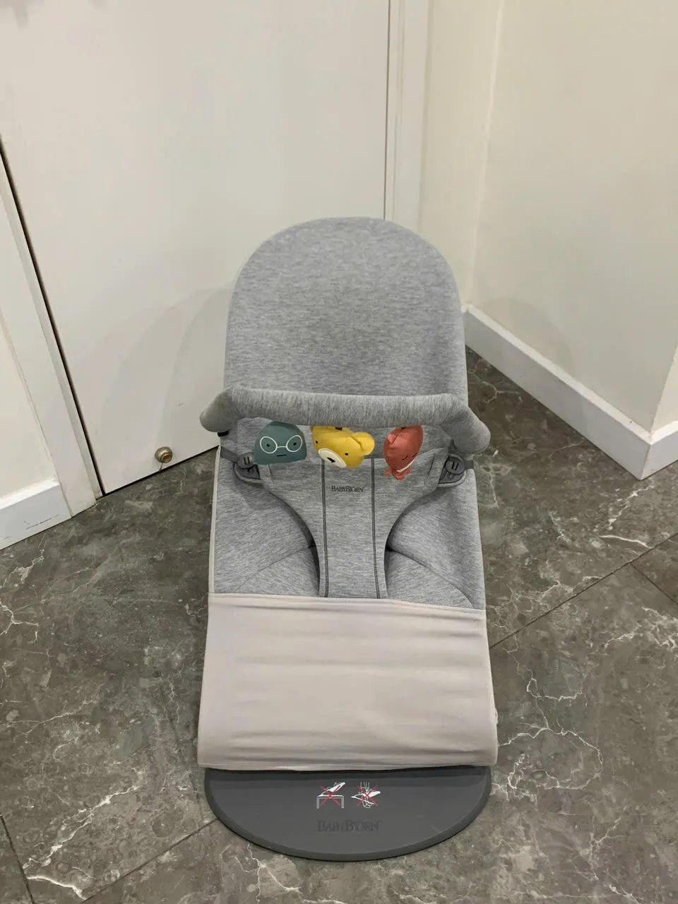 Ghế rung Baby Bjorn vải 3D màu xám nhạt kèm thanh đồ chơi (còn box)