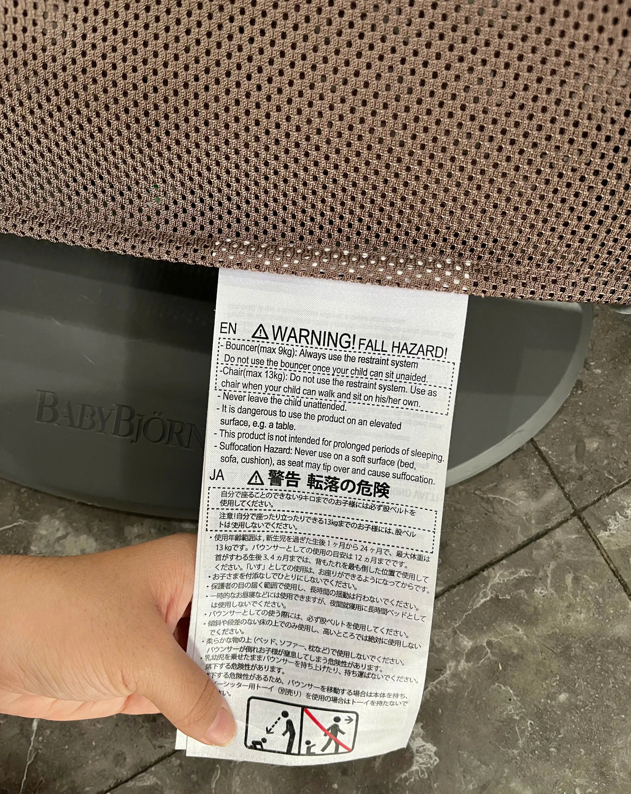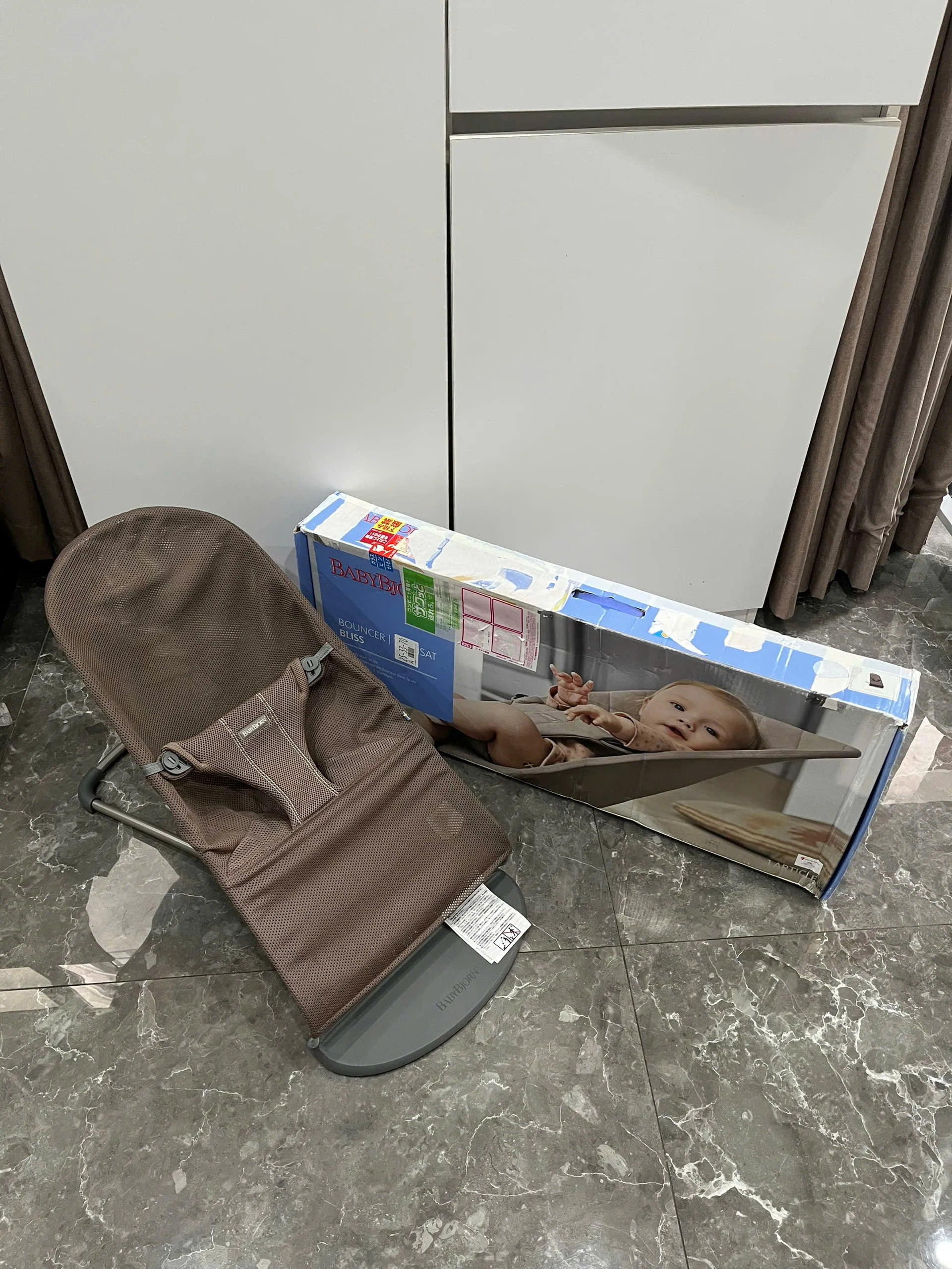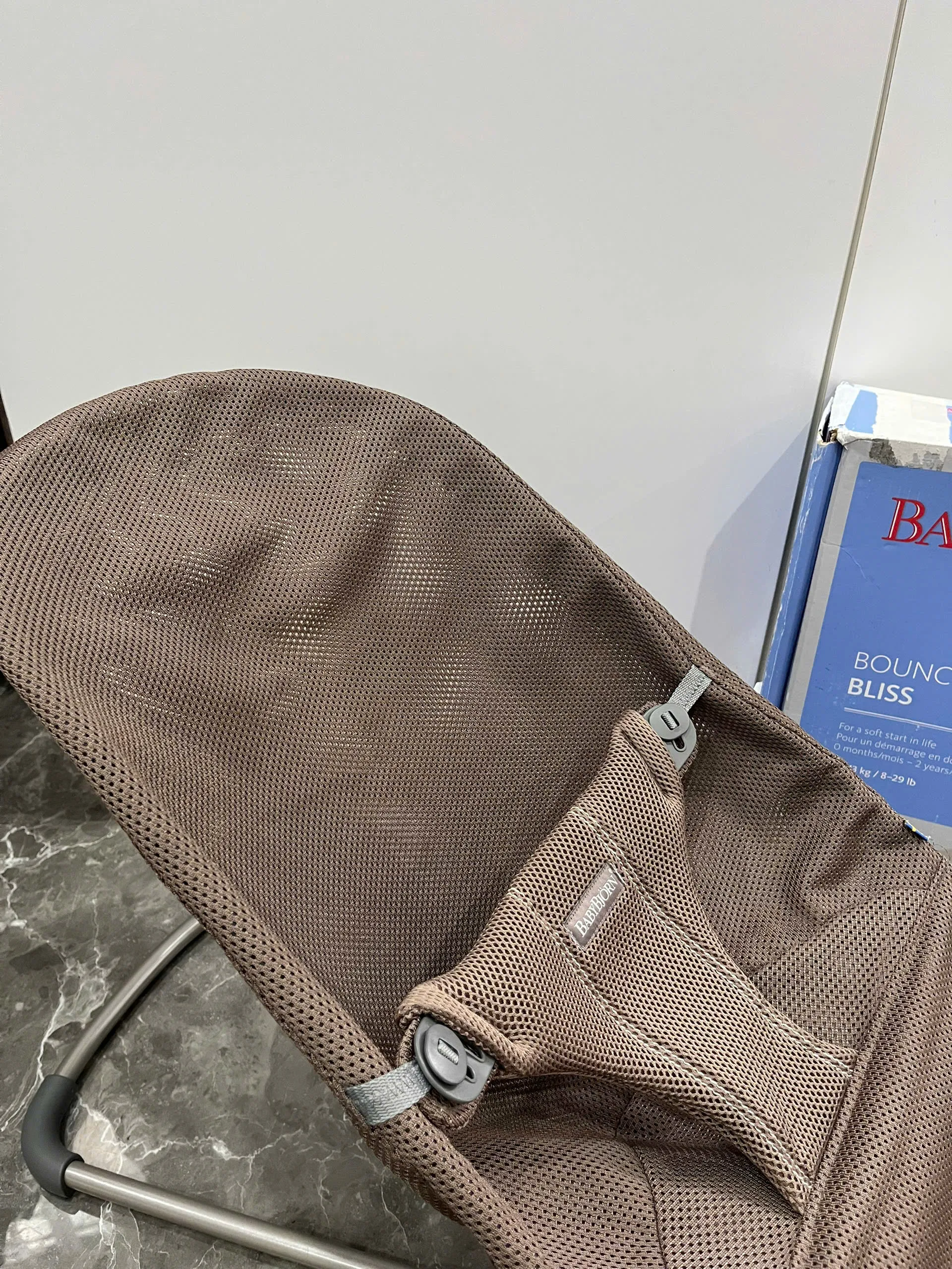 Ghế rung Baby Bjorn vải air mesh nâu choco (còn box) 3,2kg – 13kg 0-18M