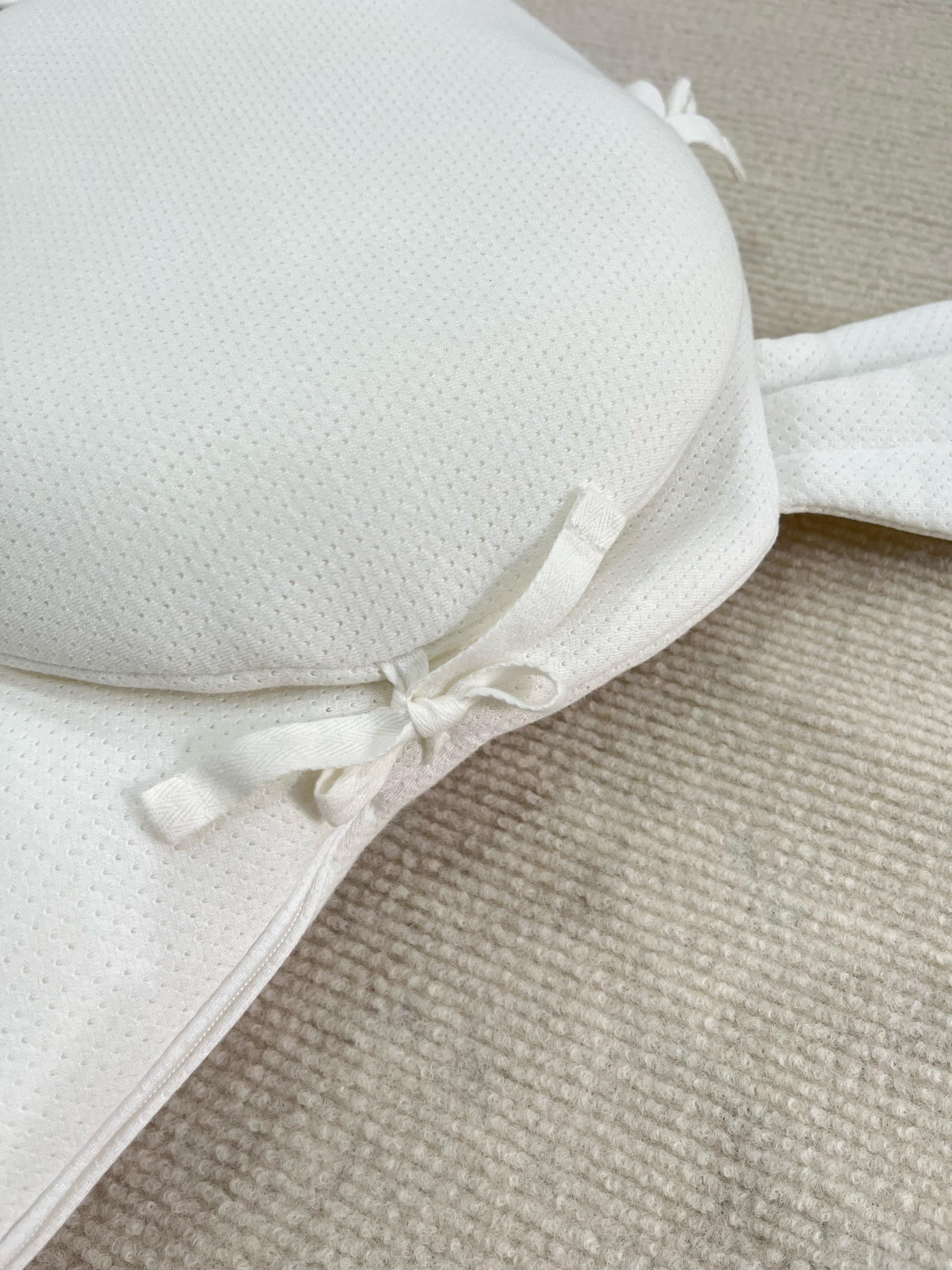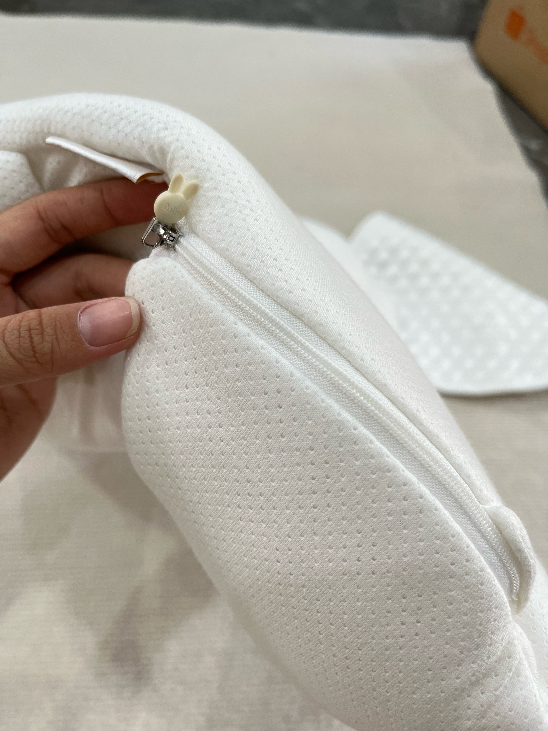 Độ mới tổng thể được đánh giá là >90%, vải không bị xù lông, không bị ố vàng ( bên trong ruột gối dính vết như trong ảnh đã chỉ tay), ruột gối bông êm mịn, khoa kéo mượt trơn, form gối ko xẹp. Phụ kiện đi kèm gồm miếng lót làm mát đầu bé có điều chỉnh vải Duraron. Vui lòng đọc kỹ mô tả và xem qua hình ảnh được chụp thực tế bởi đội ngũ Ký gửi Recyme trước khi chốt sản phẩm. Recyme luôn sẵn sàng hỗ trợ nếu Mom cân thêm thông tin.