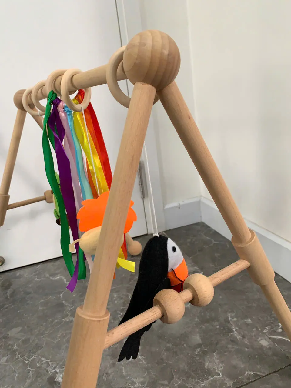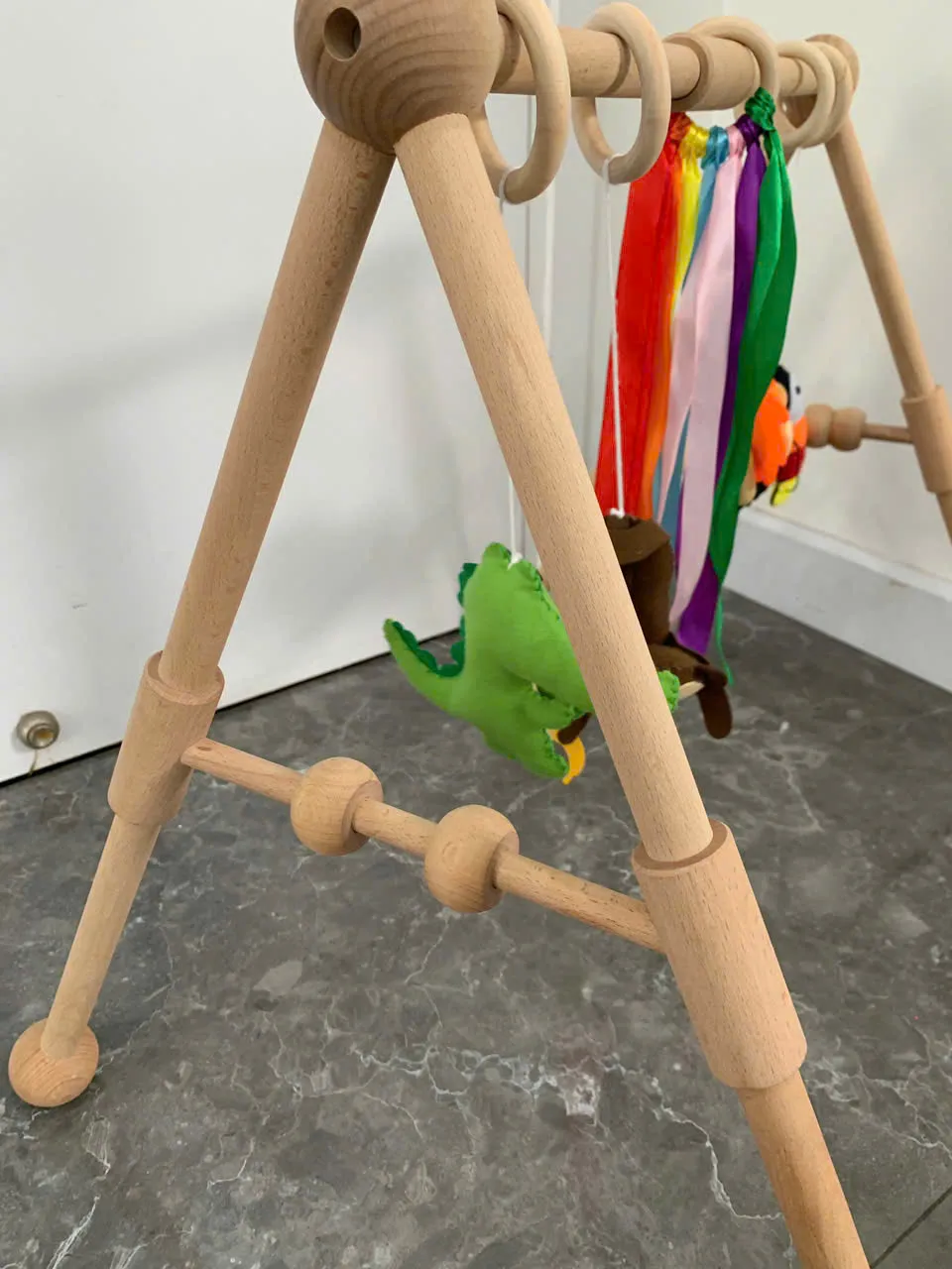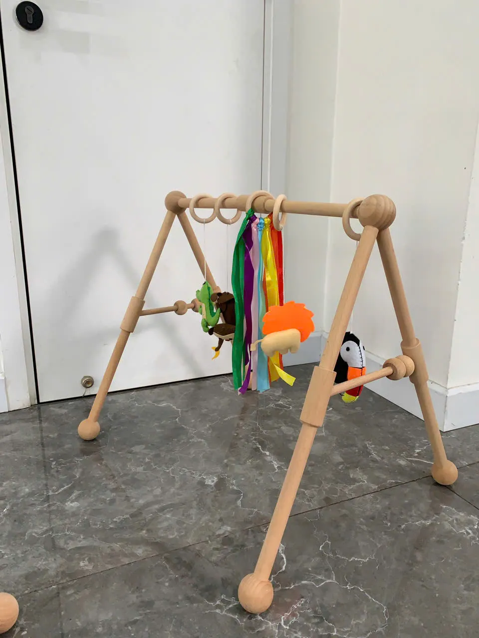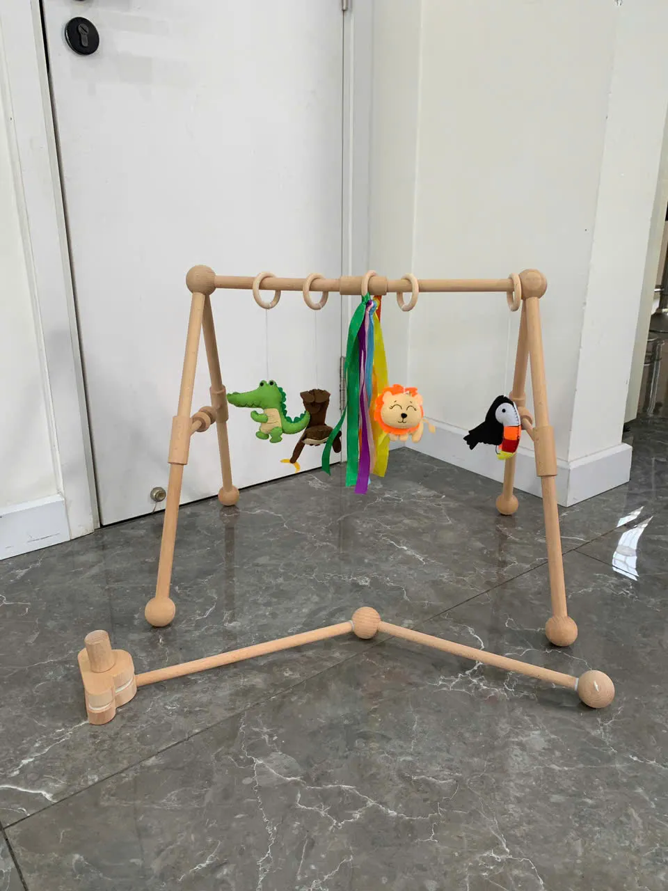Kệ chữ A (kèm đồ chơi vận động) & giá treo cũi bằng gỗ Bon store 0-2 tuổi