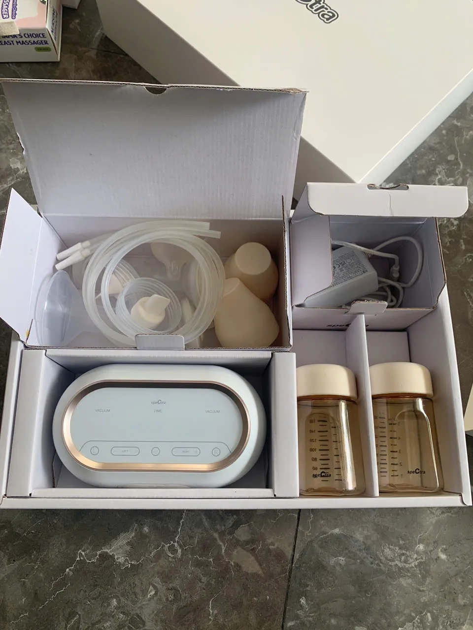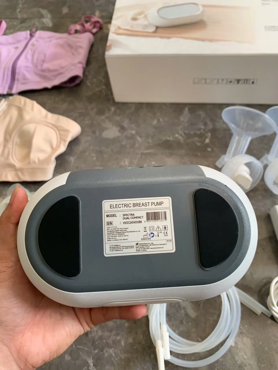 Máy hút sữa điện đôi Spectra Dual Compact còn box hãng & bảo hành (tặng kèm 2 áo hút sữa, phễu silicone LacTeck, bình trữ sữa Mama’s Choice)