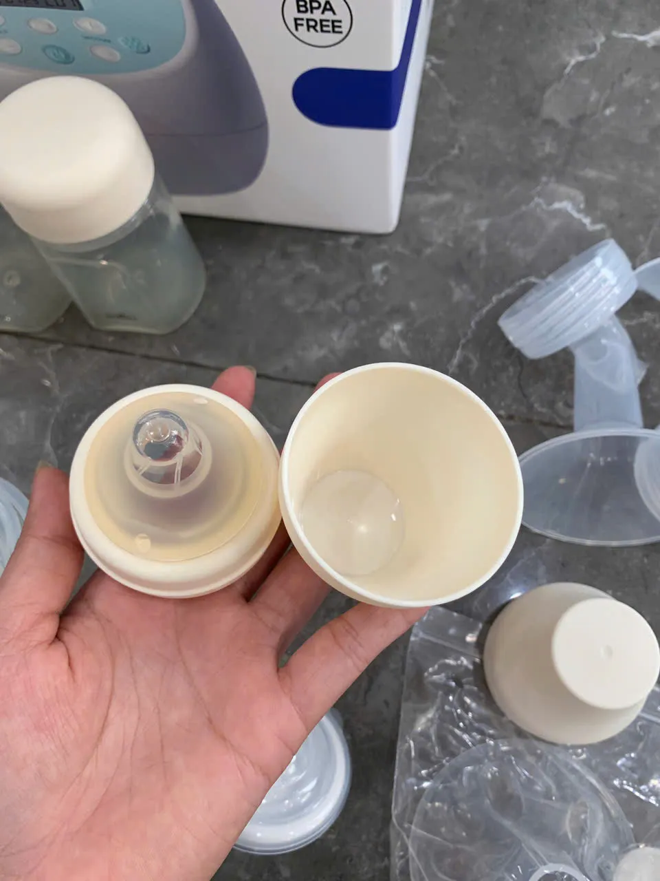 Máy hút sữa tình trạng như mới, tổng thể độ mới ~90%, thân máy sạch, không ố bẩn và không trầy xước.