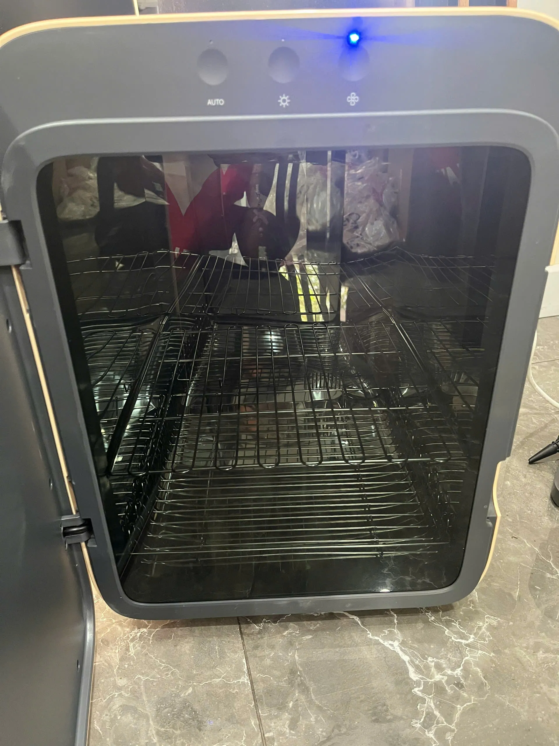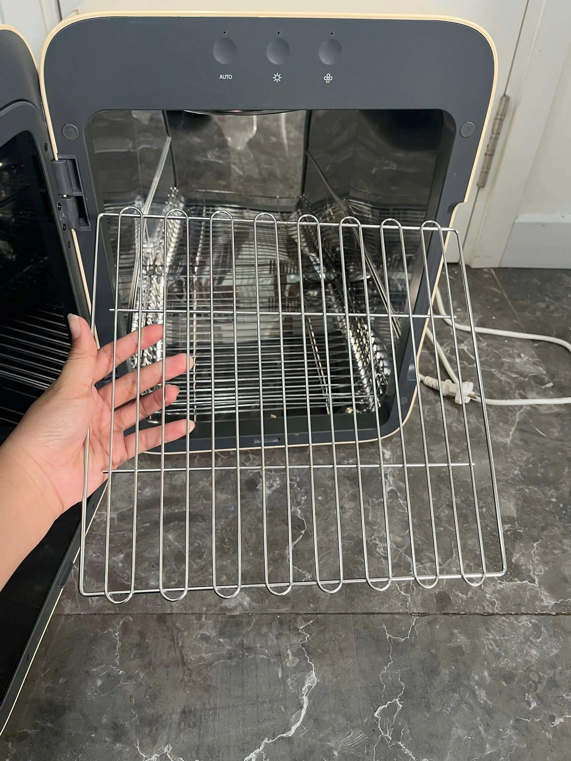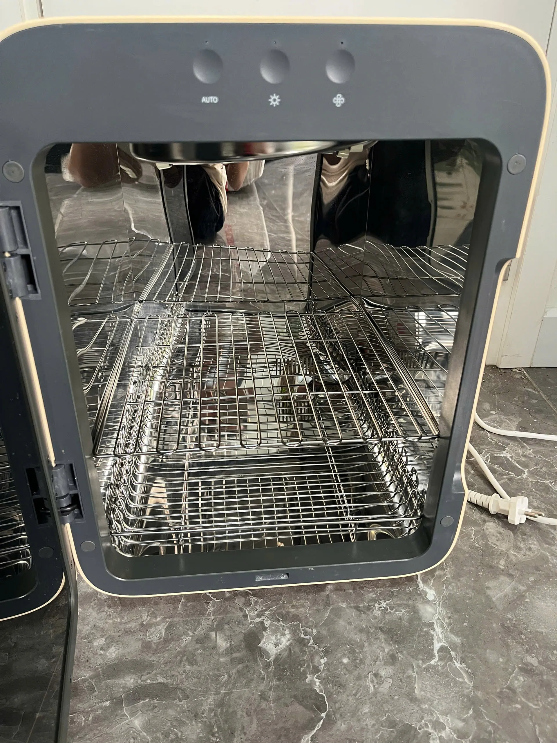 Máy hoạt động tốt, nút cảm ứng nhạy, nút cơ không bị lún, màn hình hiển thị rõ. Các chế độ sấy, tiệt trùng và nguồn điện đều ổn định, đã được test kỹ bởi đội ngũ Recyme. Ngoại hình độ mới khoảng 90%, thân máy sạch, không ố bẩn, hầu như không có trầy xước đáng kể.
