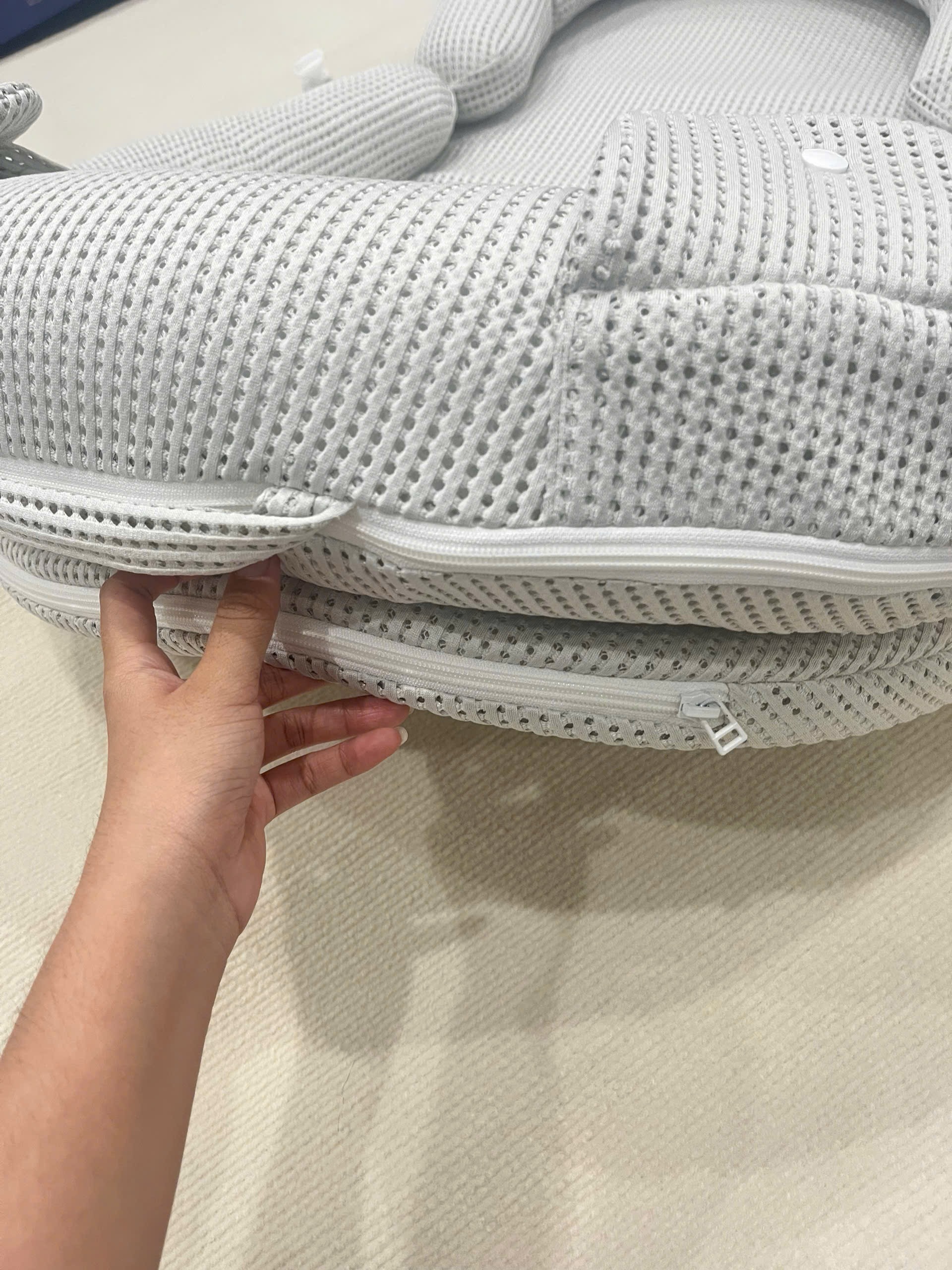 – Mô tả lỗi cụ thể: Tổng thể độ mới được đánh giá > 98% (sản phẩm chưa qua sử dụng, chỉ tháo ra để vệ sinh), vải sạch không ố bẩn, không xù lông, không phai màu, ruột gối sạch, trắng, khoá keo mượt, khớp nối dễ tháo lắp, hình thêu đẹp, các nút bấm tháo lắp dễ dàng. Phụ kiện đi kèm mới và sạch, mùng không bị rách hay thủng (lưu ý box là của phụ kiện đi kèm) . Vui lòng đọc kỹ mô tả và xem qua hình ảnh được chụp thực tế bởi đội ngũ Ký gửi Recyme trước khi chốt sản phẩm. Recyme luôn sẵn sàng hỗ trợ nếu Mom cần thêm thông tin.