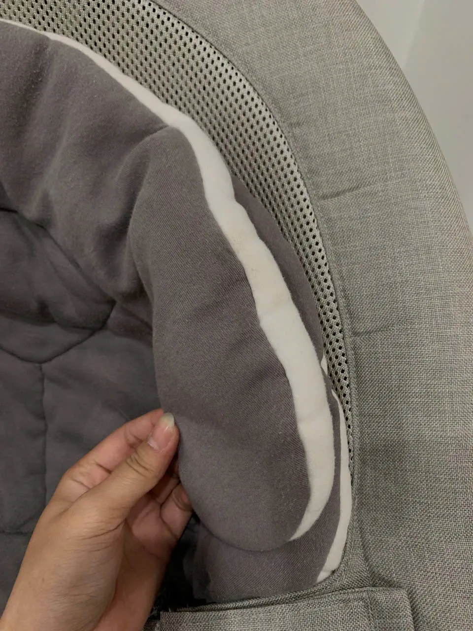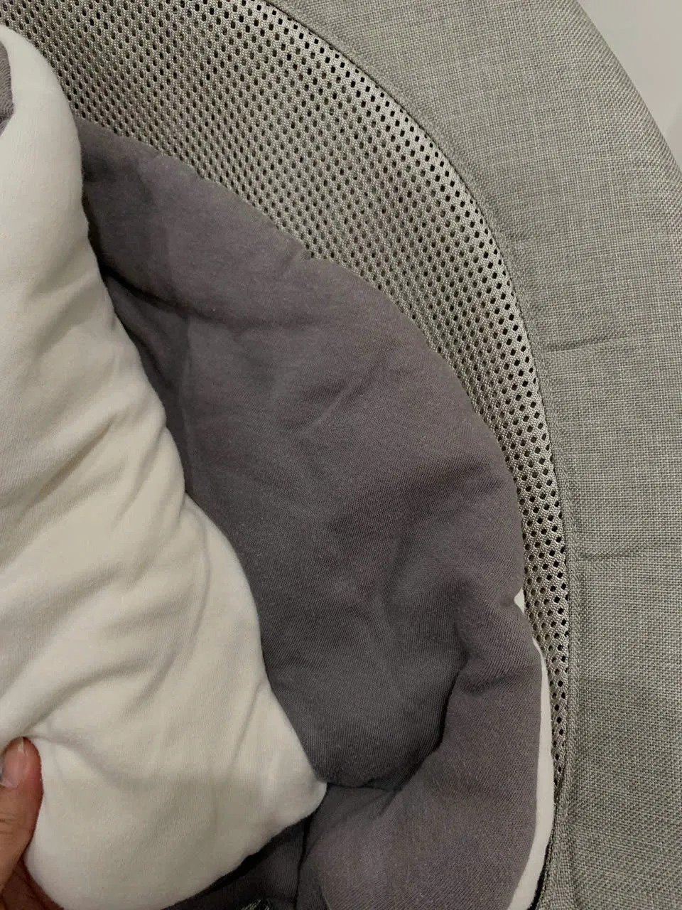 Tổng thể độ mới được đánh giá khoảng 95%. Nôi còn khá mới, chỉ sử dụng 1 vài lần; không gian nôi rộng, chắc chắn; đệm lót sạch; các miếng dán cài an toàn còn bám tốt; khung nôi không trầy xước. Thanh đồ chơi có thể tháo rời và vẫn hoạt động tốt. Vui lòng đọc kỹ mô tả và xem hình ảnh chụp thực tế bởi team Recyme.
