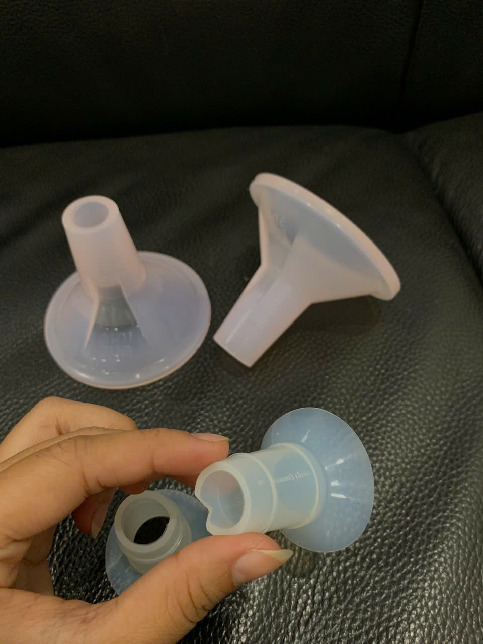 Phễu hút sữa silicone MiniPum màu hồng nhạt kèm phễu hạ size Mama’s Choice size 19mm ( như mới,19mm)