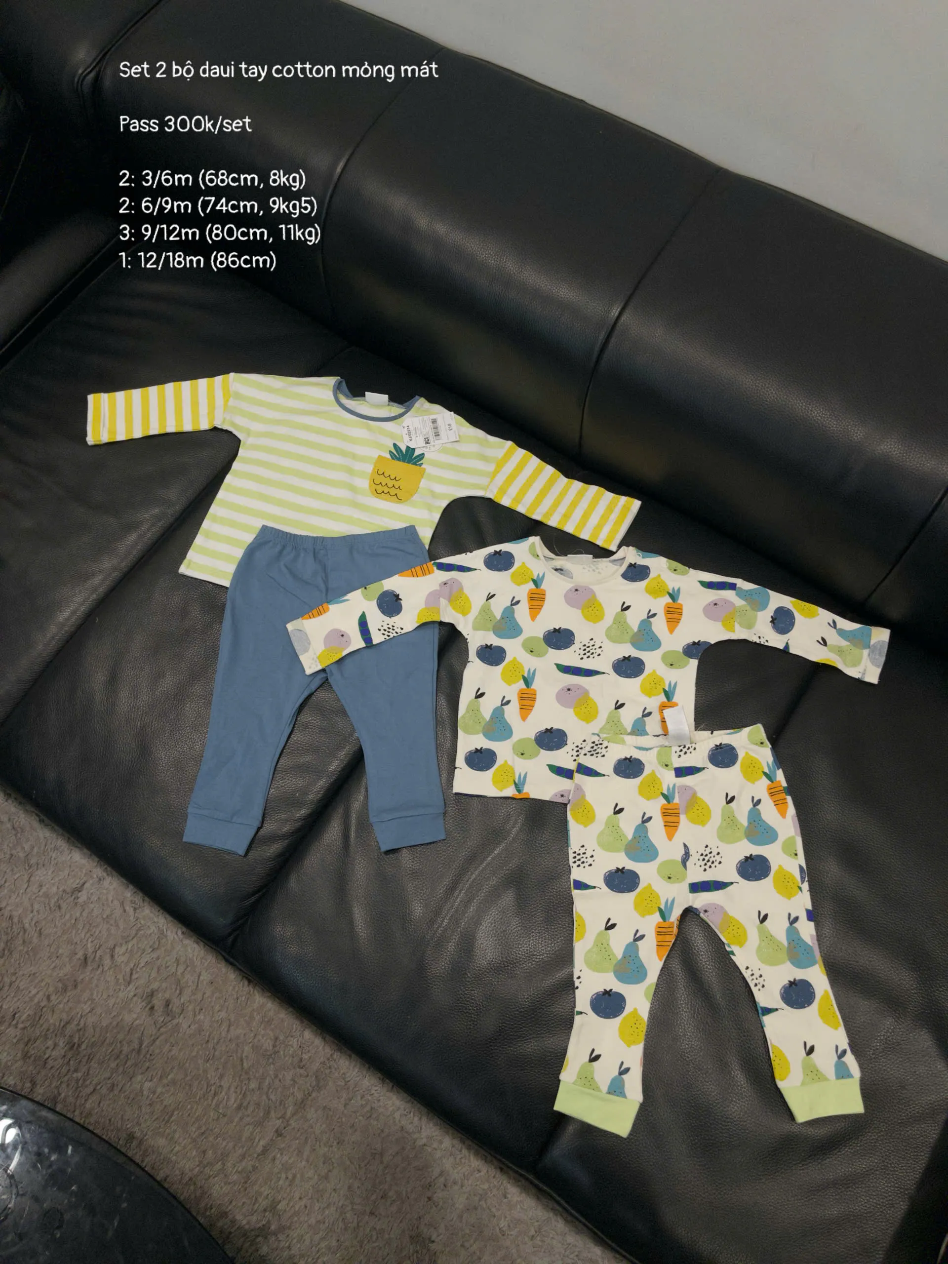 Set 2 bộ dài tay Next baby hoạ tiết tropical (size 3/6m, 6/9m, 9/12m, 12/18m)