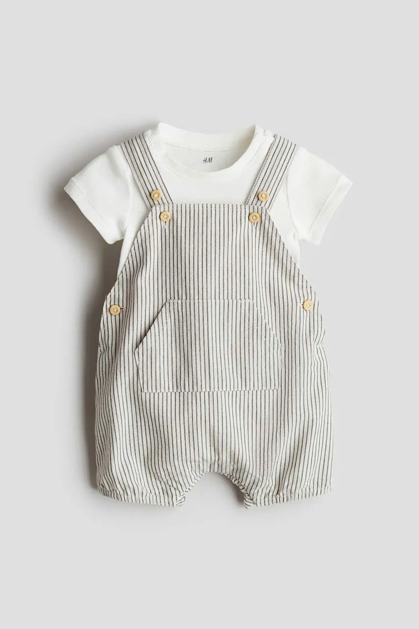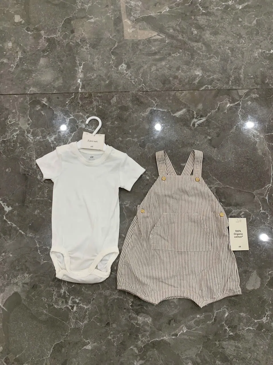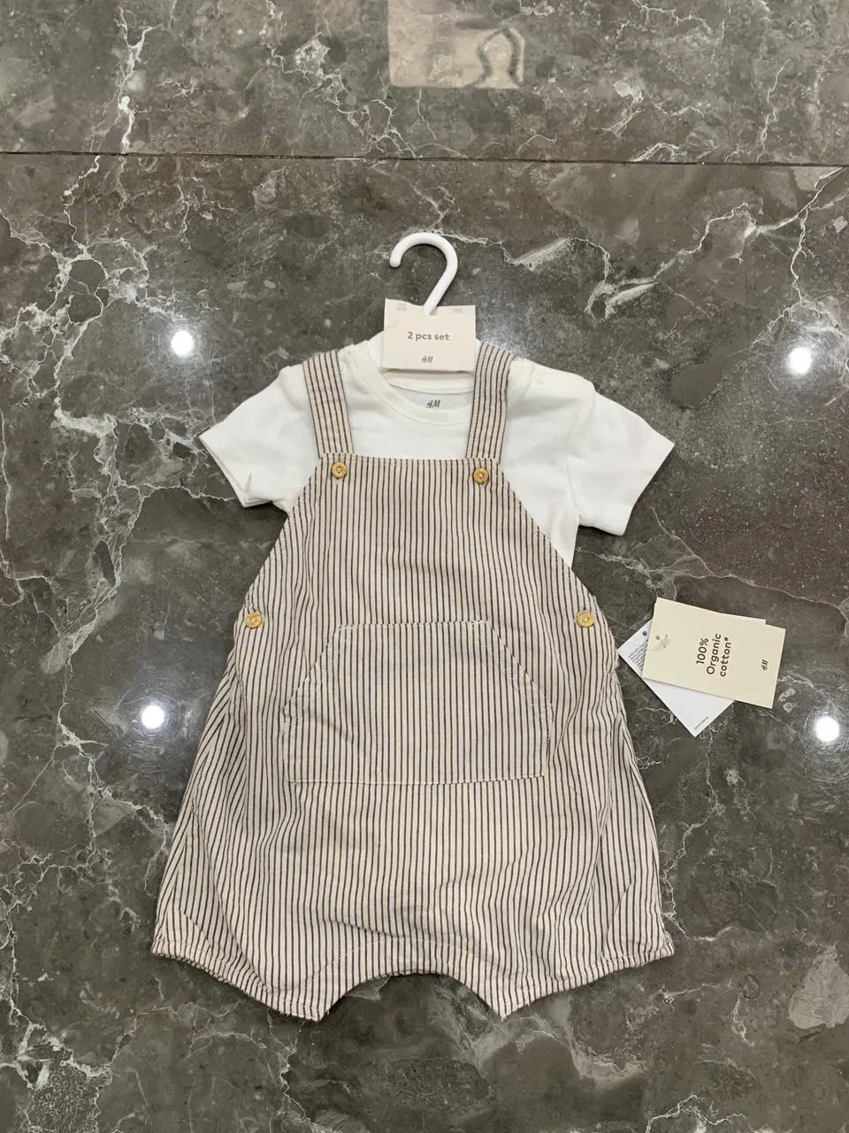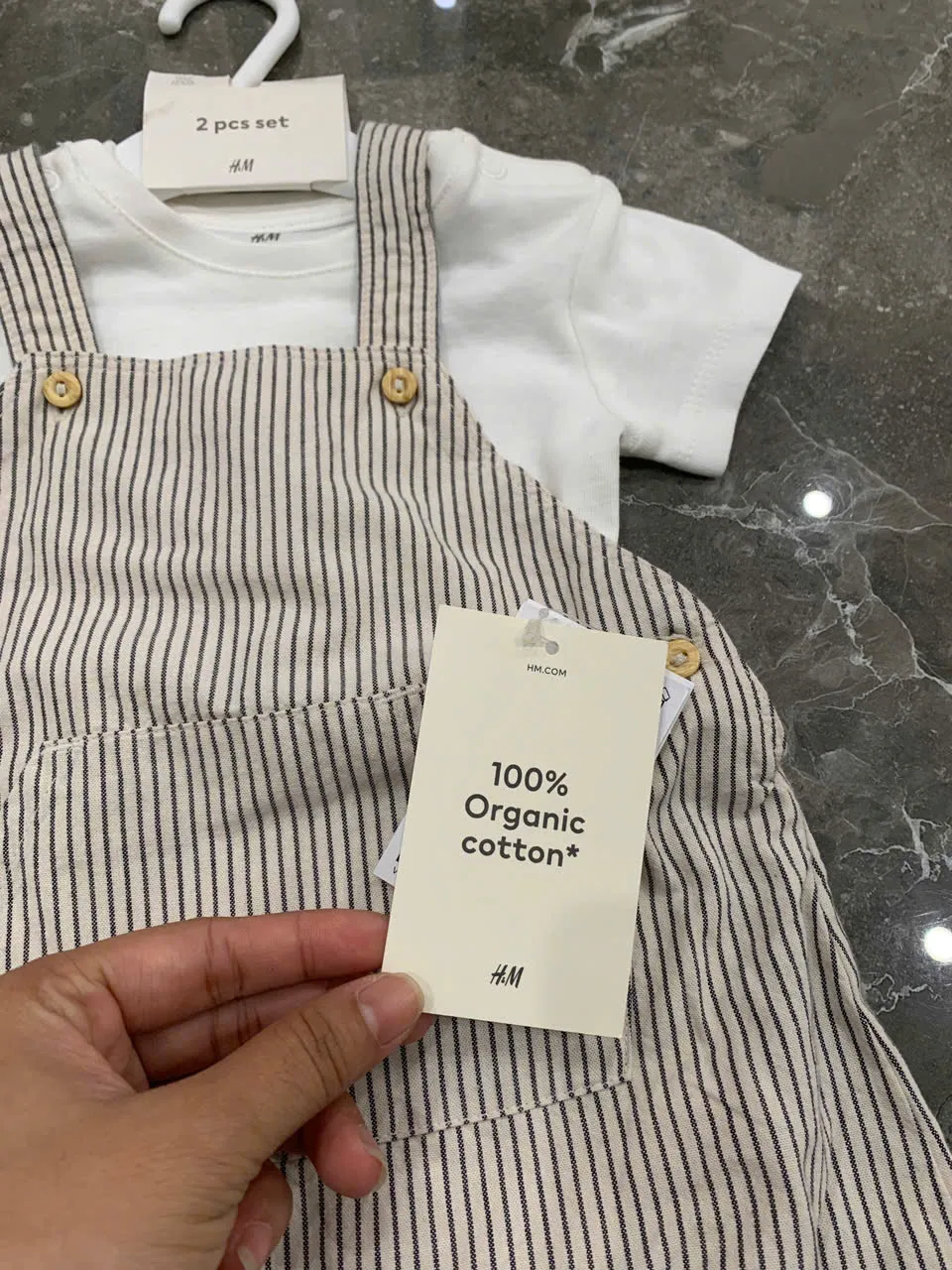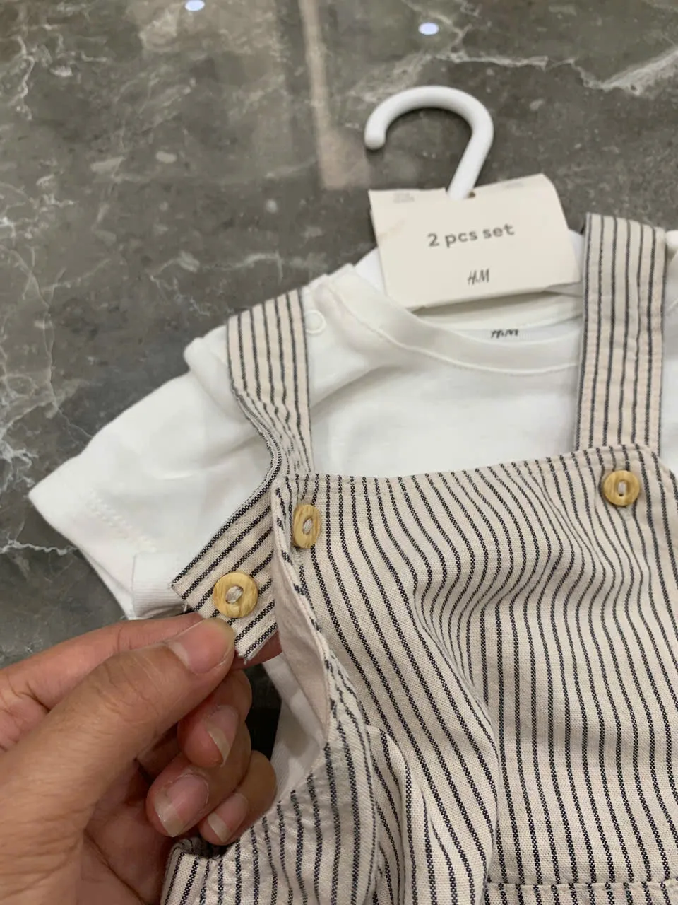 Set 2 món yếm đùi kẻ sọc trắng be H&M (6 đến 9 tháng) H&M