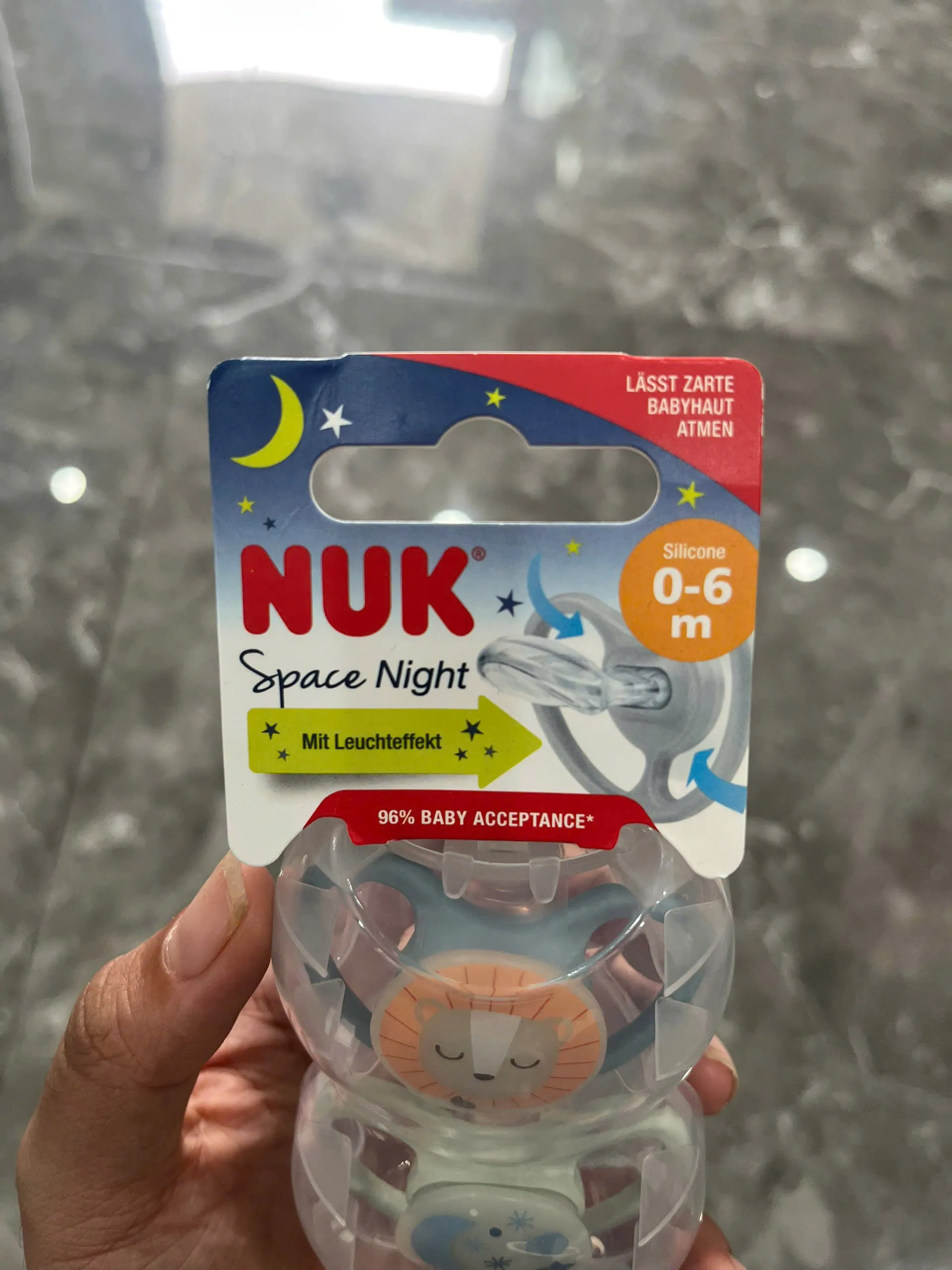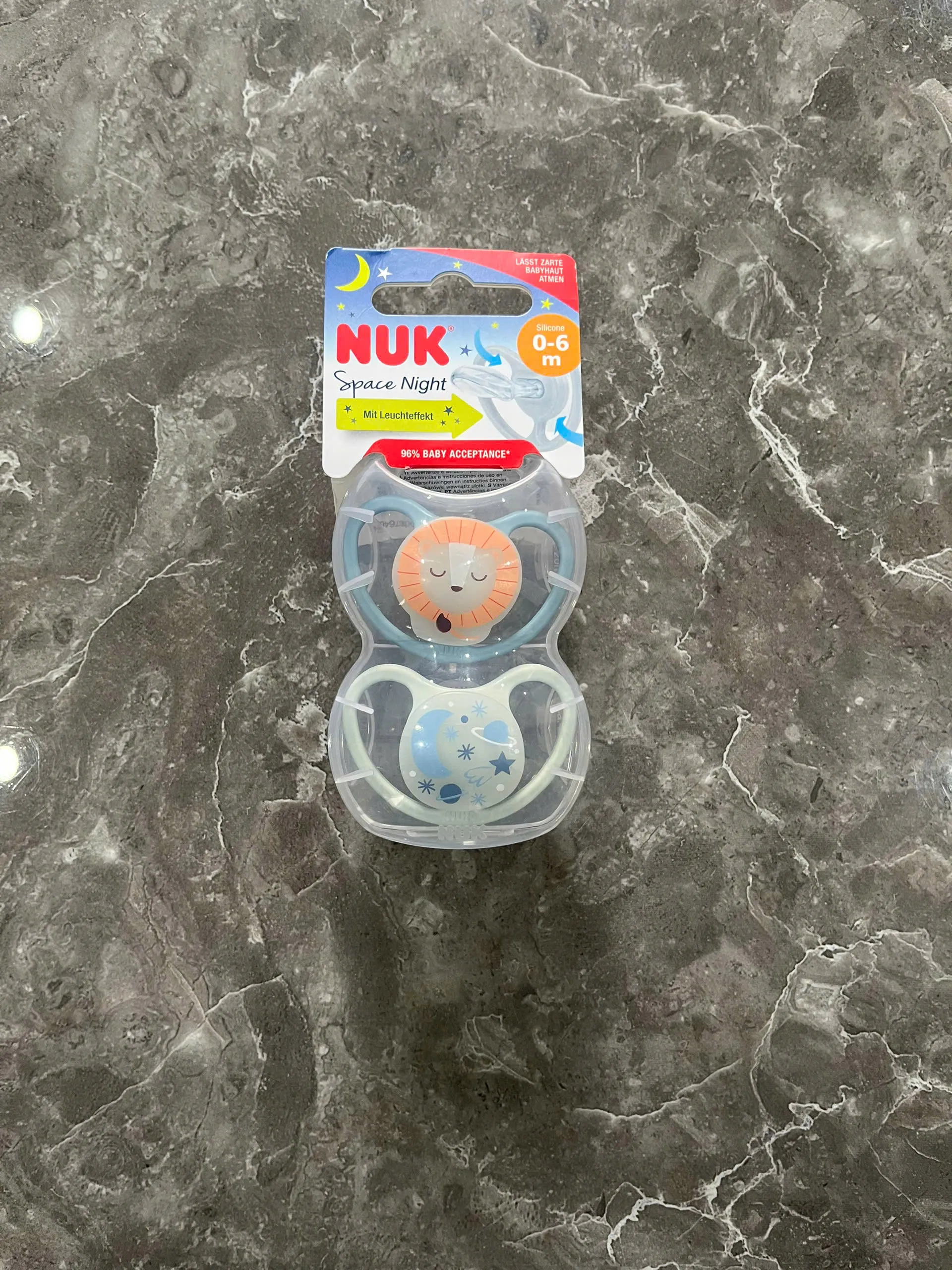 Set 2 ti giả Nuk Space night màu xanh/bạc hà, 2 chiếc kèm hộp đựng ( full box) NuK