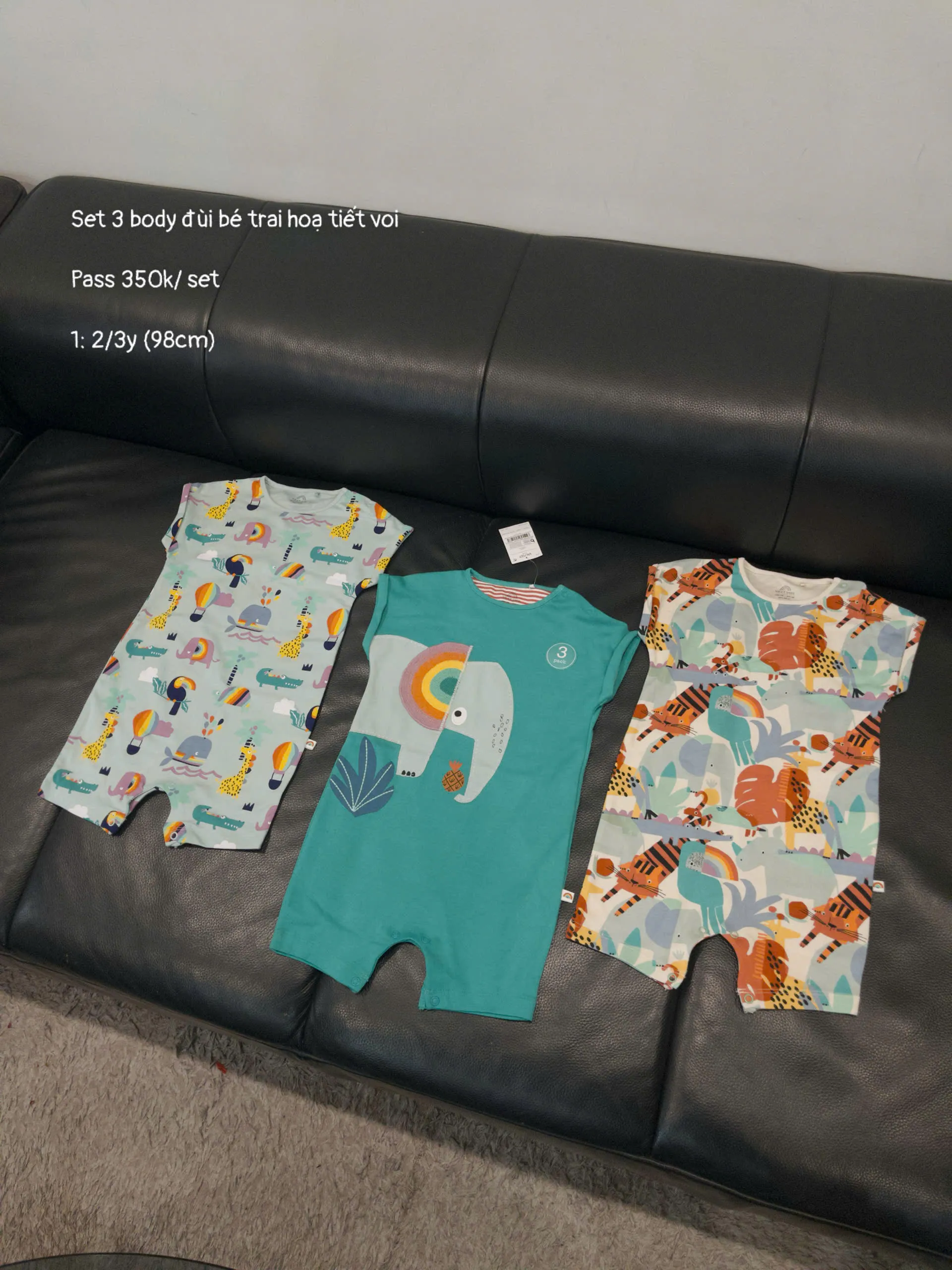 Set 3 bộ body đùi Next baby màu xanh họa tiết con voi (Size 2/3y)