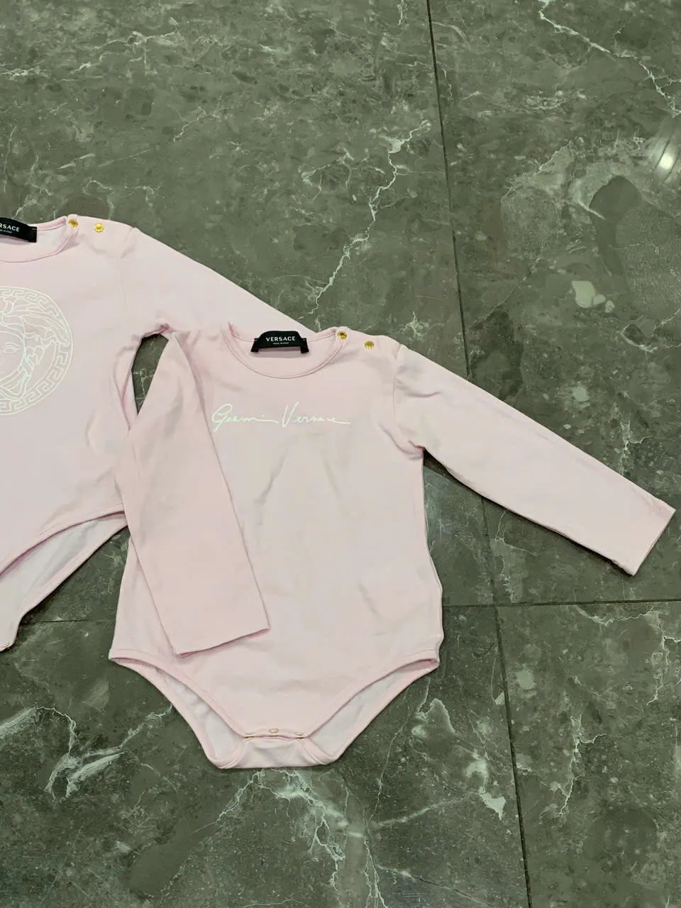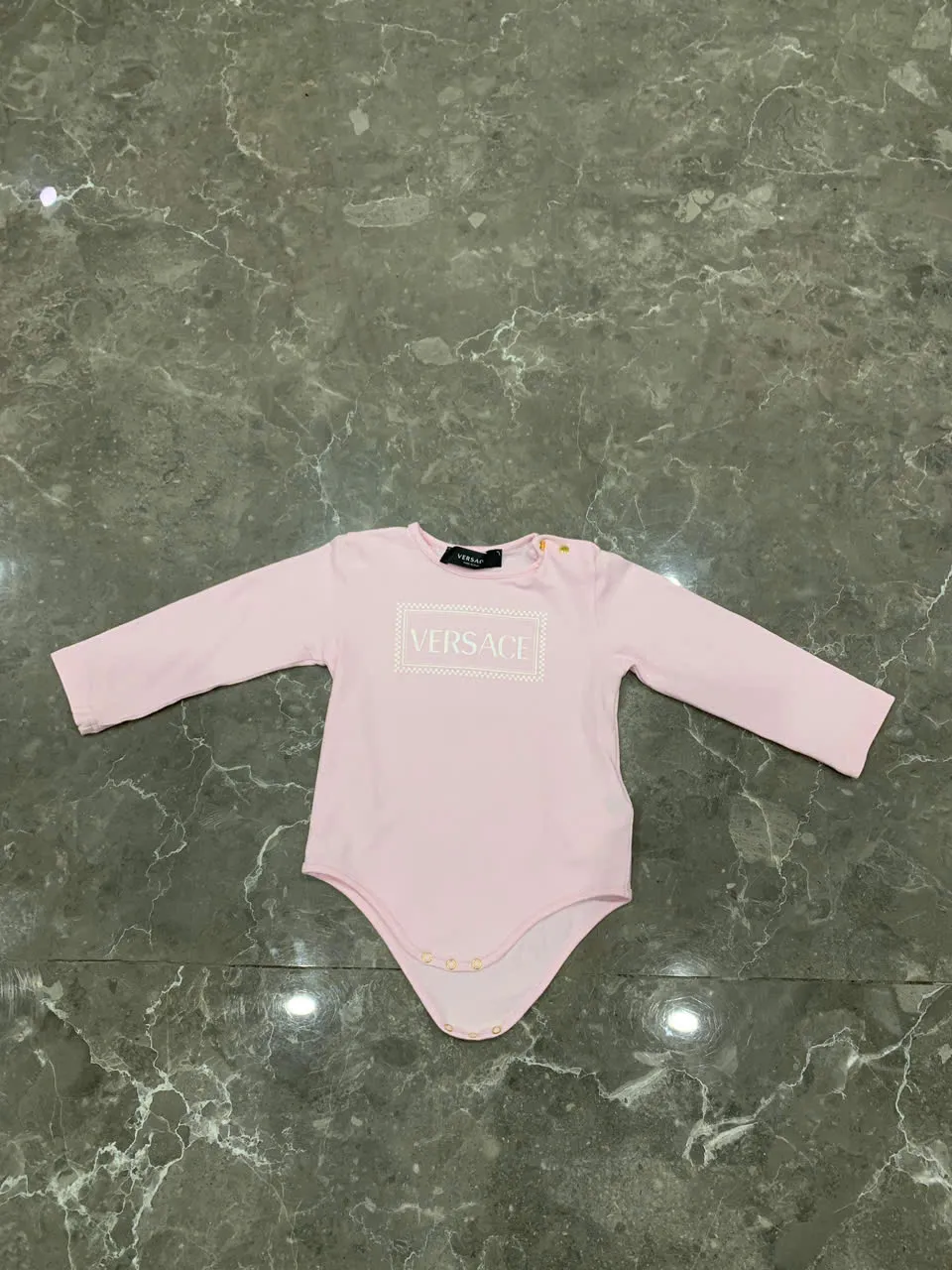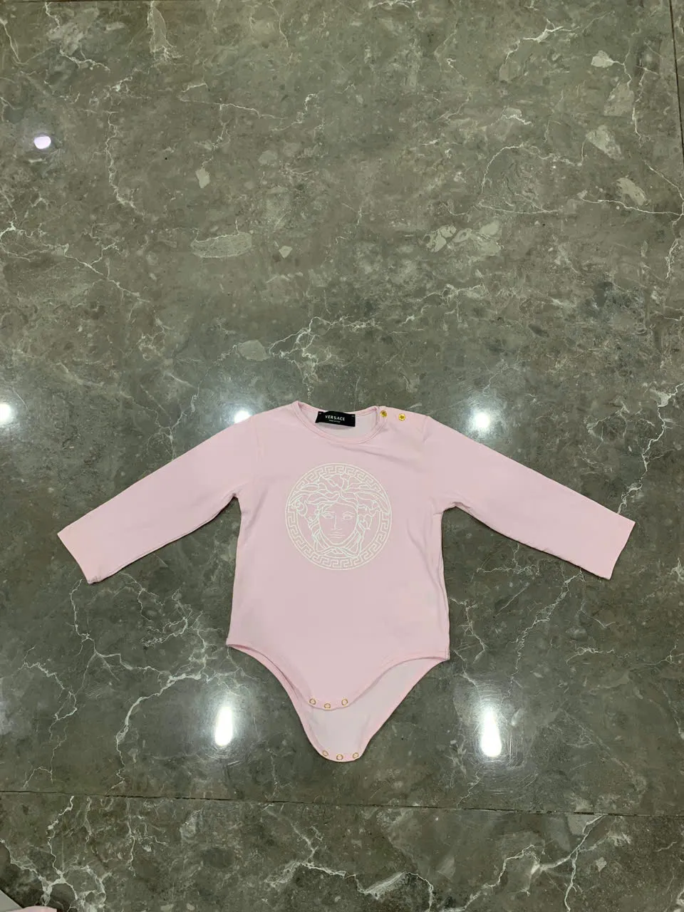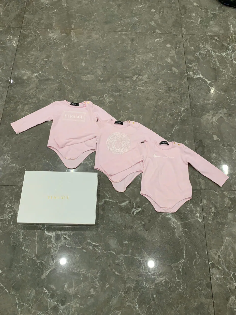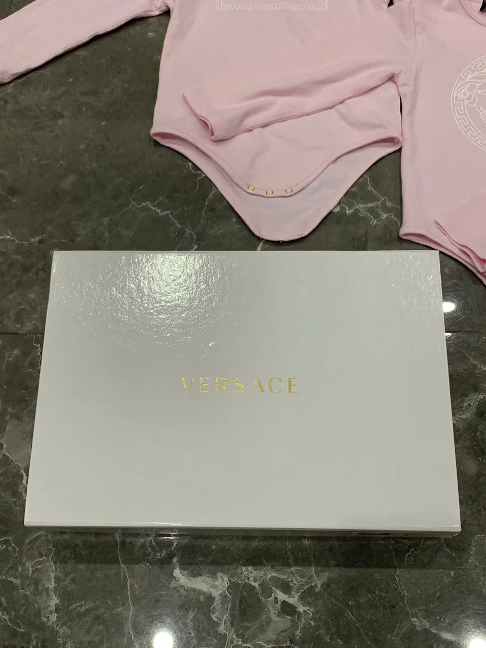 Set 3 bộ bodysuit dài tay Versace màu hồng size 9 đến 12 tháng (còn box) Versace