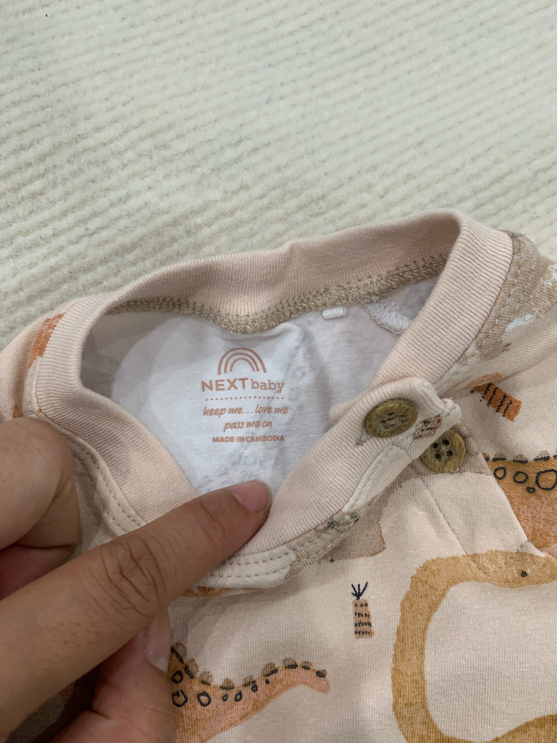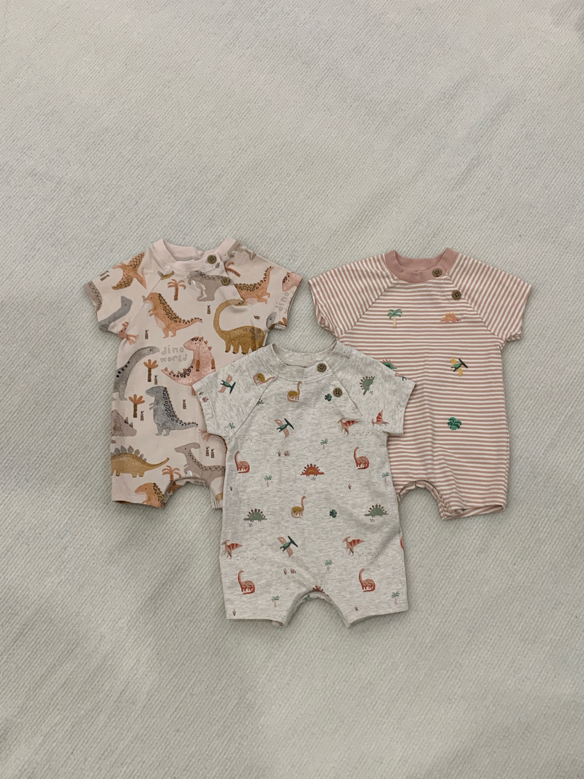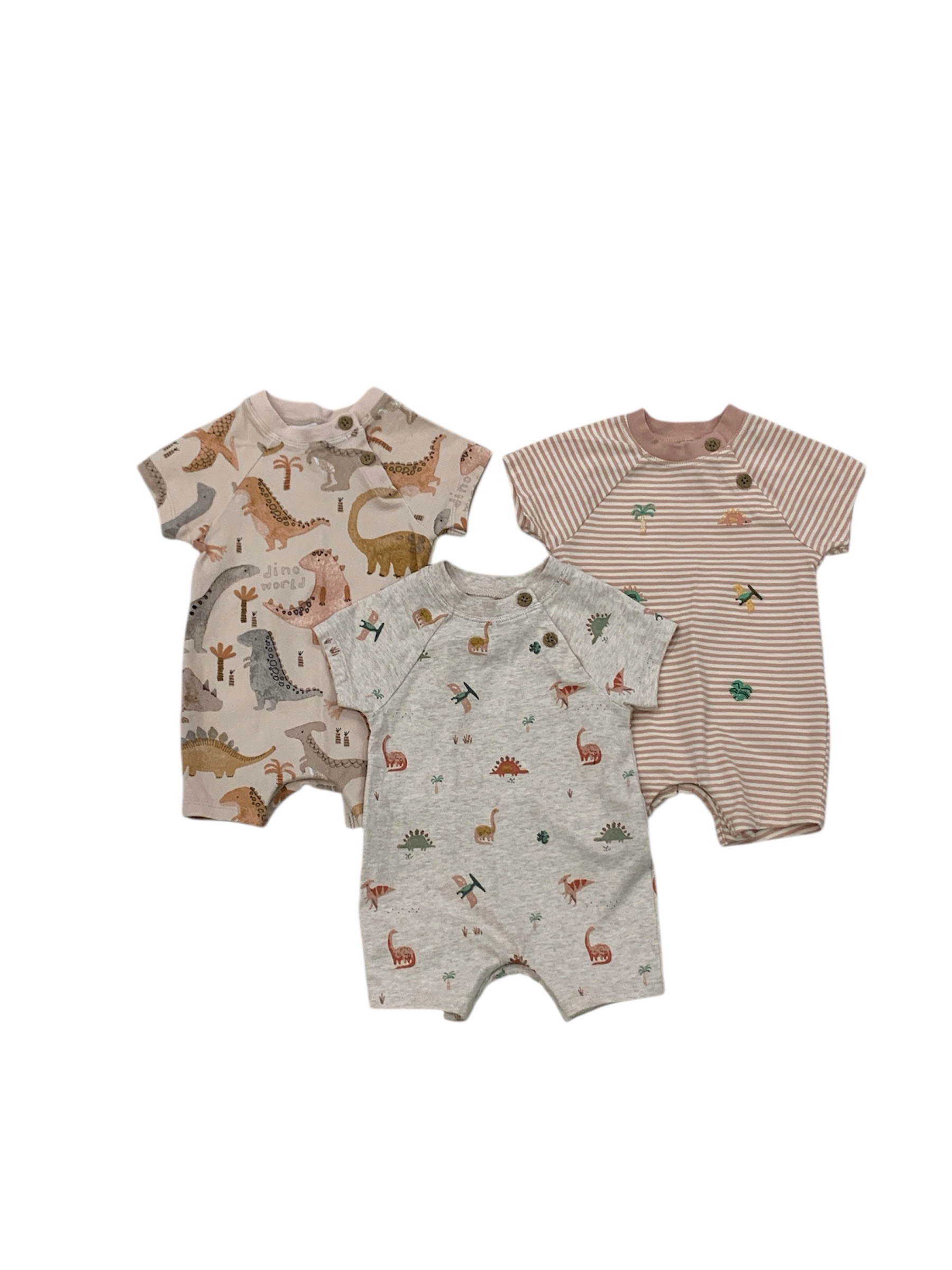 Set 3 bộ suit đùi hoạ tiết khủng long Next baby (size:0/3M)