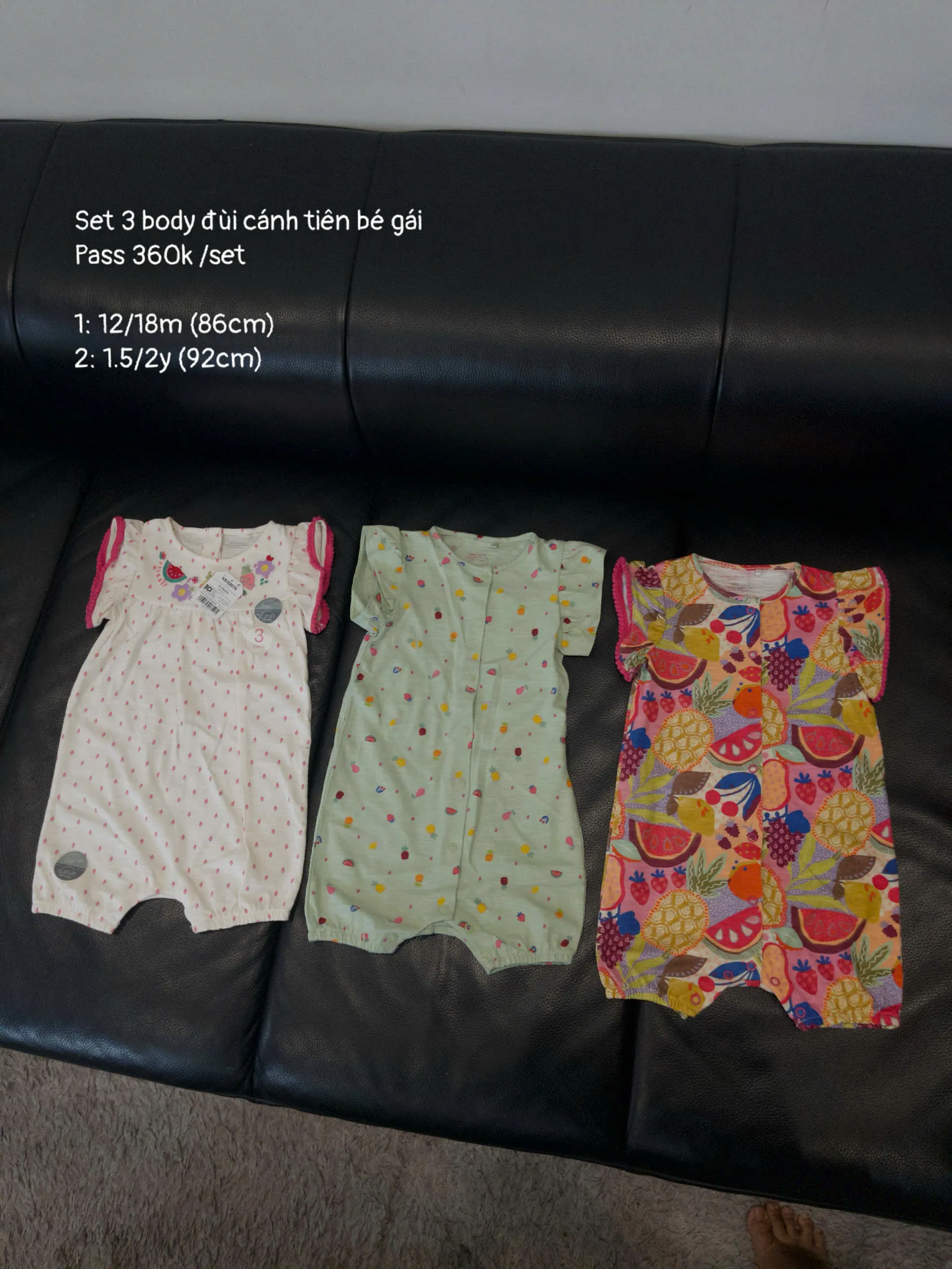Set 3 body đùi tay bèo họa tiết trái cây Next baby 3 màu ( Size 12/18m, 1.5/2y )