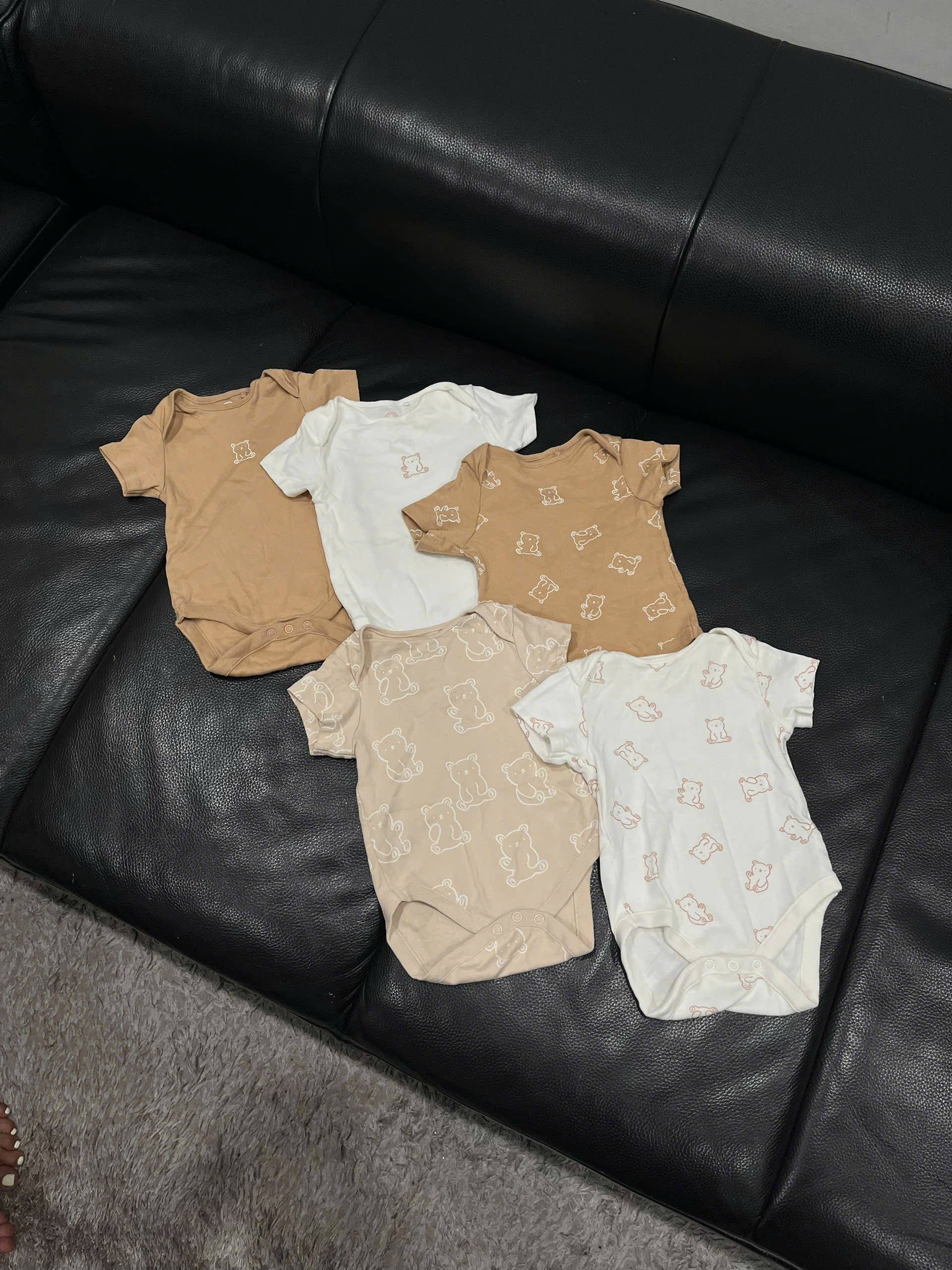 Set 2 bộ bodysuit Albetta màu nâu trắng ( size 0/3m, 6/9m)