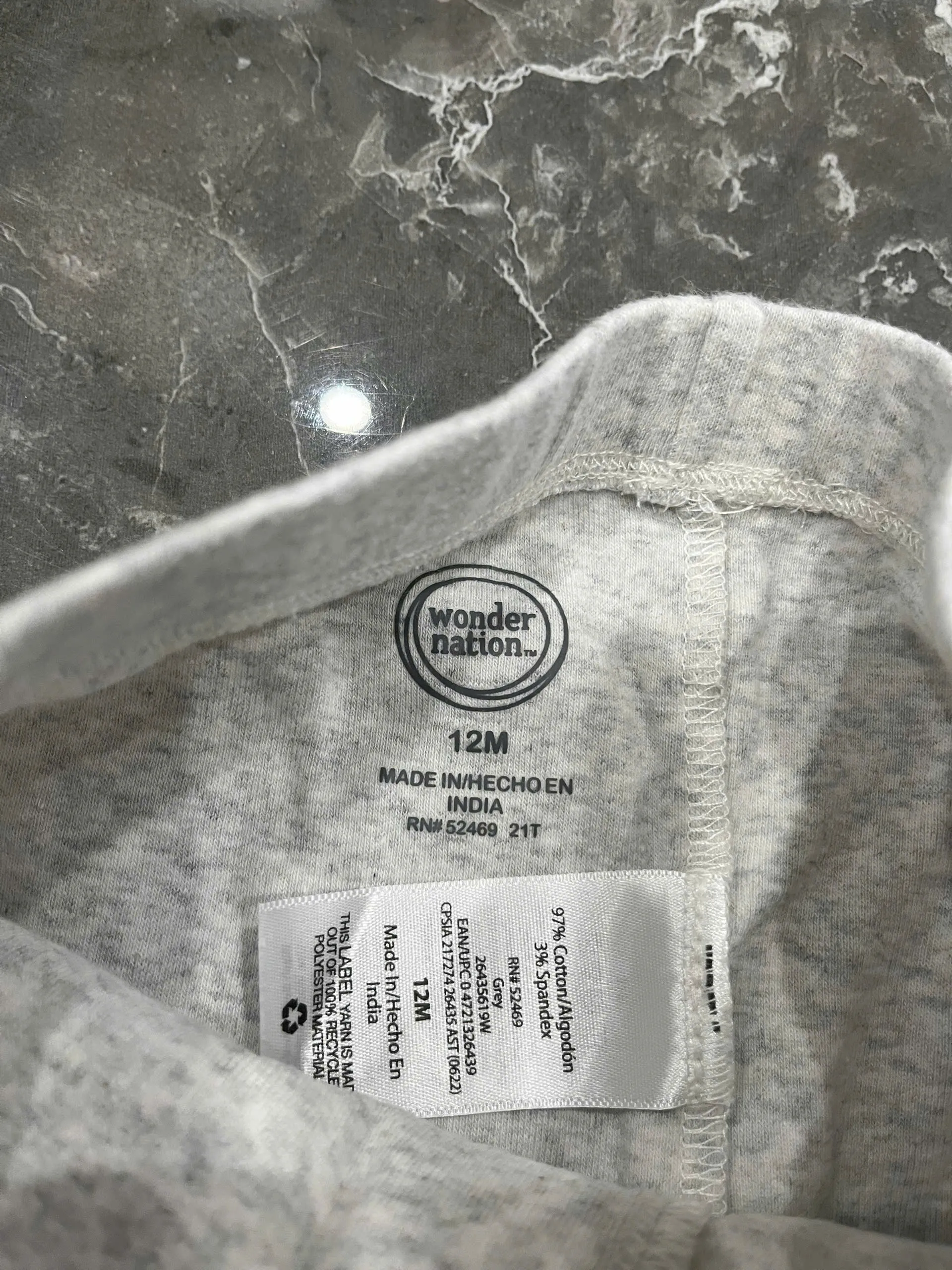 Set 5 quần legging mix brand Wonder Nation, Carter’s màu hồng, xám, trắng (size: 12m)