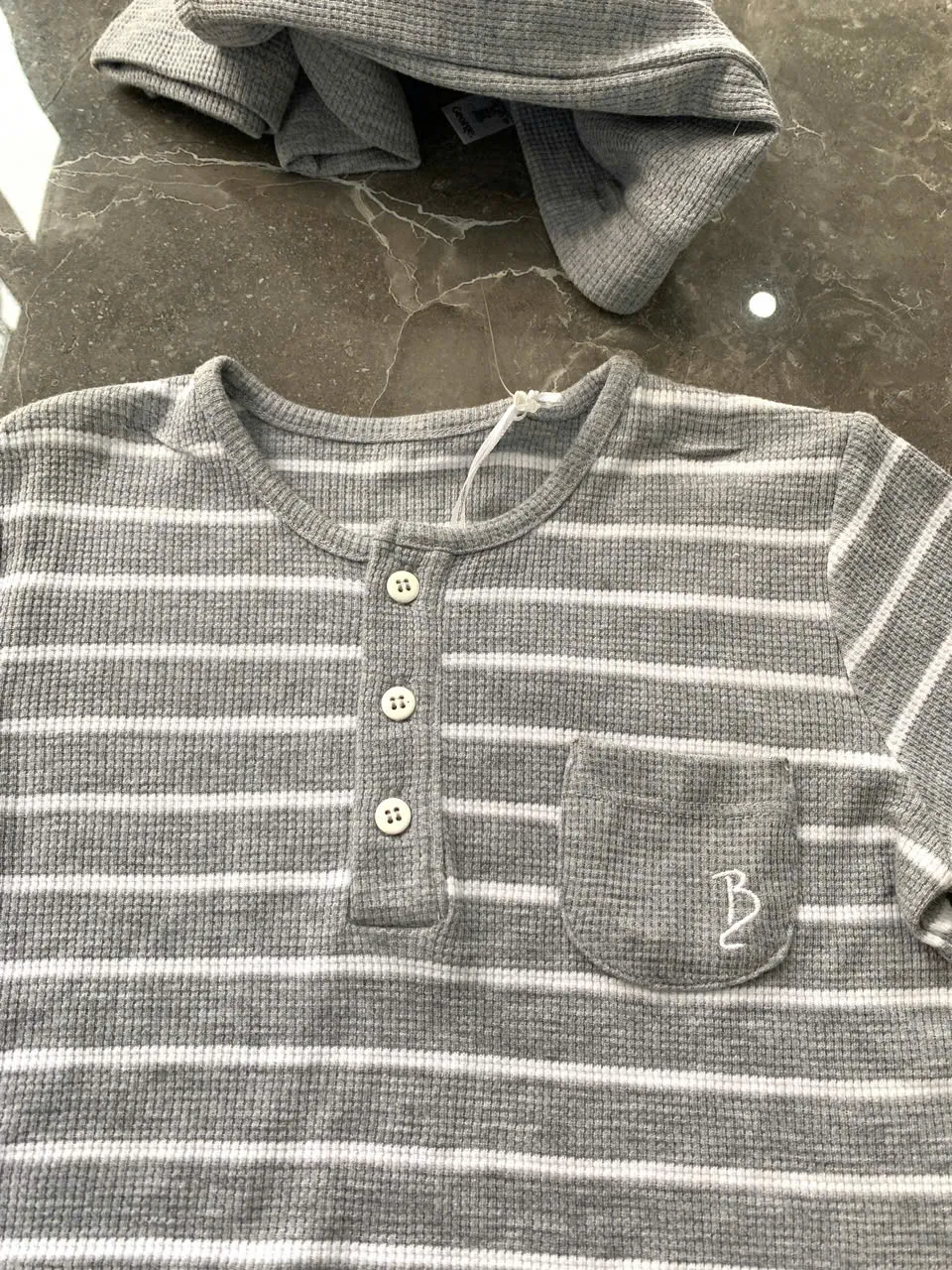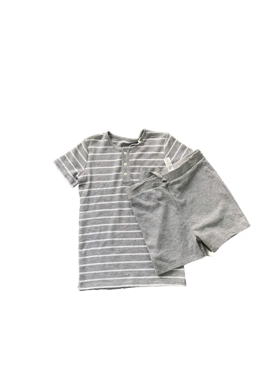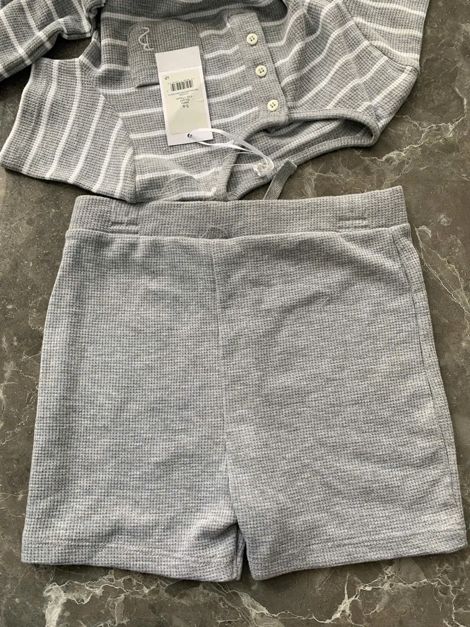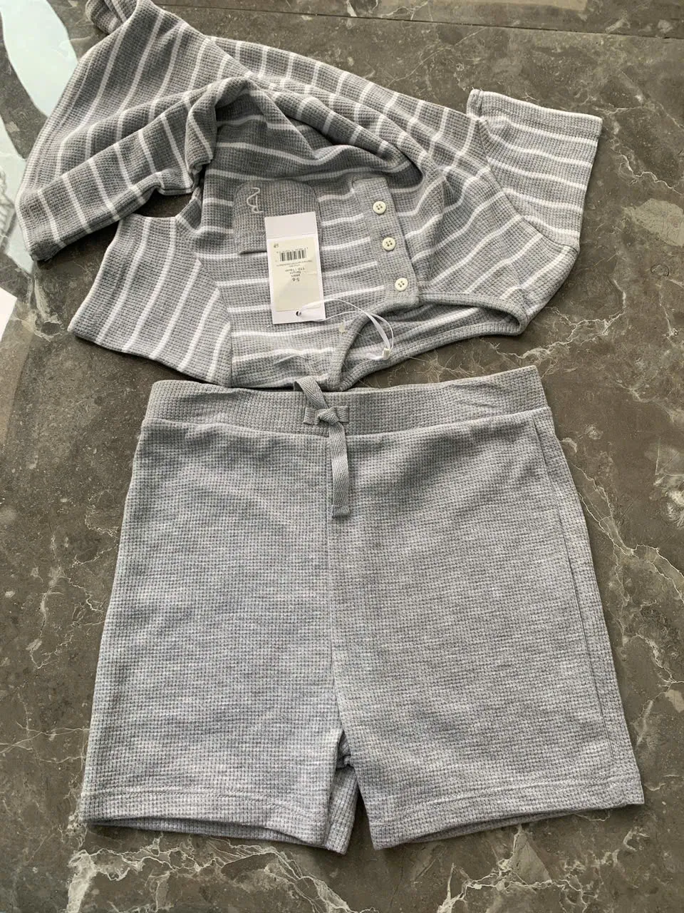 ✅ Set gồm áo và quần đùi phối màu xám trung tính, dễ phối đồ, phù hợp cho nhiều hoàn cảnh từ ở nhà đến đi học, đi chơi