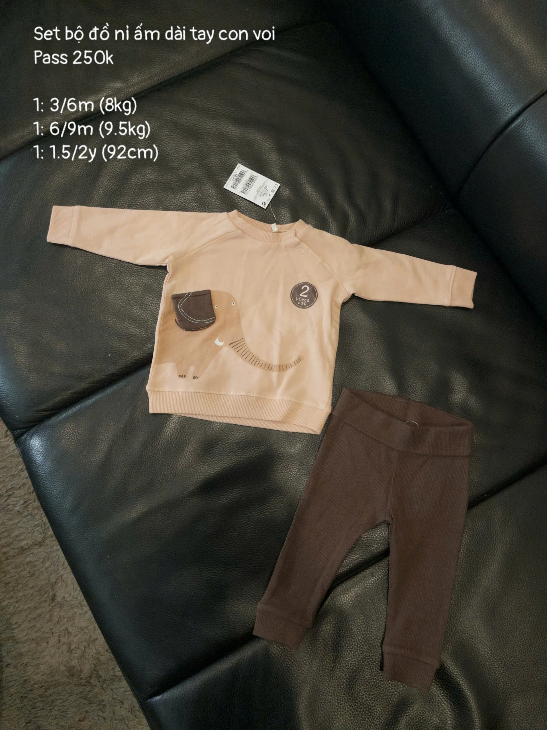 Set bộ đồ ấm dài tay Next baby họa tiết con voi ( size 3/6m, 6/9m, 1.5/2y )