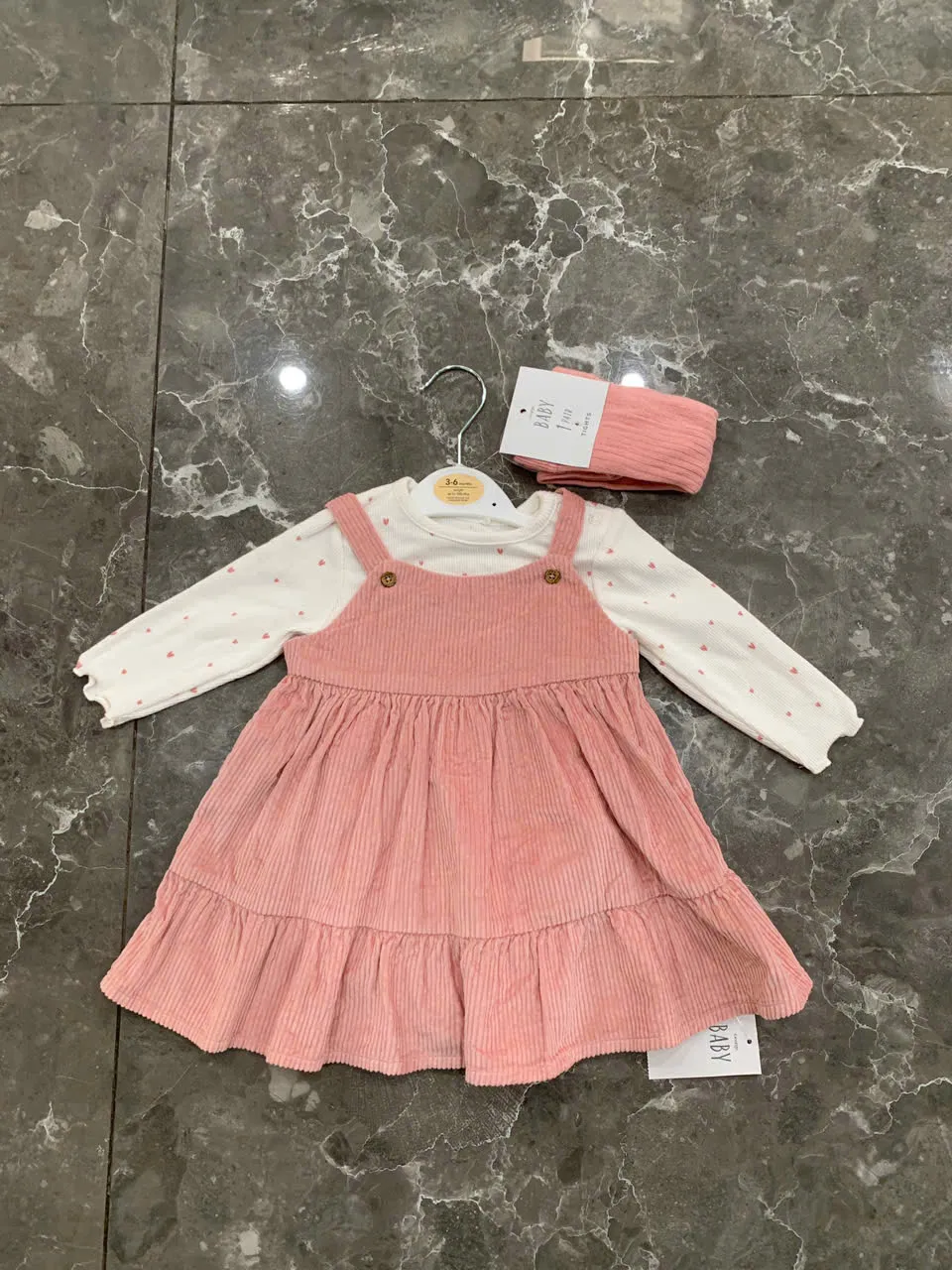 Set đầm yếm nhung tăm & bodysuit kèm tất George (3 đến 6 tháng) George baby
