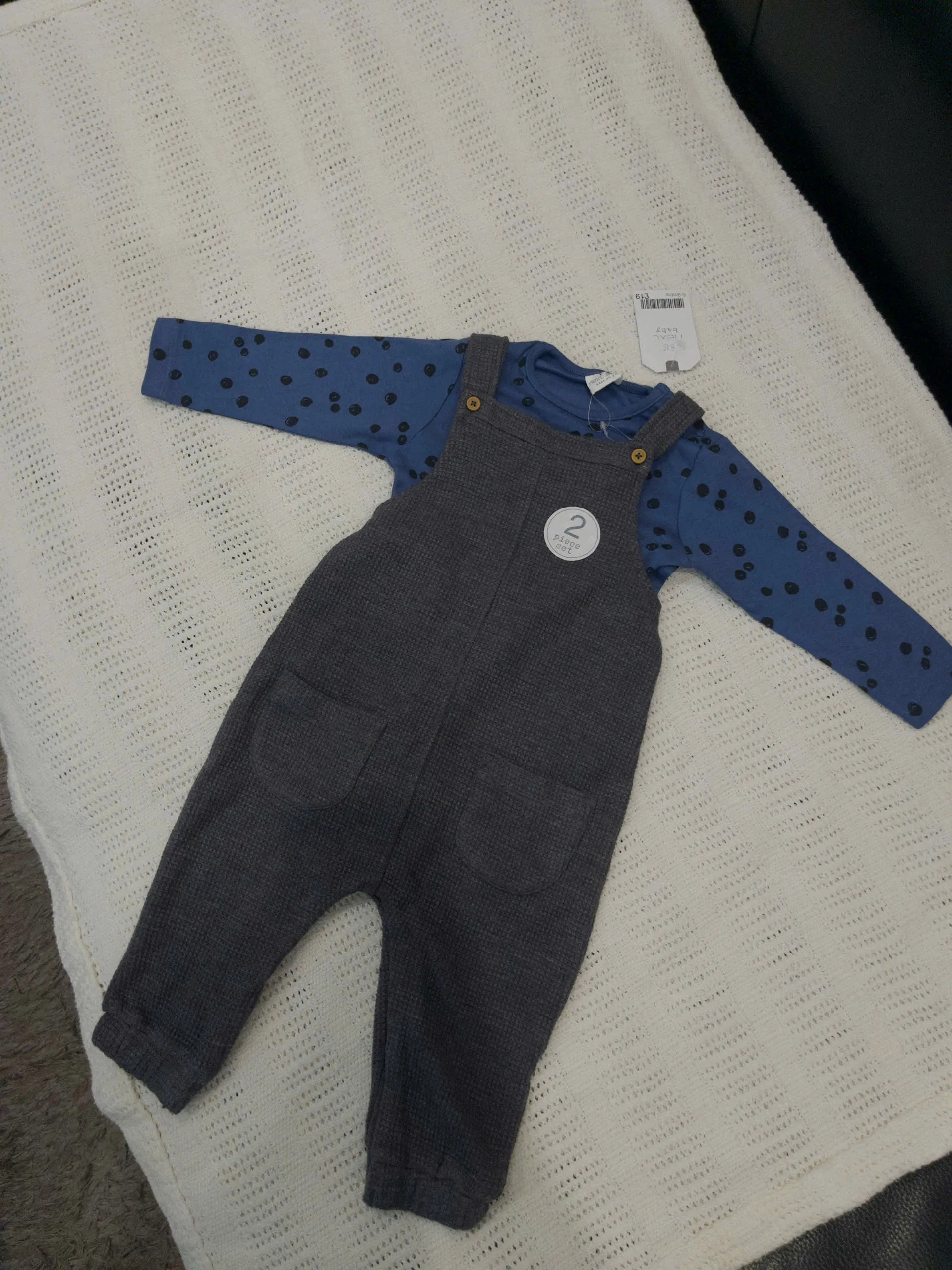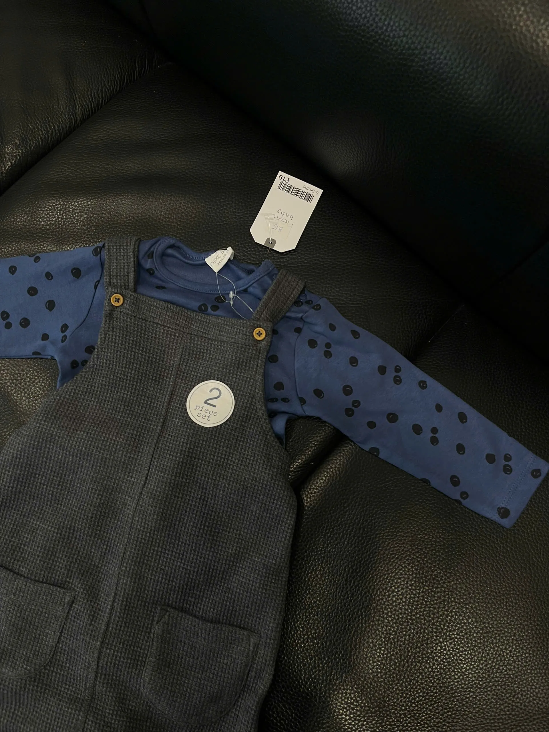 Set yếm dài tay áo thun cotton chấm bi Next baby màu xanh, xám (size 6/9m, 1.5/2y)
