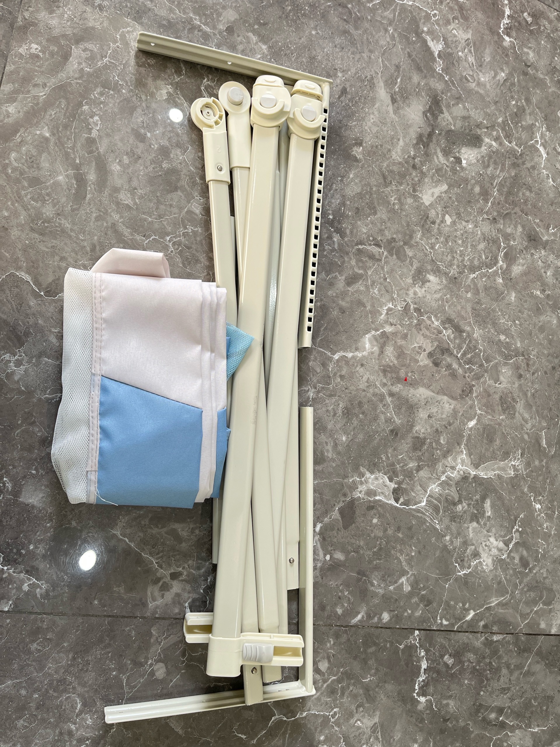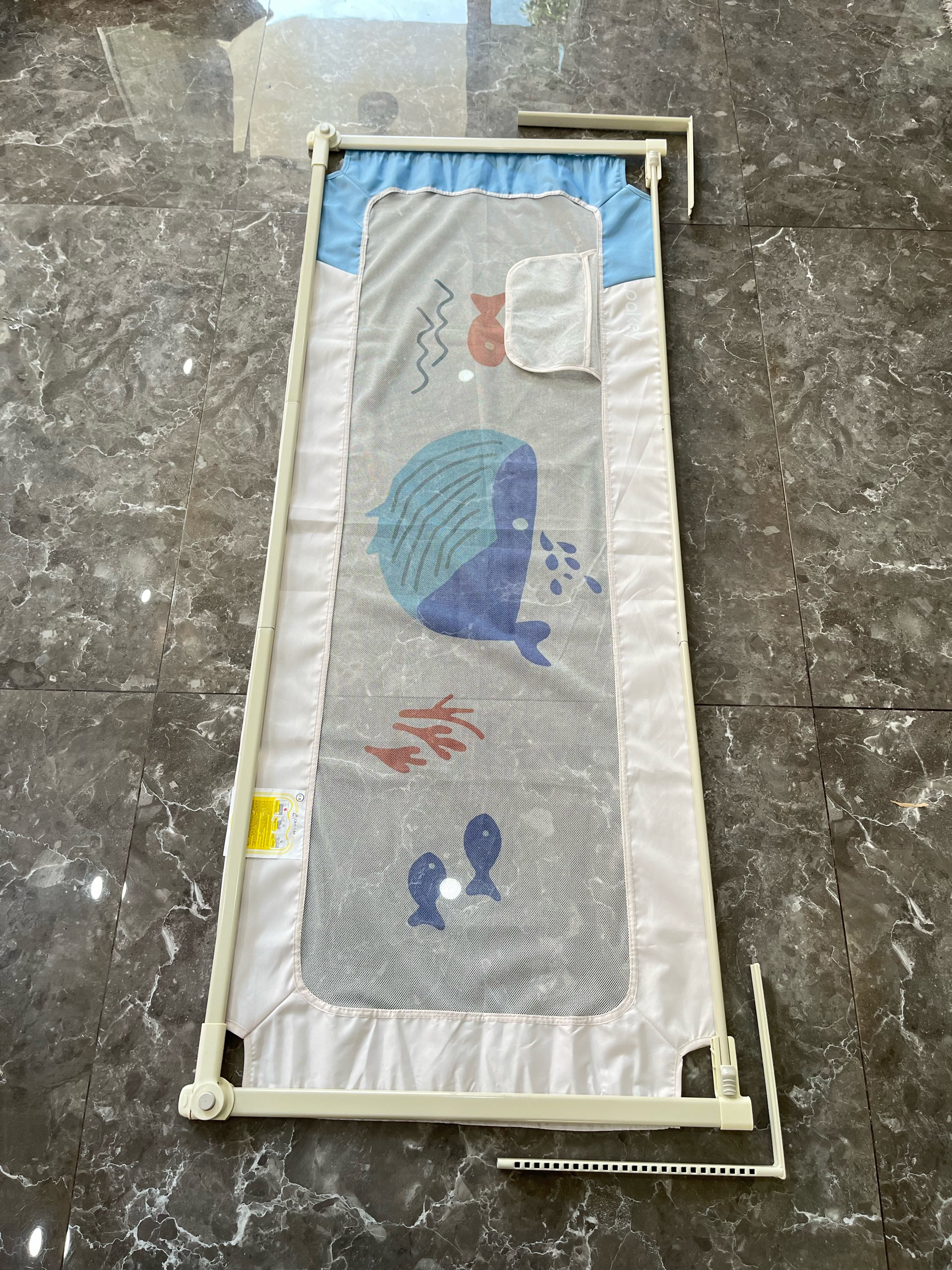 Tổng thể độ mới được đánh giá >90%, thanh chắn khá mới, ít trầy xước chỉ bị chỉ trầy nhẹ những vết trầy nhỏ dường như không thấy, thanh chắn giường trắng sạch không bị dơ, ko ố bẩn. Màng che sạch không bị ố bẩn. Thanh chắn giường thiếu các miếng xốp gắn vào.