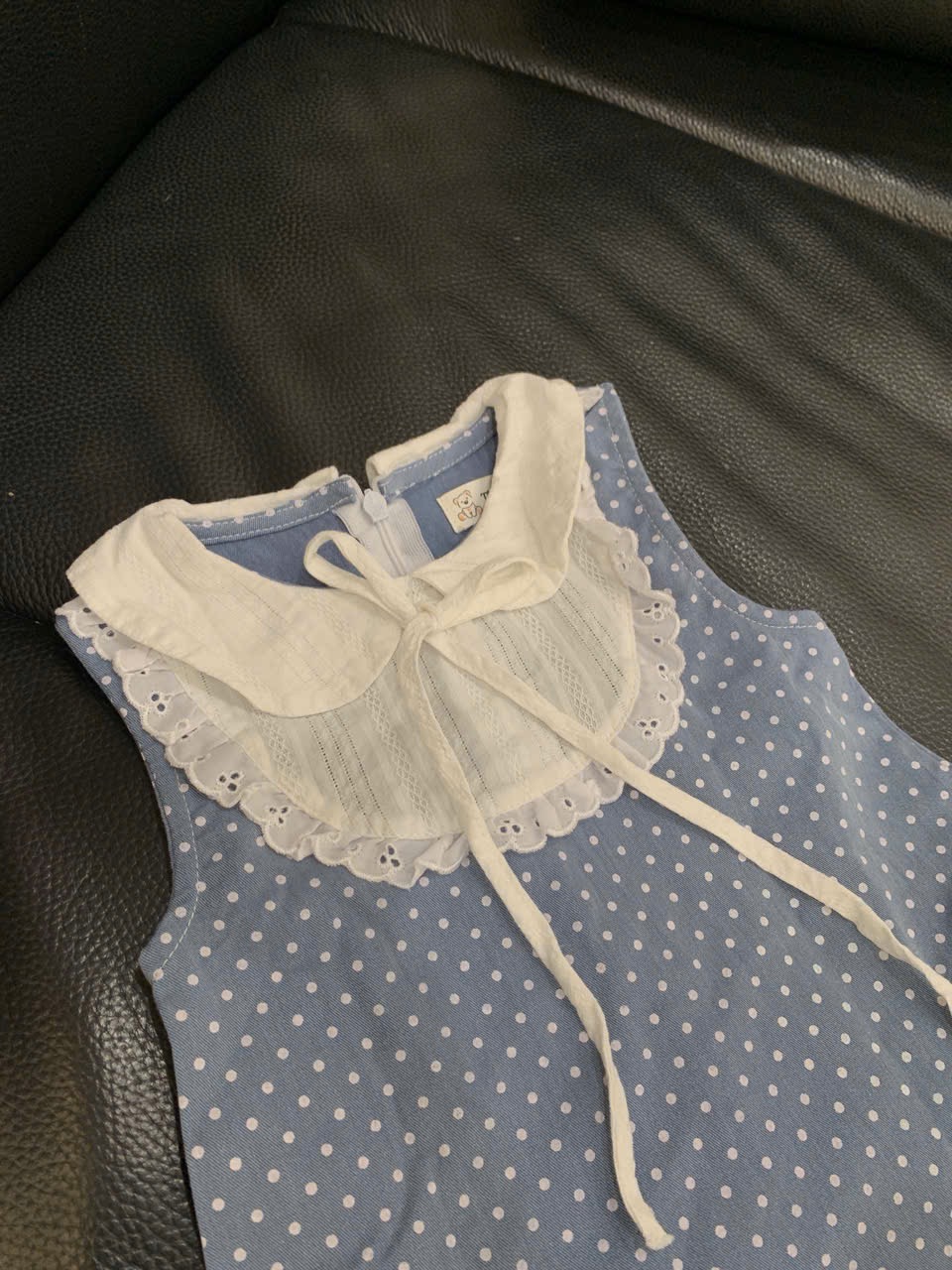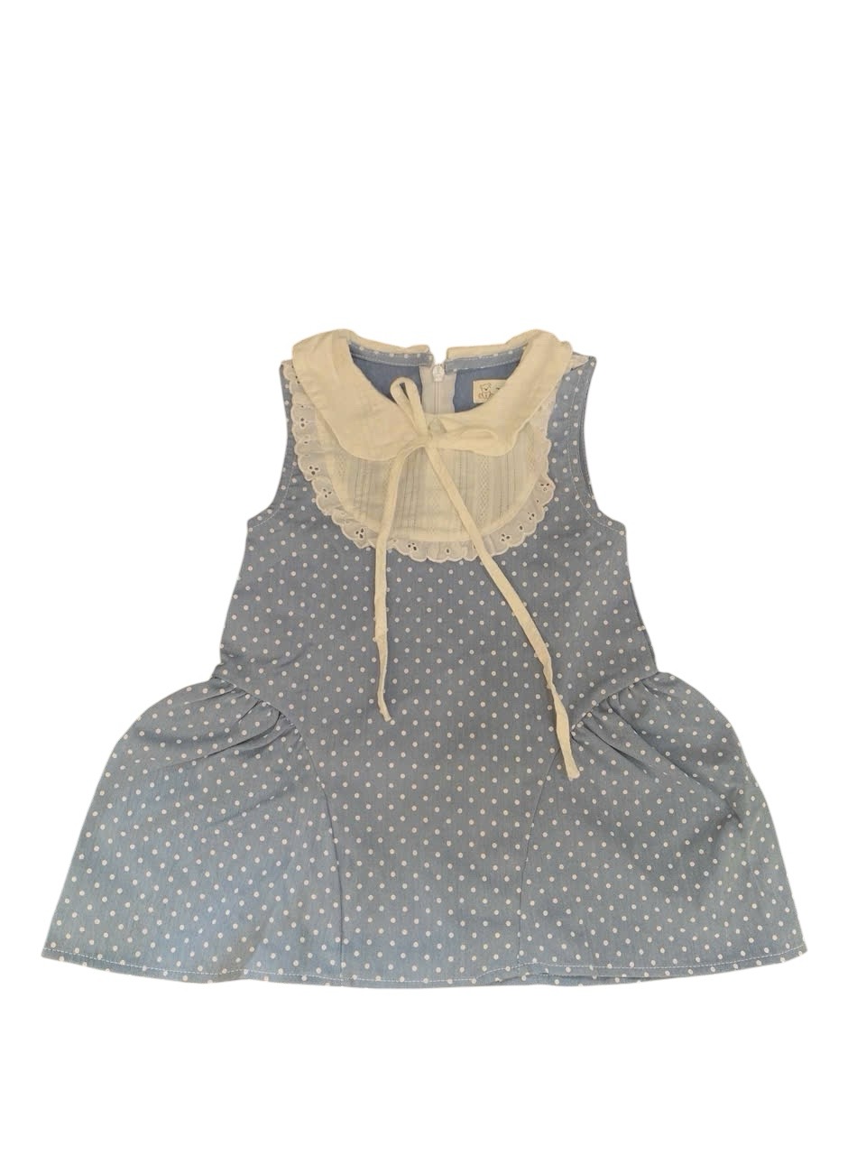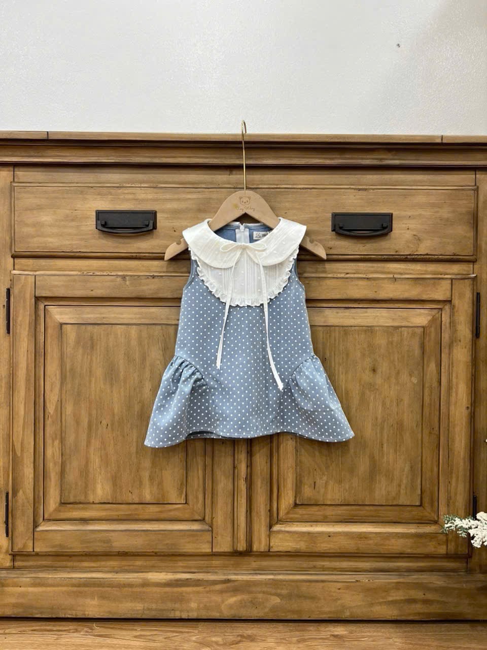 Váy bò chấm bi phối vải thêu Tiny Winy màu xanh (size:11/14kg)