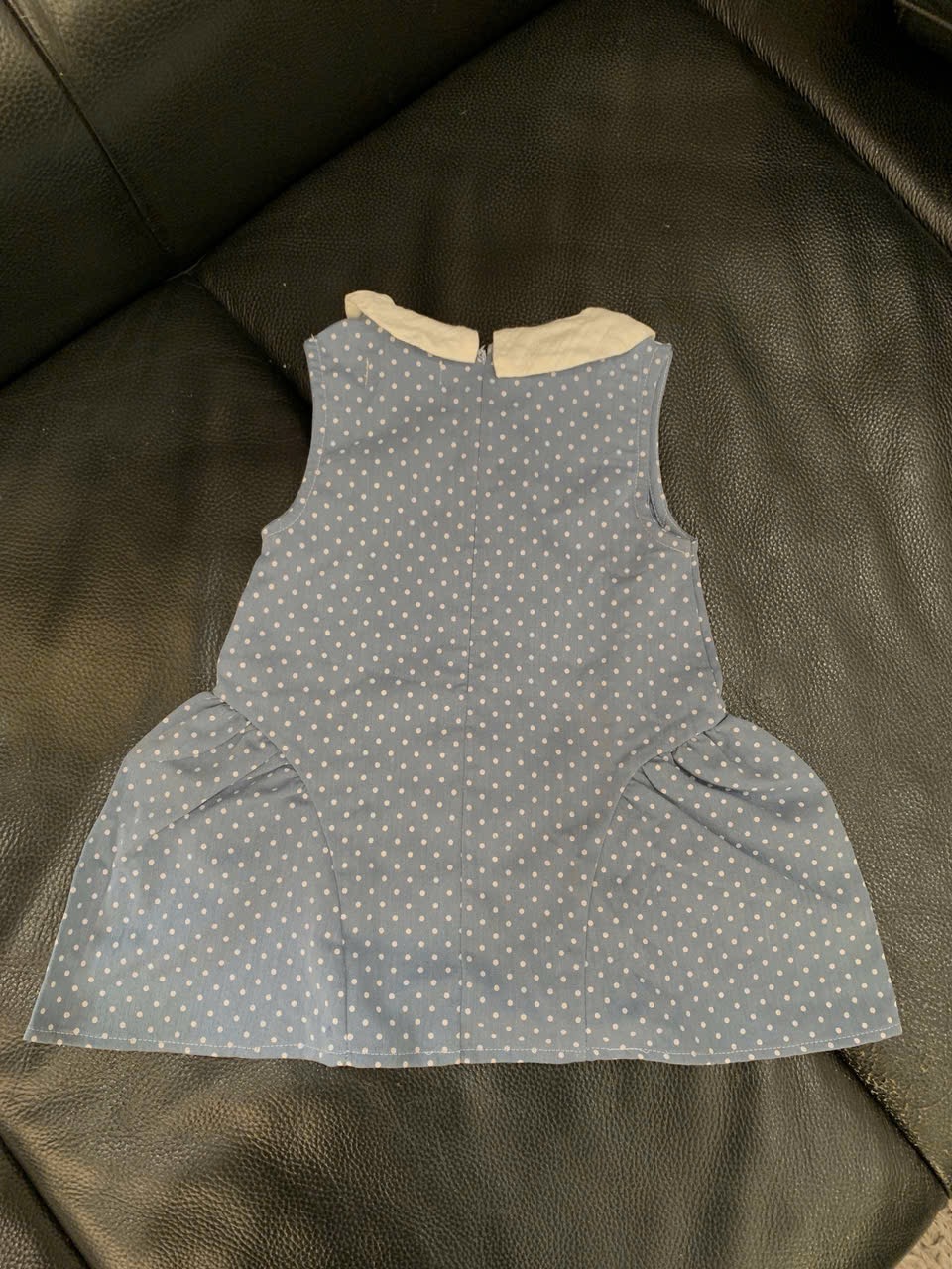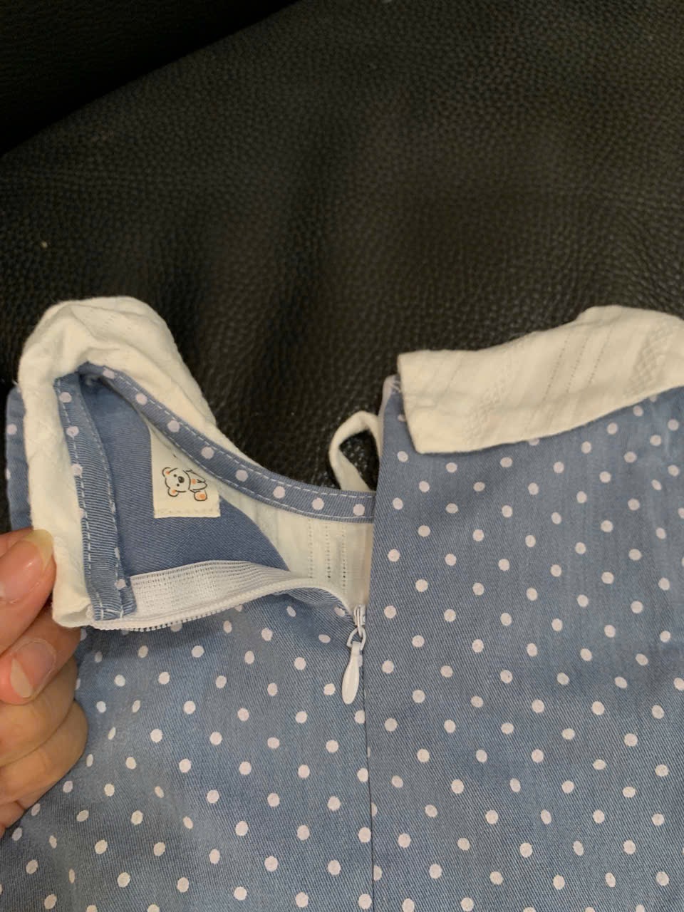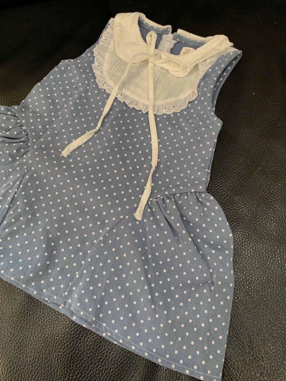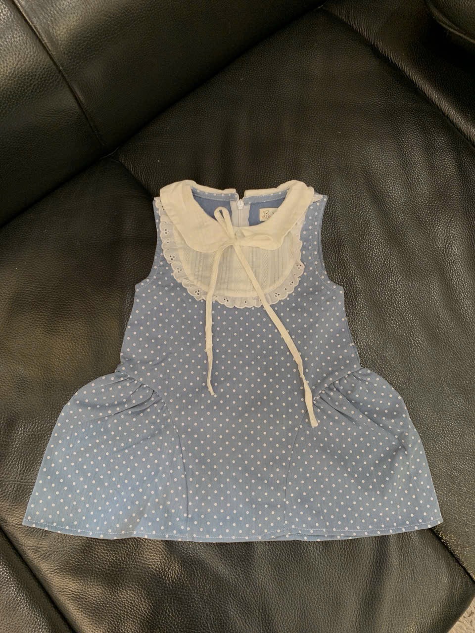 Váy bò chấm bi phối vải thêu Tiny Winy màu xanh (size:11/14kg)