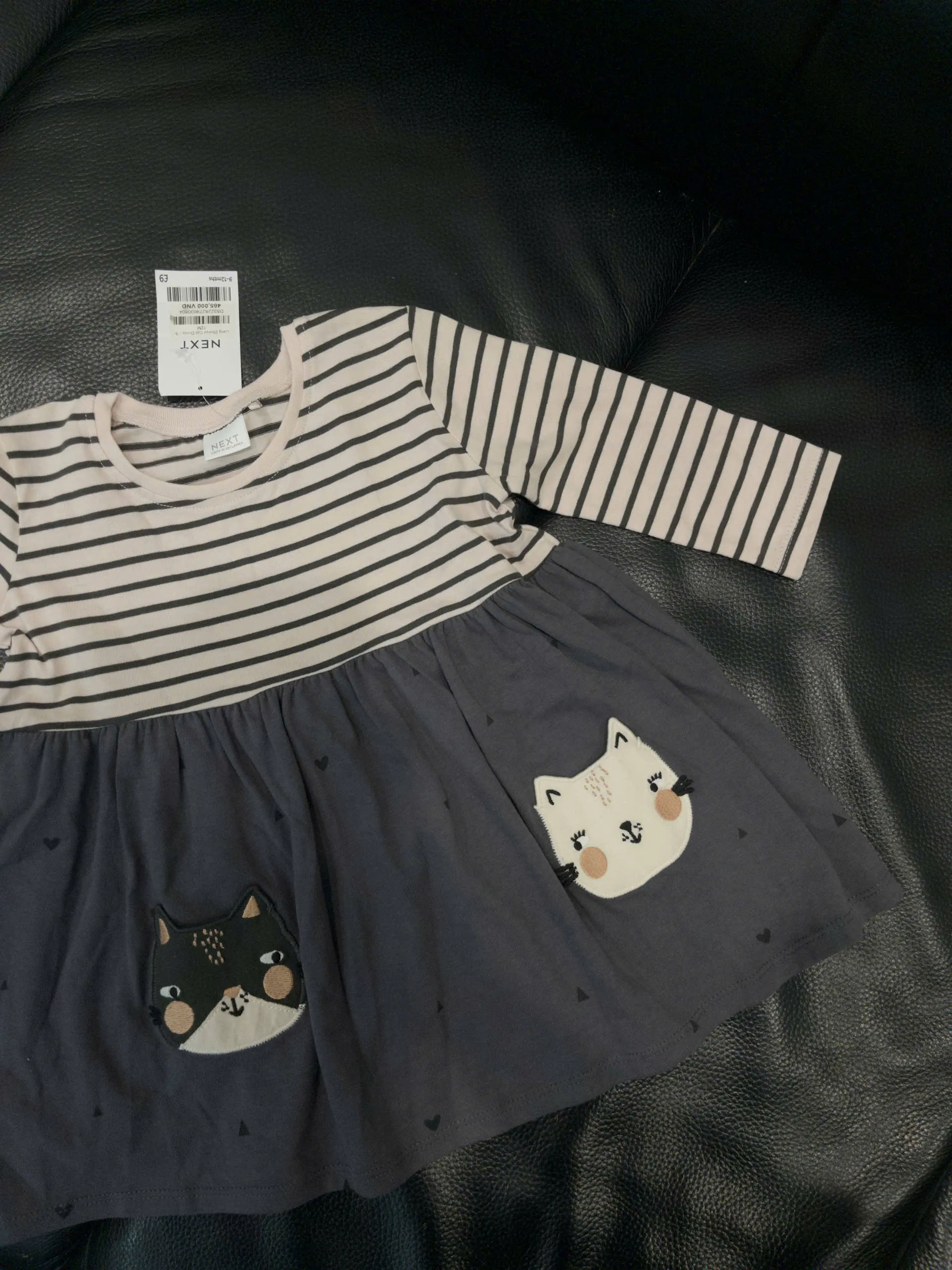 Váy dài tay Next baby màu xám gấu mèo (size 9/12m, 12/18m, 1/2y, 2/3y, 3/4y)