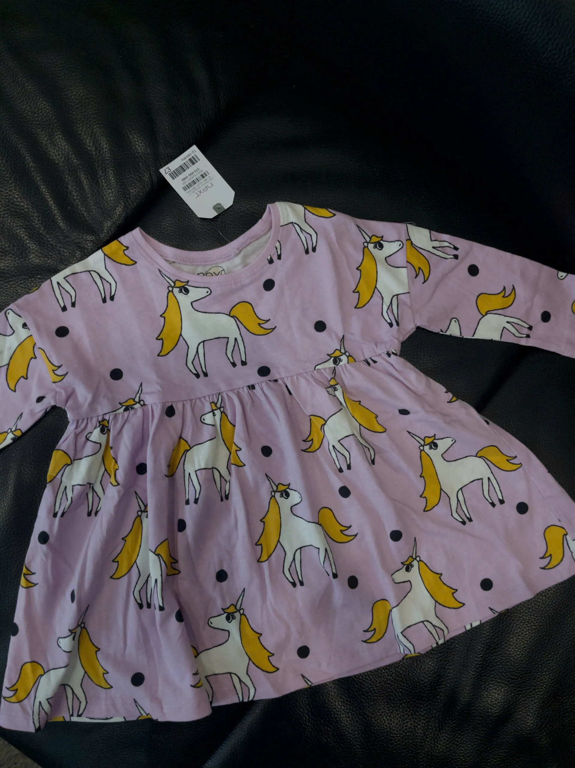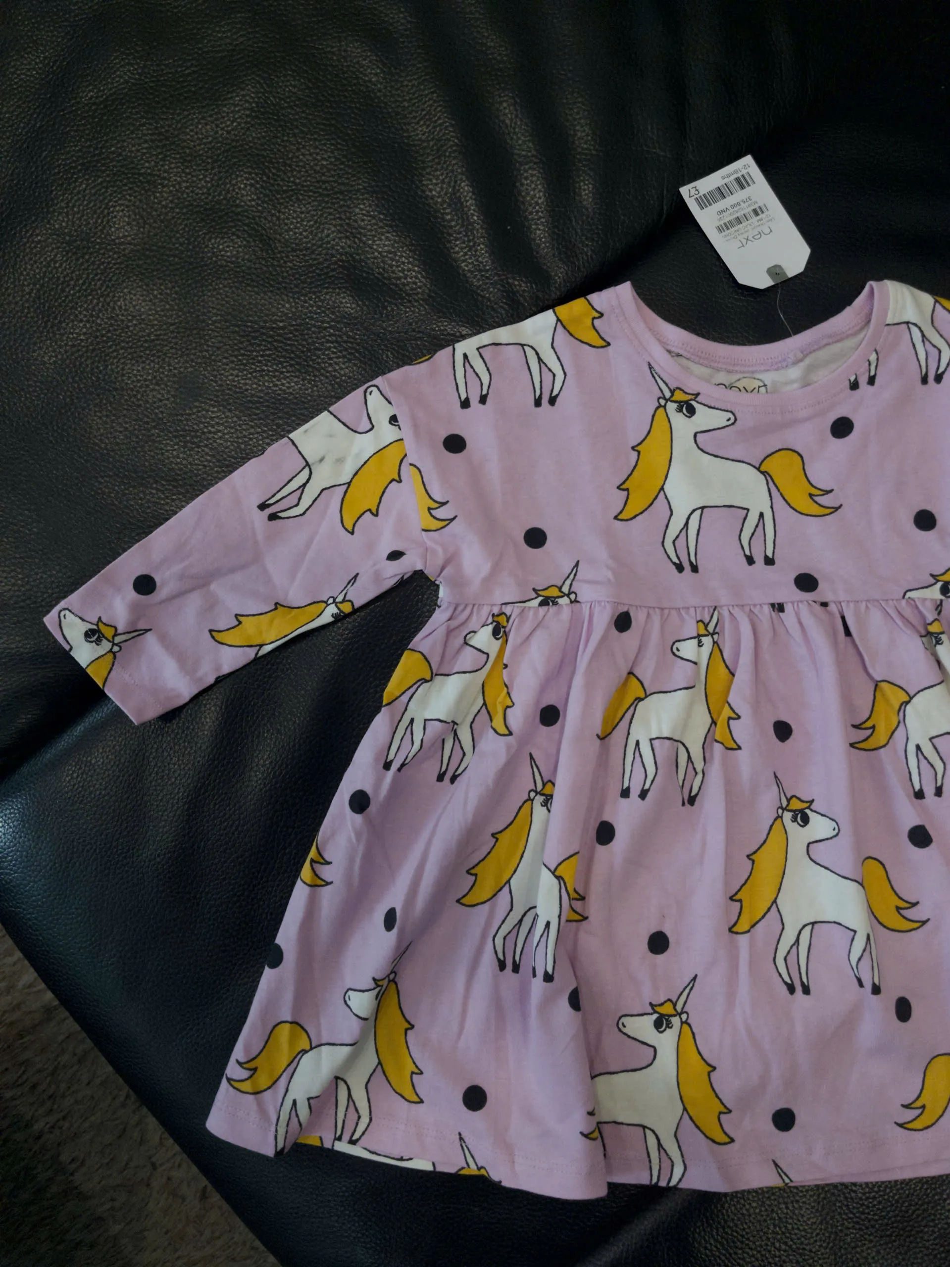 Váy tay dài họa tiết unicorn Next baby màu tím pastel ( Size12/18m, 6/7y )