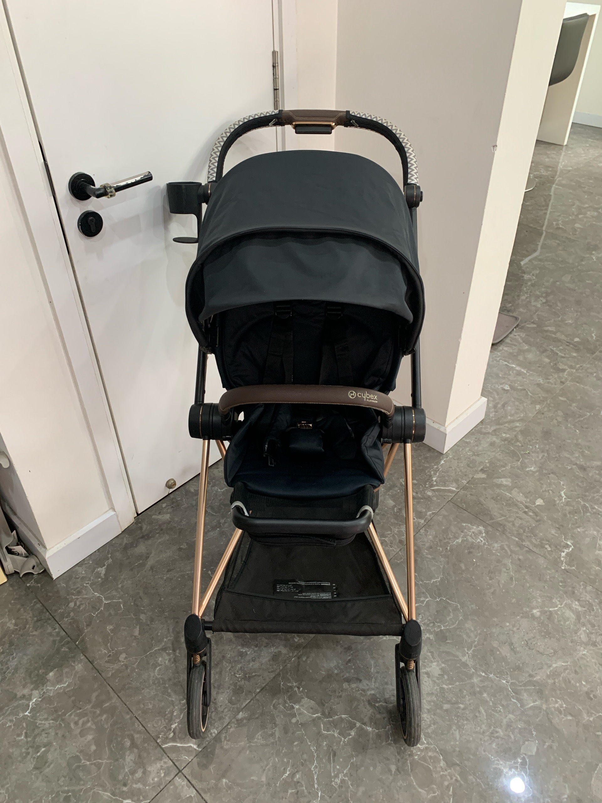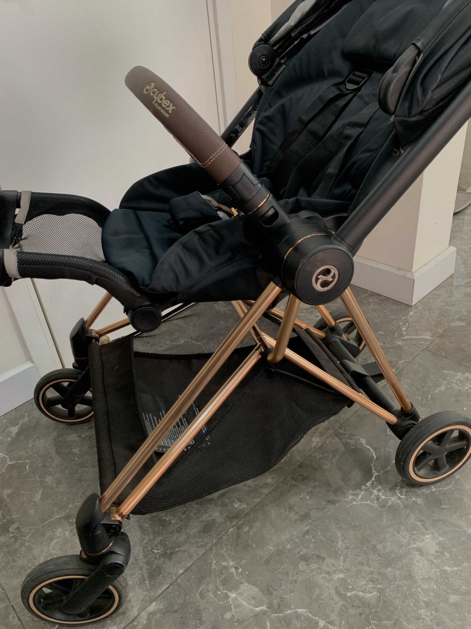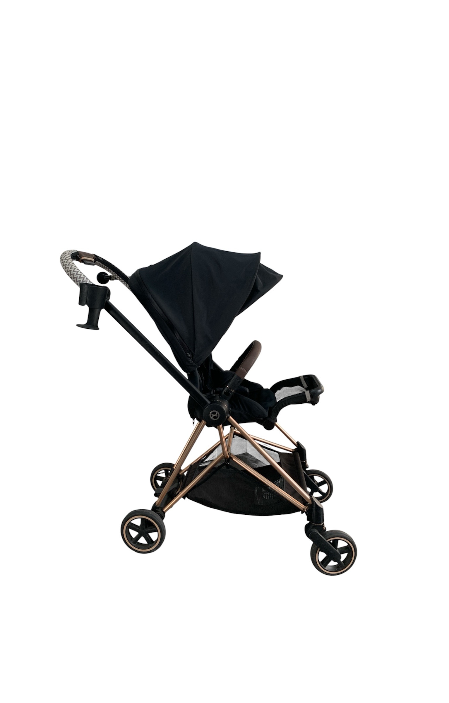 Xe đẩy Cybex mios 2 (đen khung rose gold) kèm bọc tay nắm & cup holder cybex
