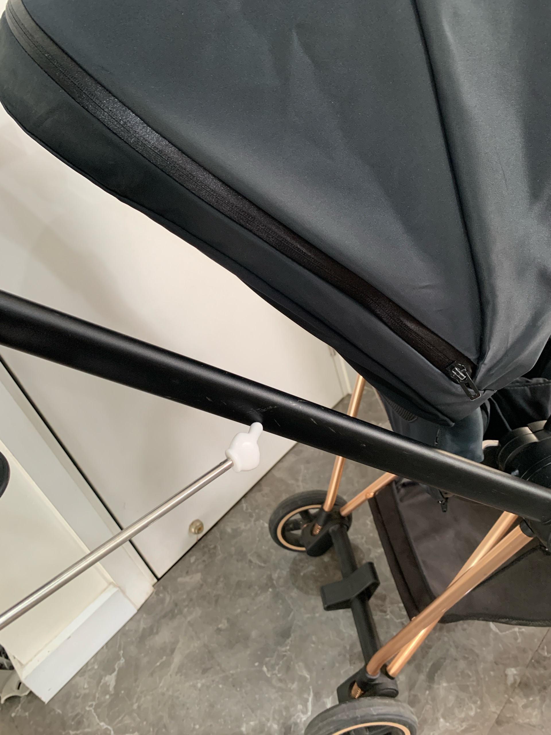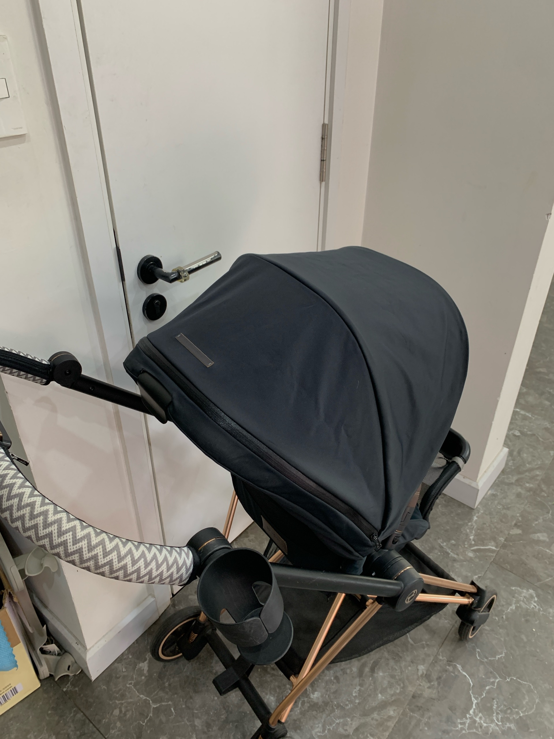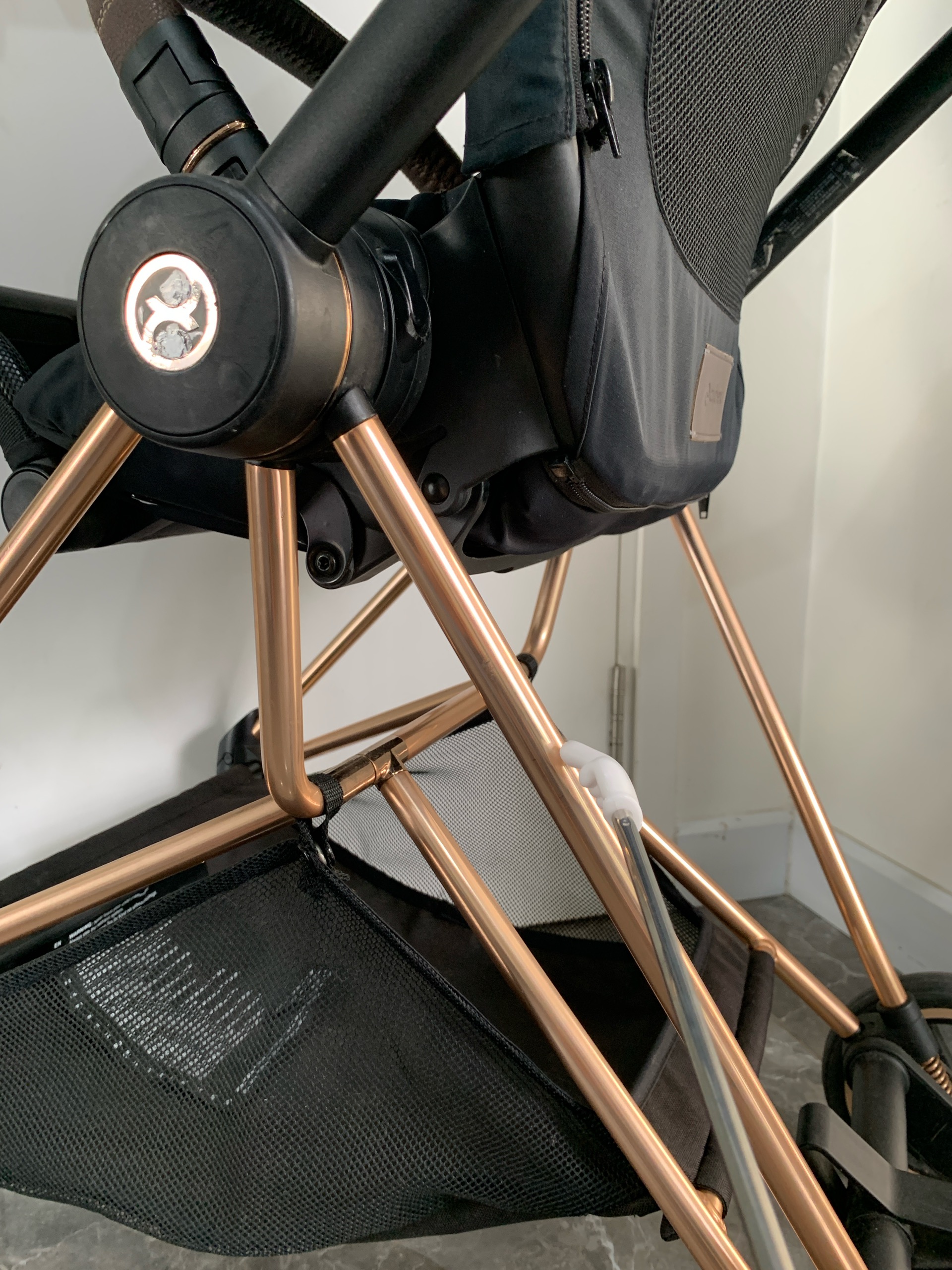 Xe đẩy Cybex mios 2 (đen khung rose gold) kèm bọc tay nắm & cup holder cybex