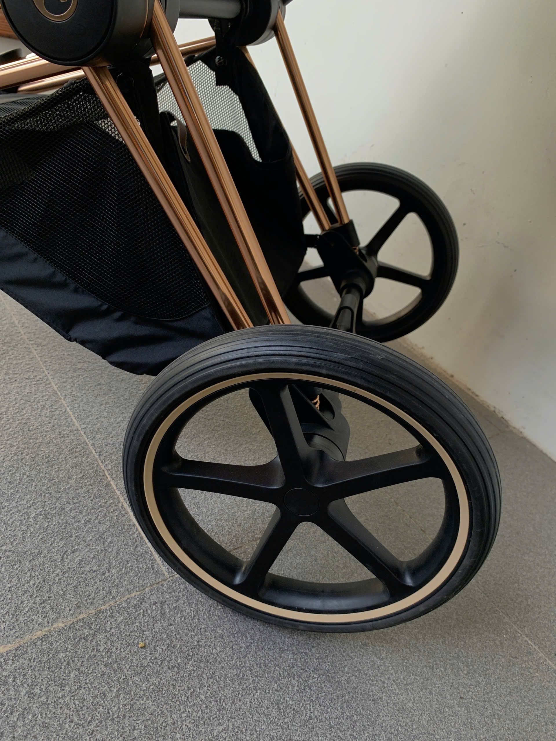 Tổng thể độ mới được đánh giá >95%, xe dường như rất ít sử dụng, khung xe dường như ko có vết trầy và bánh xe mới. Đệm vải mới sạch ko rách, ko trầy, ko ố bẩn. Các mối nối, khớp nối, lắp, đảo chiều, bung gập xe, bung gập mái che, tháo lắp bumper và điều chỉnh footrest, tháo lắp đai an toàn hoạt động bình thường ổn định. Các tag trên xe rõ. Các phụ kiện đi kèm: 1 tấm lót xe đẩy dotori, 1 áo mưa cybex, 1 adapter cybex priam. Sản phẩm mua bill qua Vinaquick (xe 1 đời chủ)