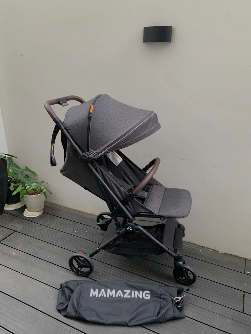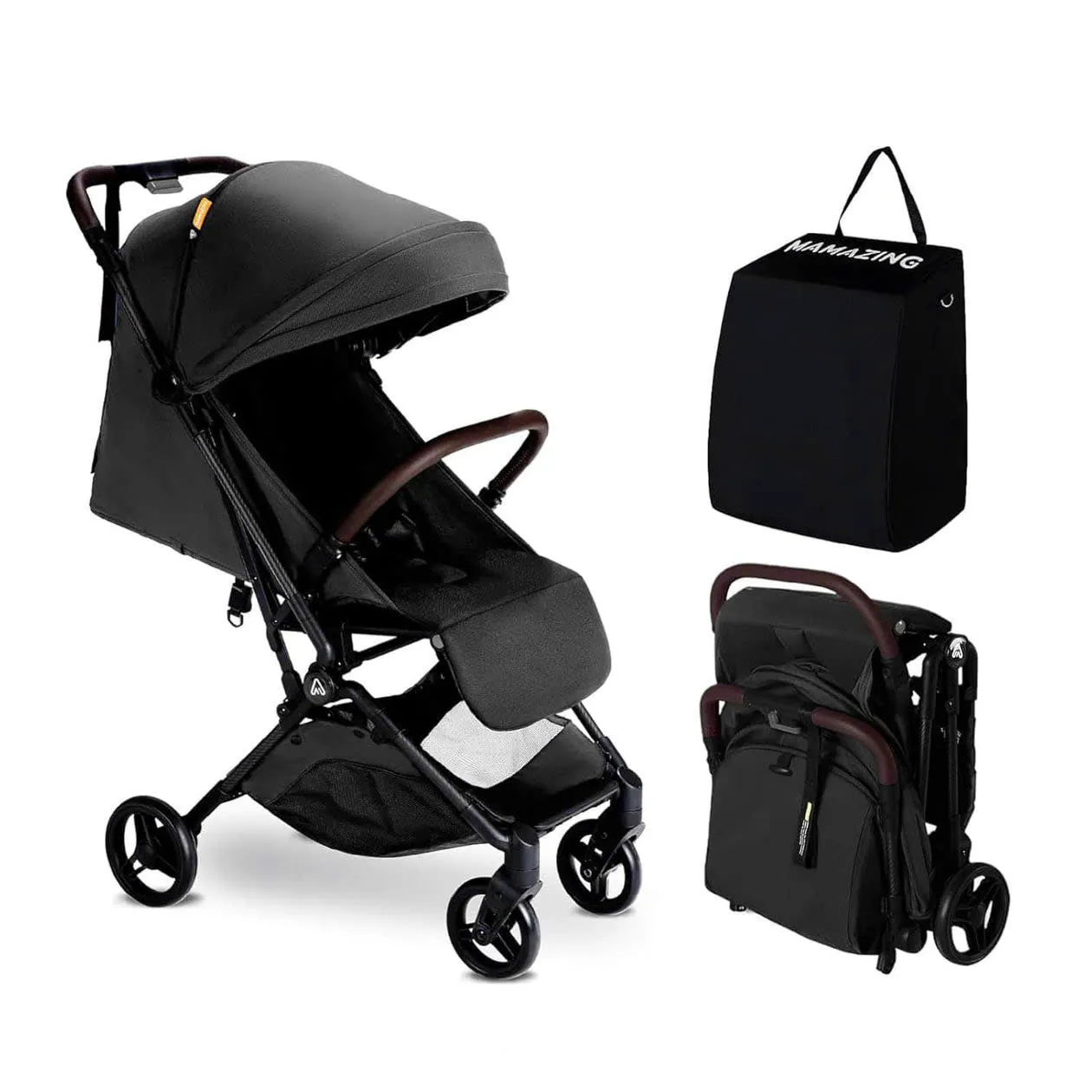 Xe đẩy Mamazing khung carbon siêu nhẹ gọn, màu đen xám (kèm túi vải đựng)