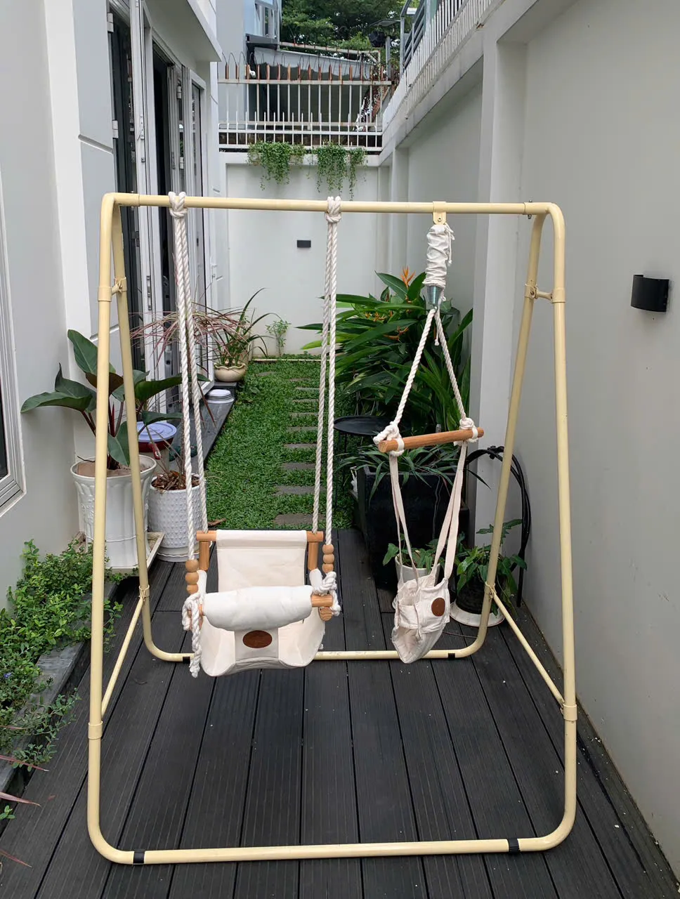 ✅ Thiết kế thông minh, gọn gàng và dễ thương, phù hợp với nhiều không gian trong nhà. Xích đu OME 2in1 có thể dễ dàng tháo rời và lắp ráp, giúp mẹ tiện mang đi hoặc cất gọn khi không sử dụng.