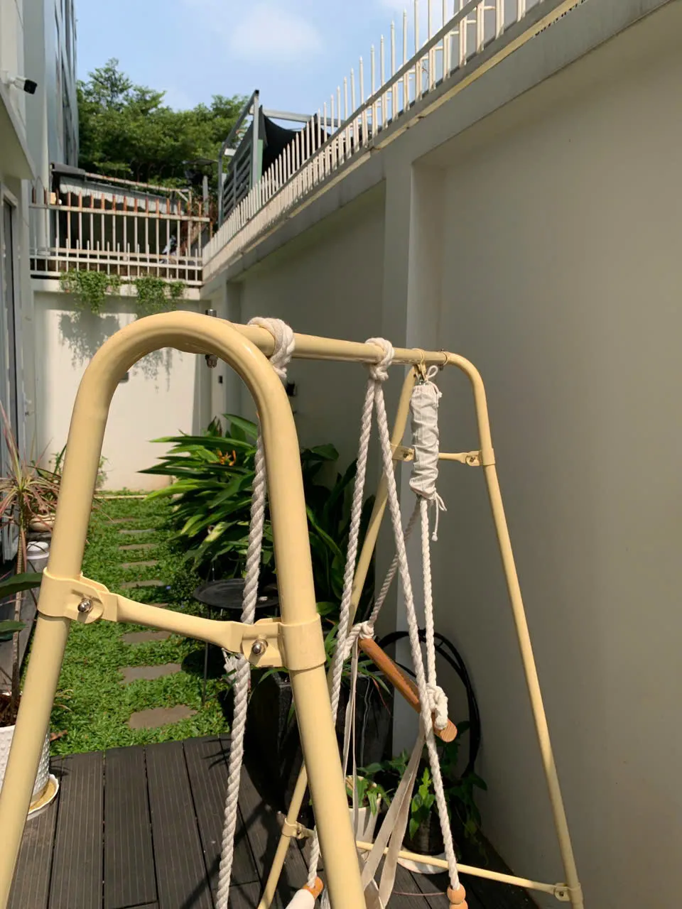 ✅ Xích đu khá mới, ghế ngồi vải sạch, chỉ có vết ố nhỏ như đã chỉ trong ảnh (không đáng kể so với tổng thể). Khung gỗ quanh ghế đẹp, chắc chắn, đầy đủ phụ kiện, dây treo trắng sạch, khung đều màu, chỉ có vài vết trầy nhẹ do vận chuyển. Sản phẩm đã được đội ngũ Recyme tháo lắp và test kỹ trước khi đăng bán. Tổng thể đạt khoảng 90% độ mới.