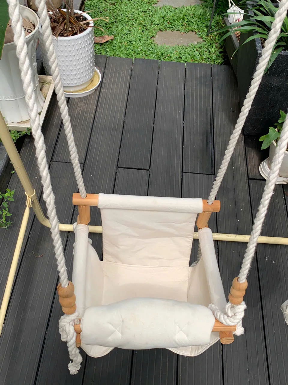 ✅ Khung gỗ chắc chắn, hoàn thiện đẹp và an toàn, dây treo trắng sạch, chất liệu vải ghế mềm mại và thân thiện với làn da bé. Các chi tiết được đội ngũ Recyme kiểm tra và test kỹ, đảm bảo an toàn khi sử dụng.
